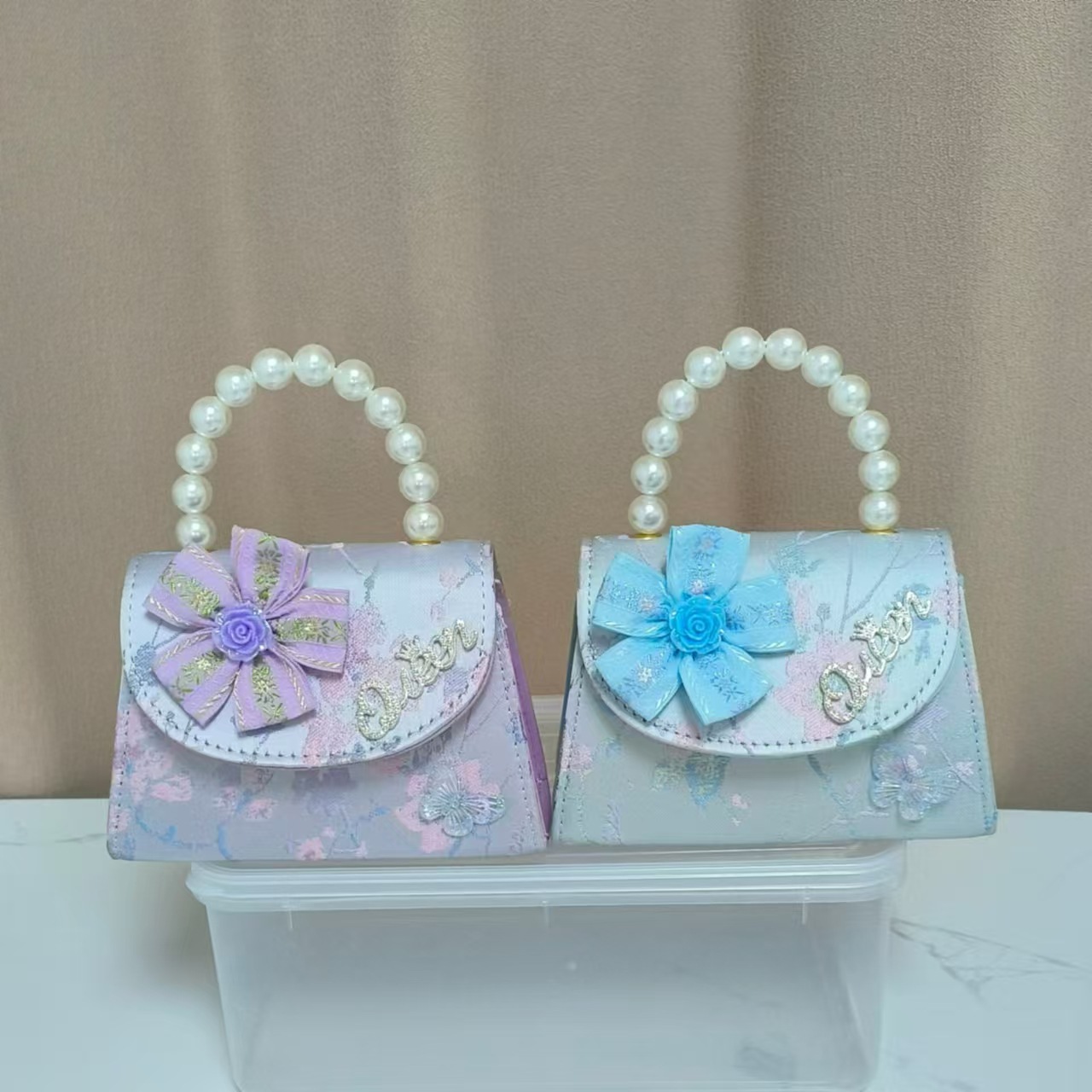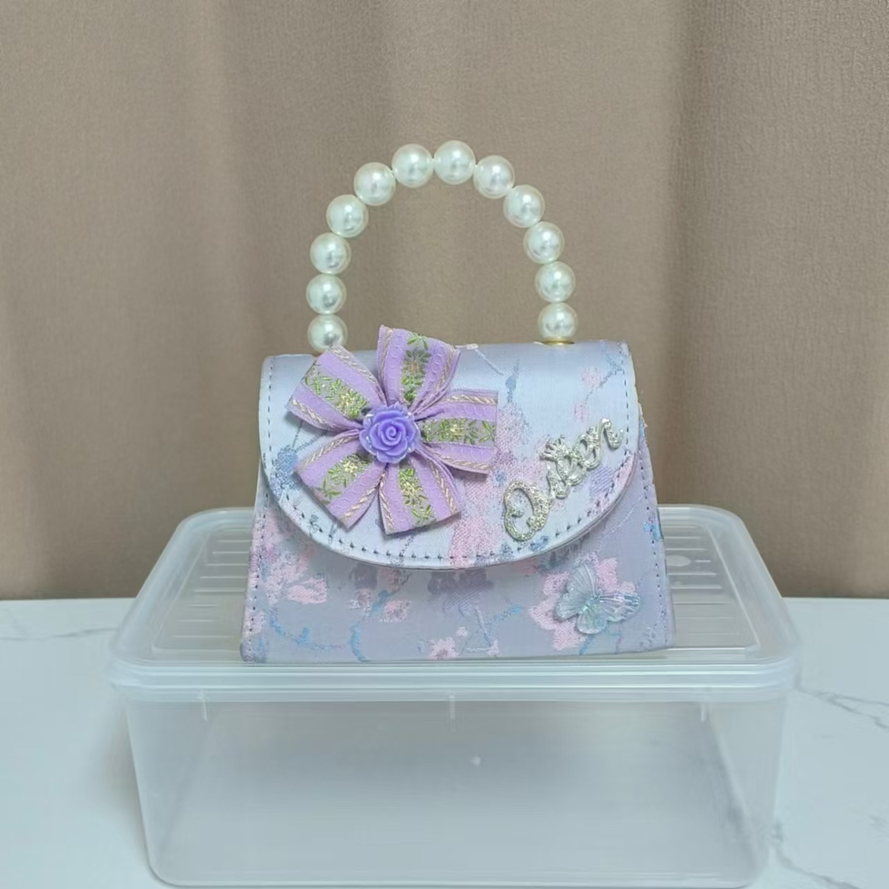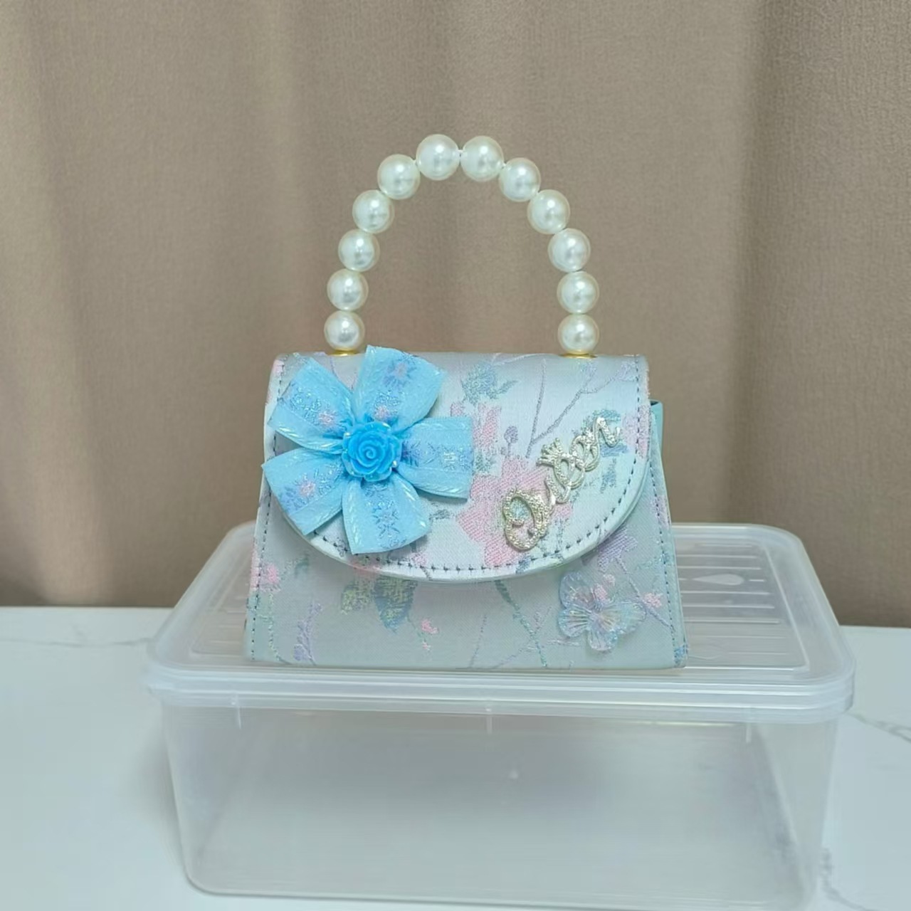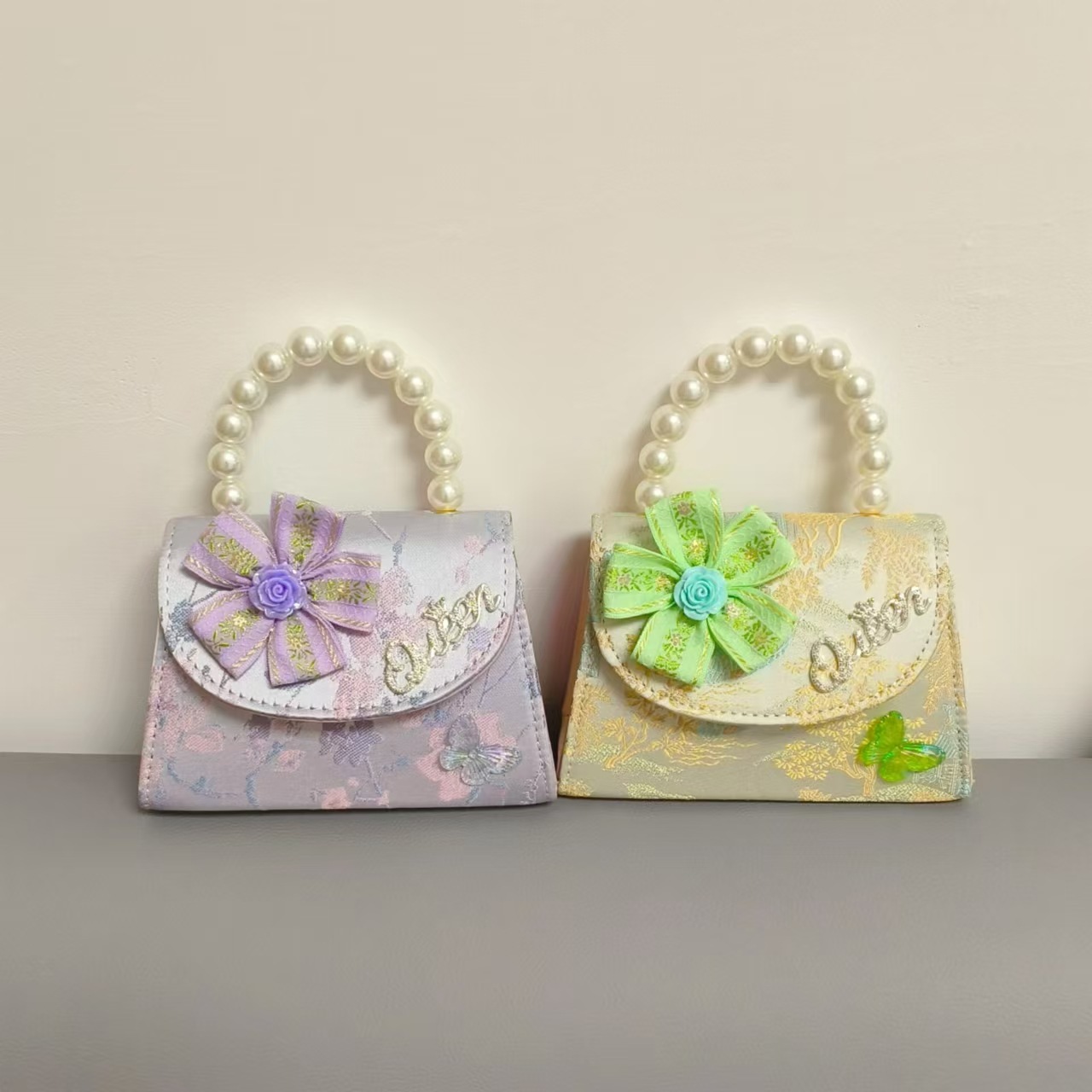 花朵公主包国风唐装配饰包珍珠手提包单肩斜挎包六一链条小方包