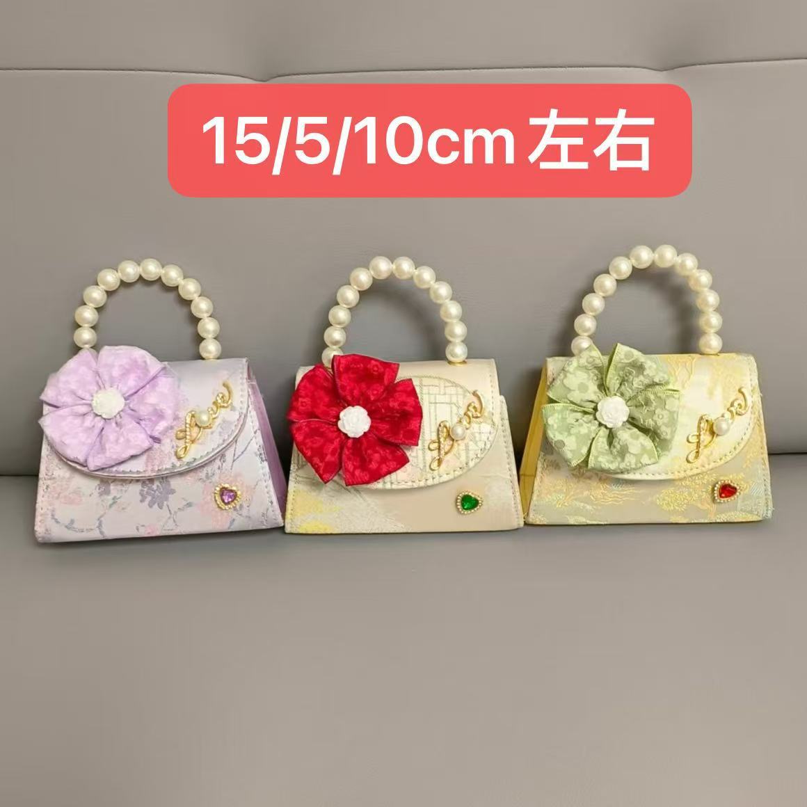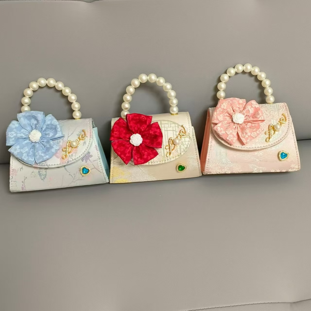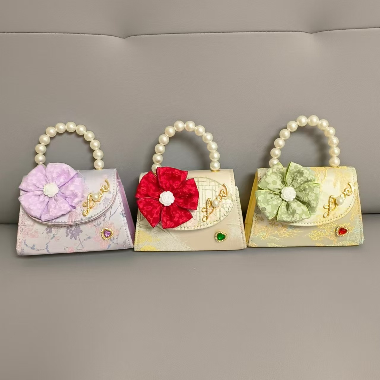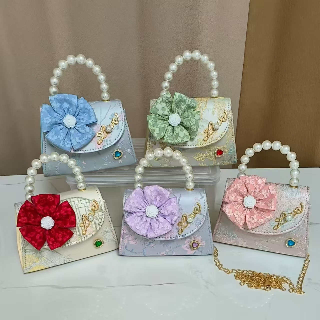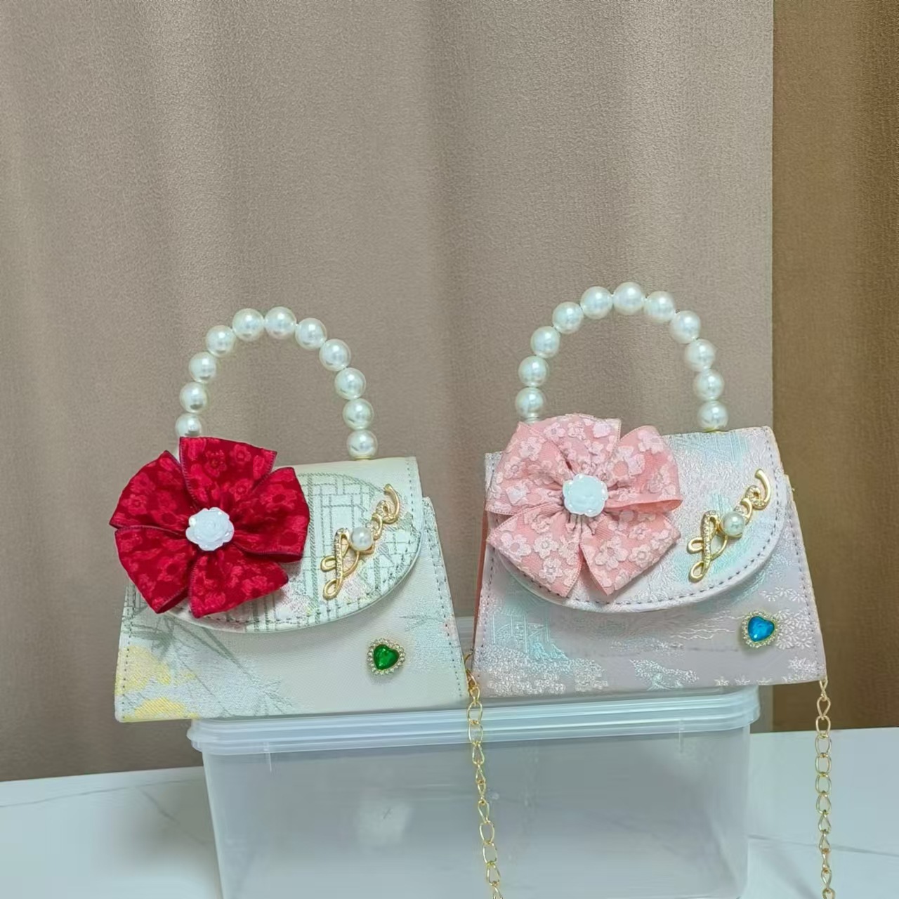 花朵国风公主包珍珠手提包单肩斜挎包链条女孩小方包六一压岁钱包