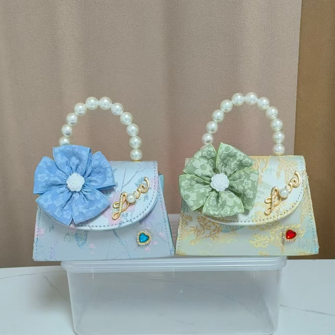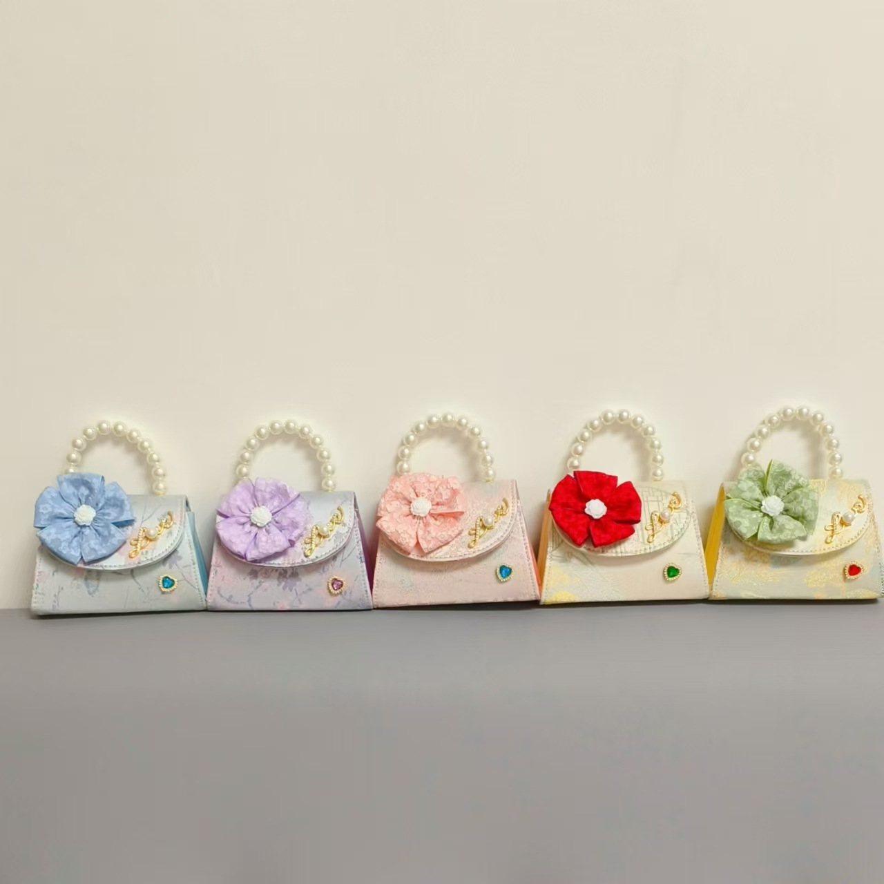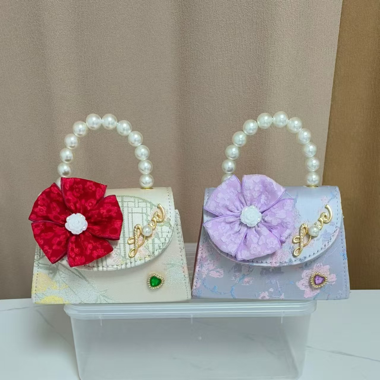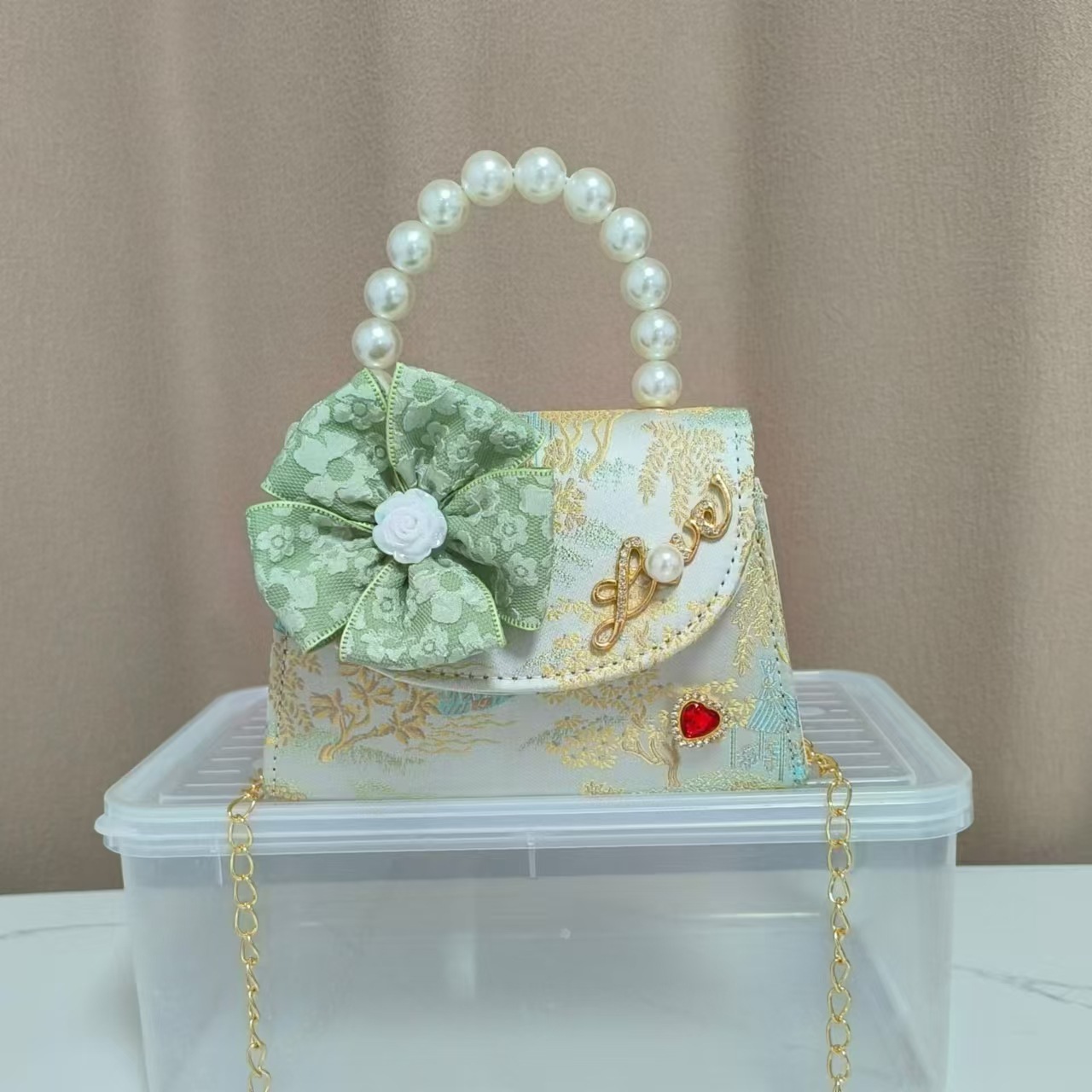 花朵国风公主包珍珠手提包单肩斜挎包链条女孩小方包六一压岁钱包