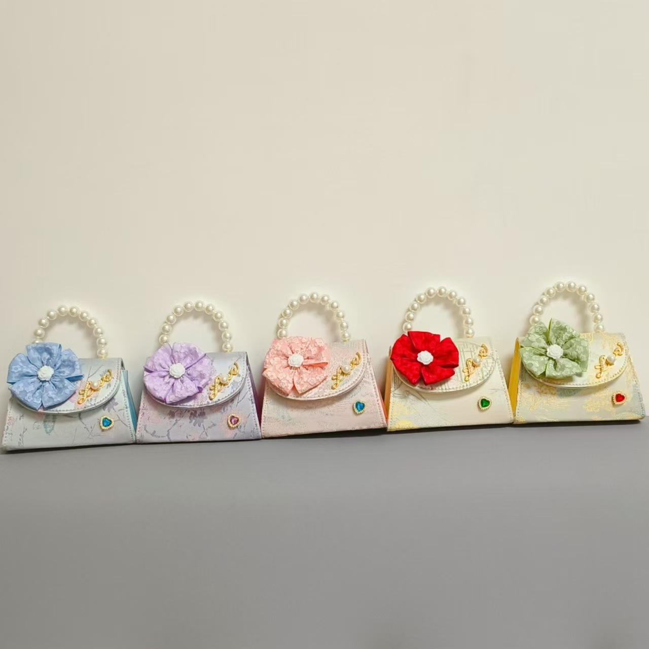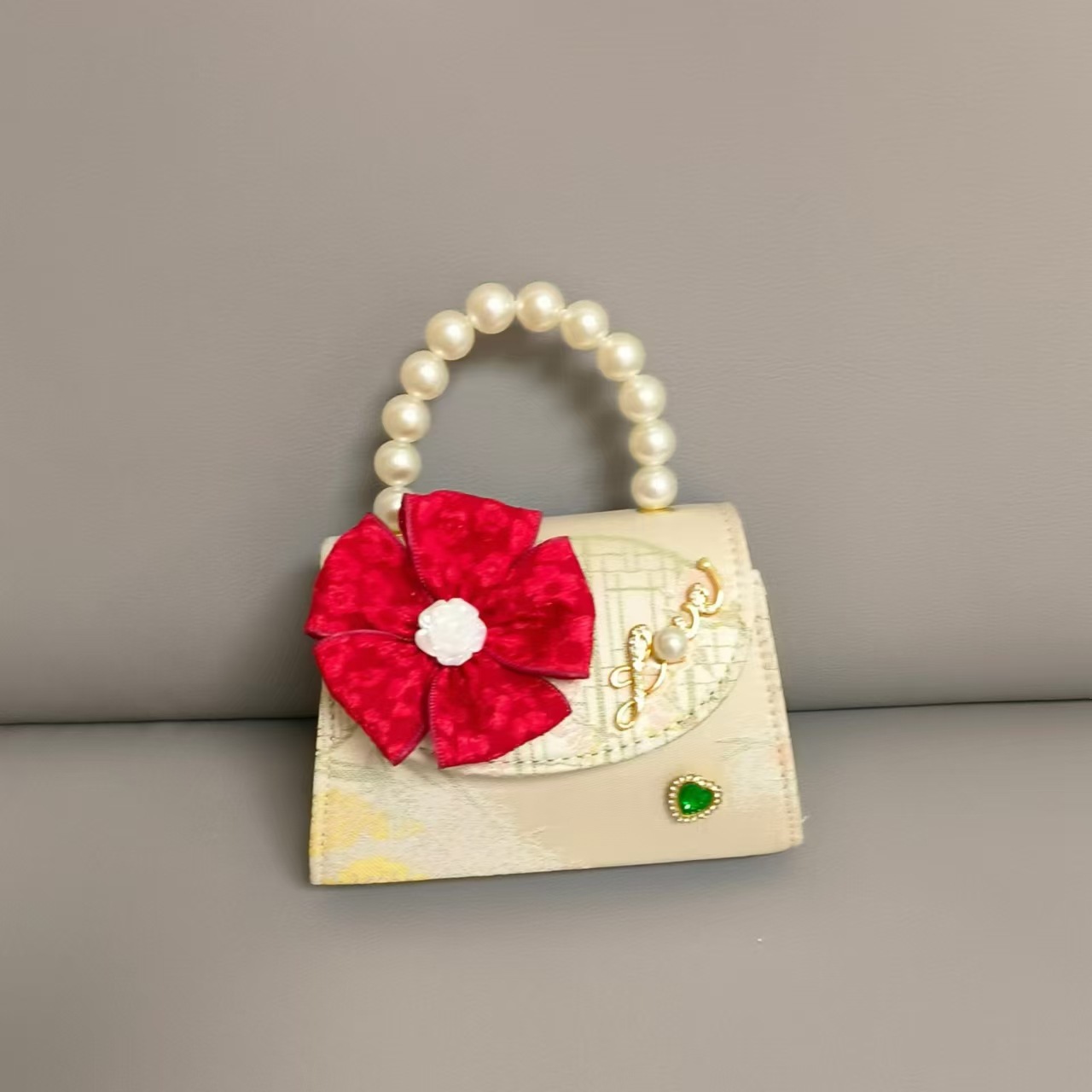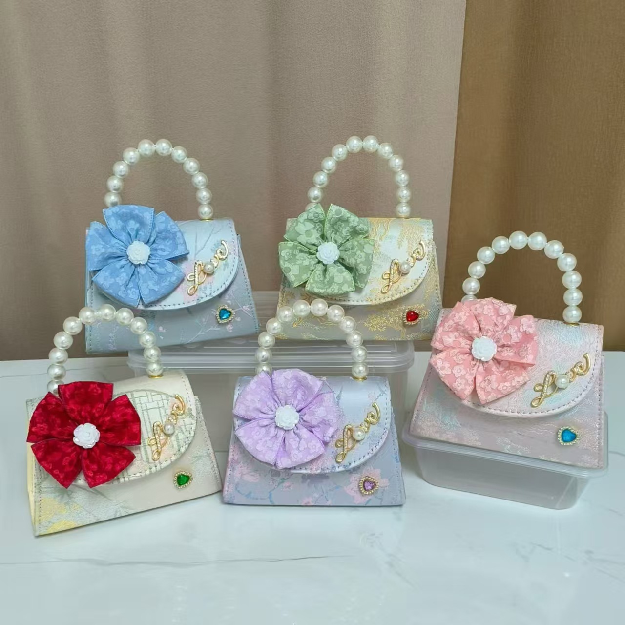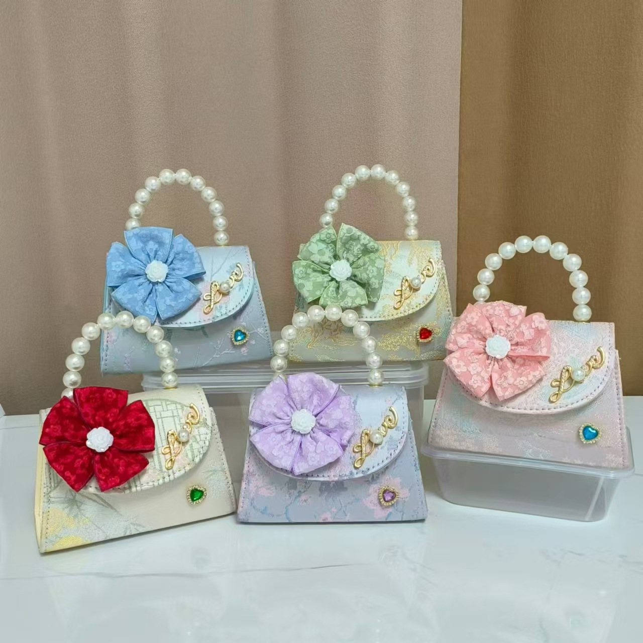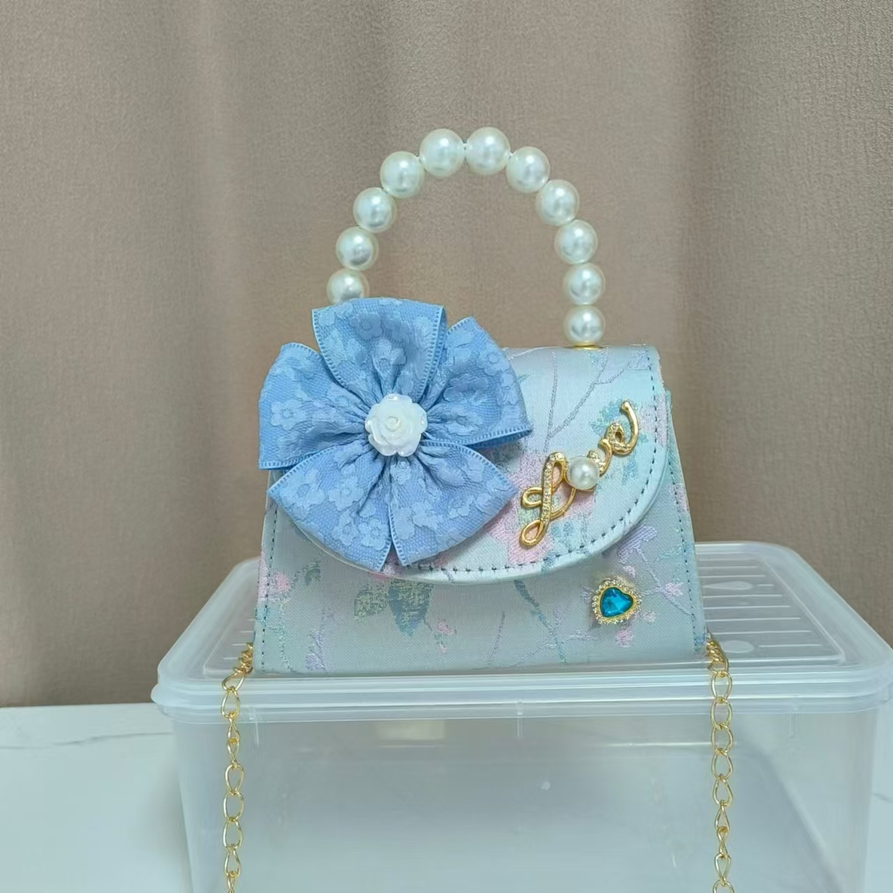 花朵国风公主包珍珠手提包单肩斜挎包链条女孩小方包六一压岁钱包