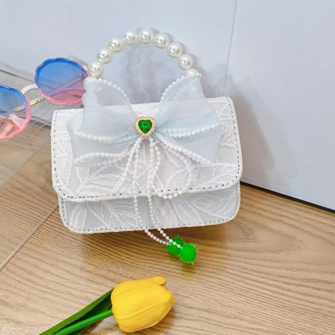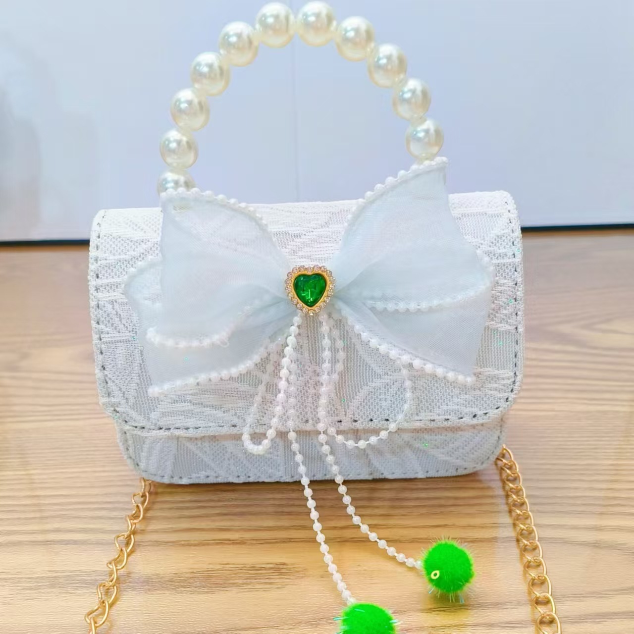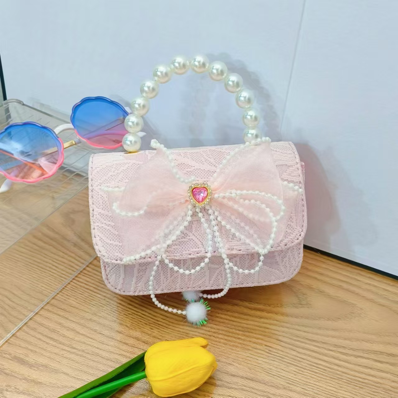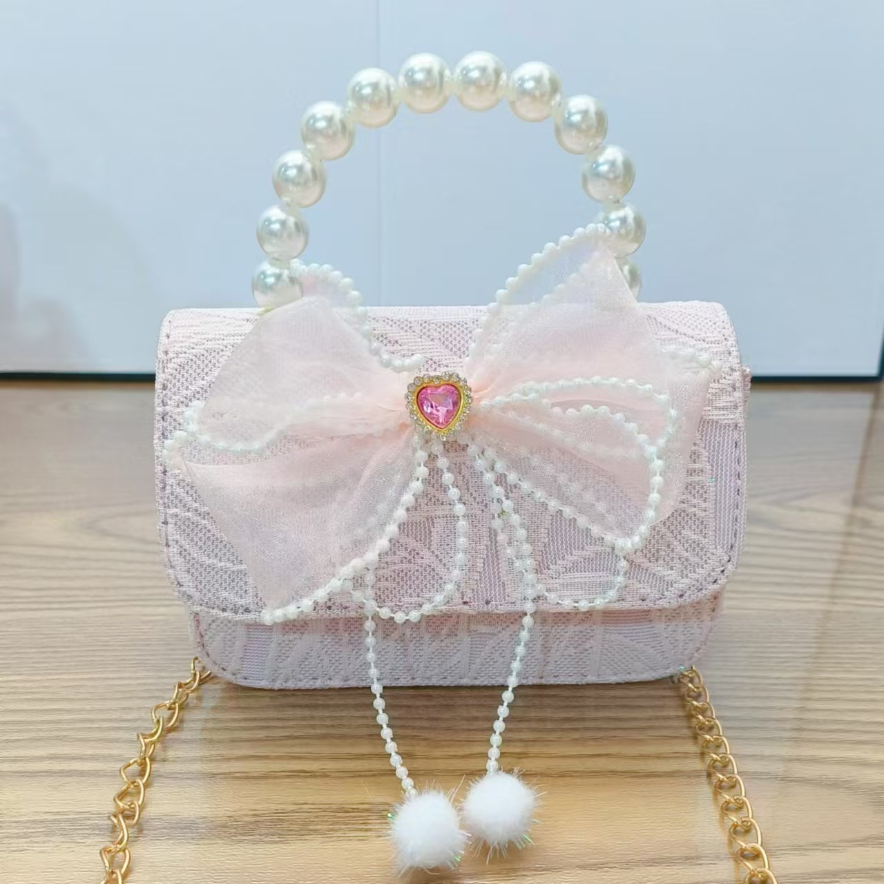 Bolso de princesa con lazo Bolso de perla Bolso de mensajero de cadena Bolso de hombro para niñas Bolso de niño con fragancia pequeña Bolso de accesorios
