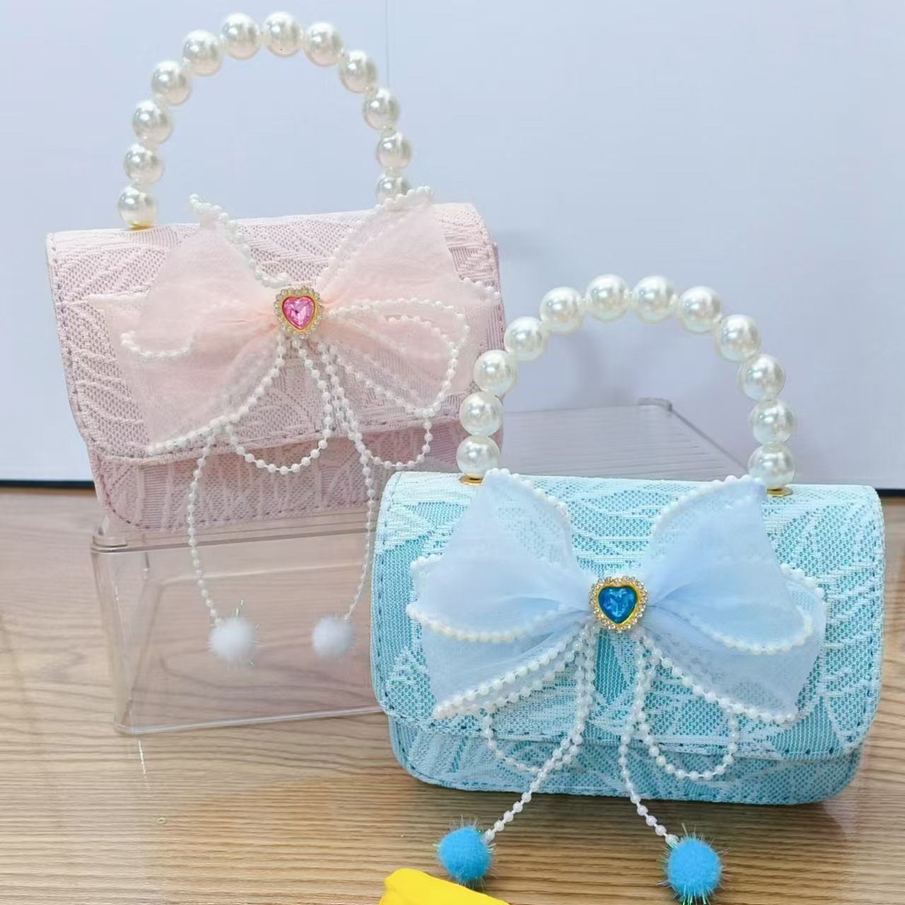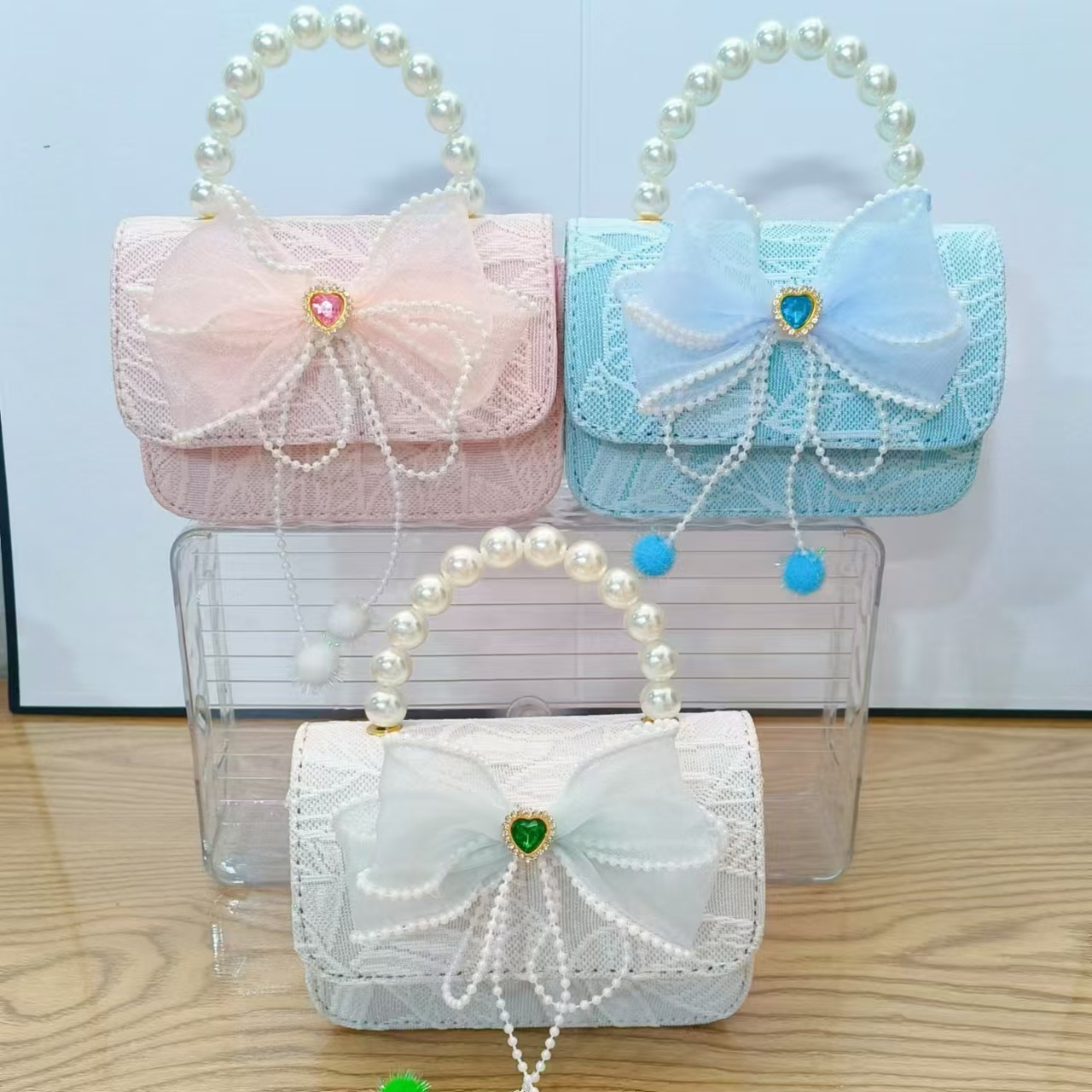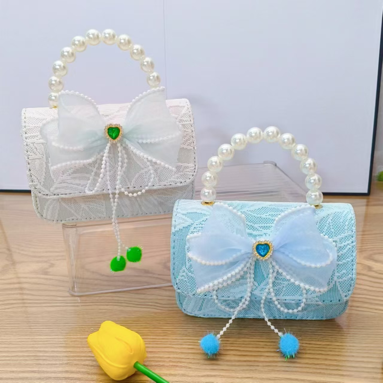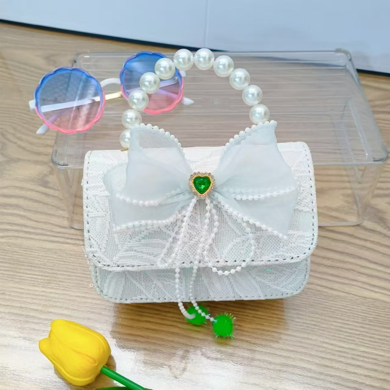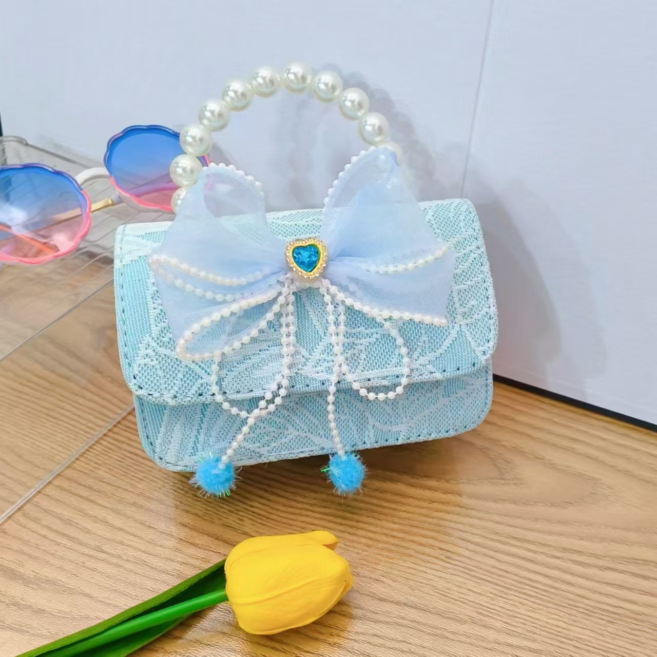 Bolso de princesa con lazo Bolso de perla Bolso de mensajero de cadena Bolso de hombro para niñas Bolso de niño con fragancia pequeña Bolso de accesorios