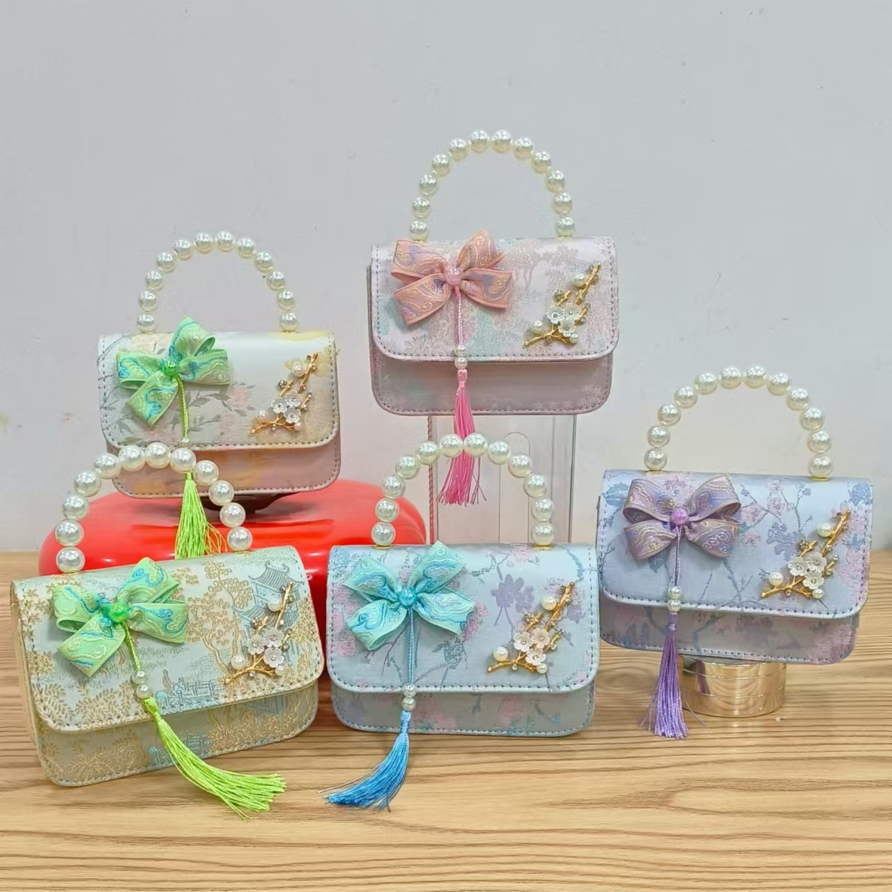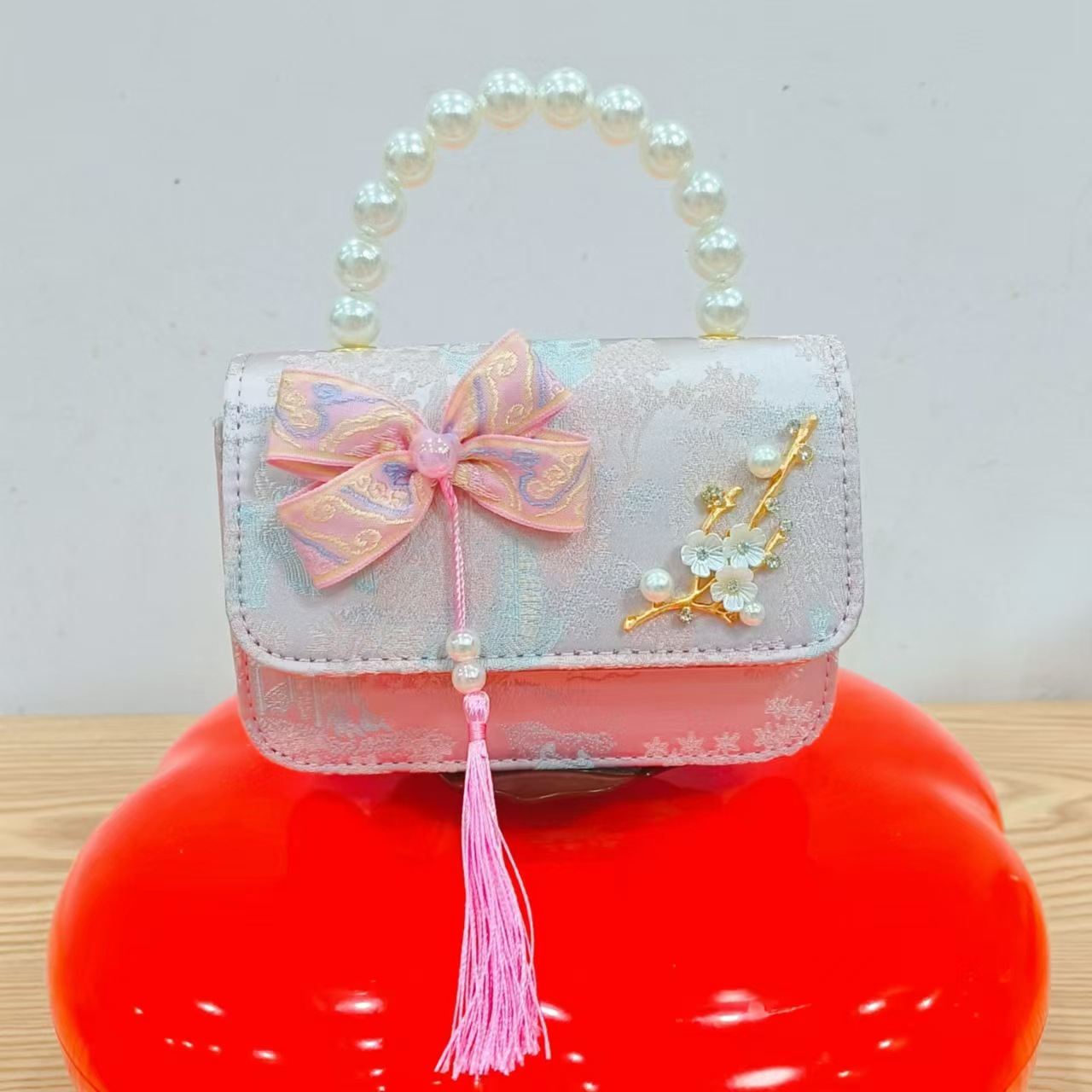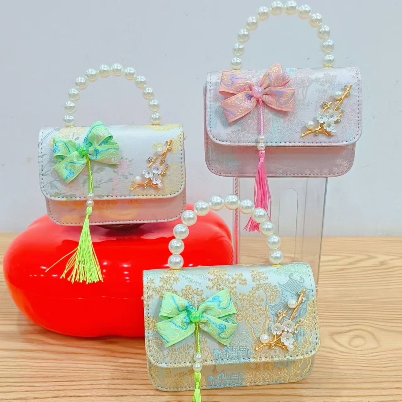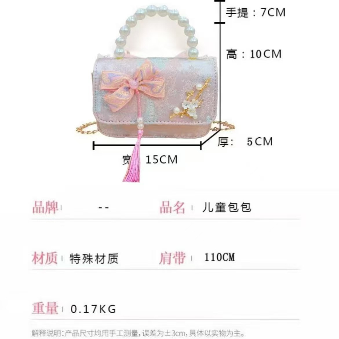 国风公主包链条小方包珍珠手提包女孩斜挎压岁钱包六一儿童节礼物