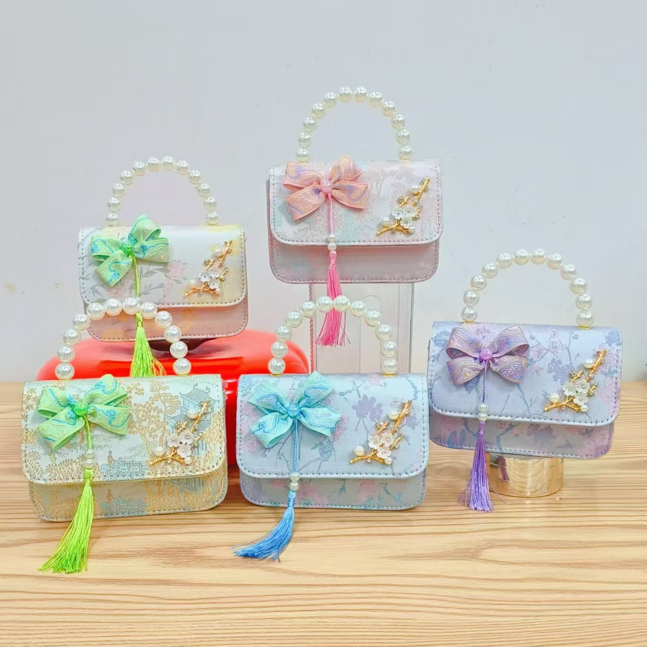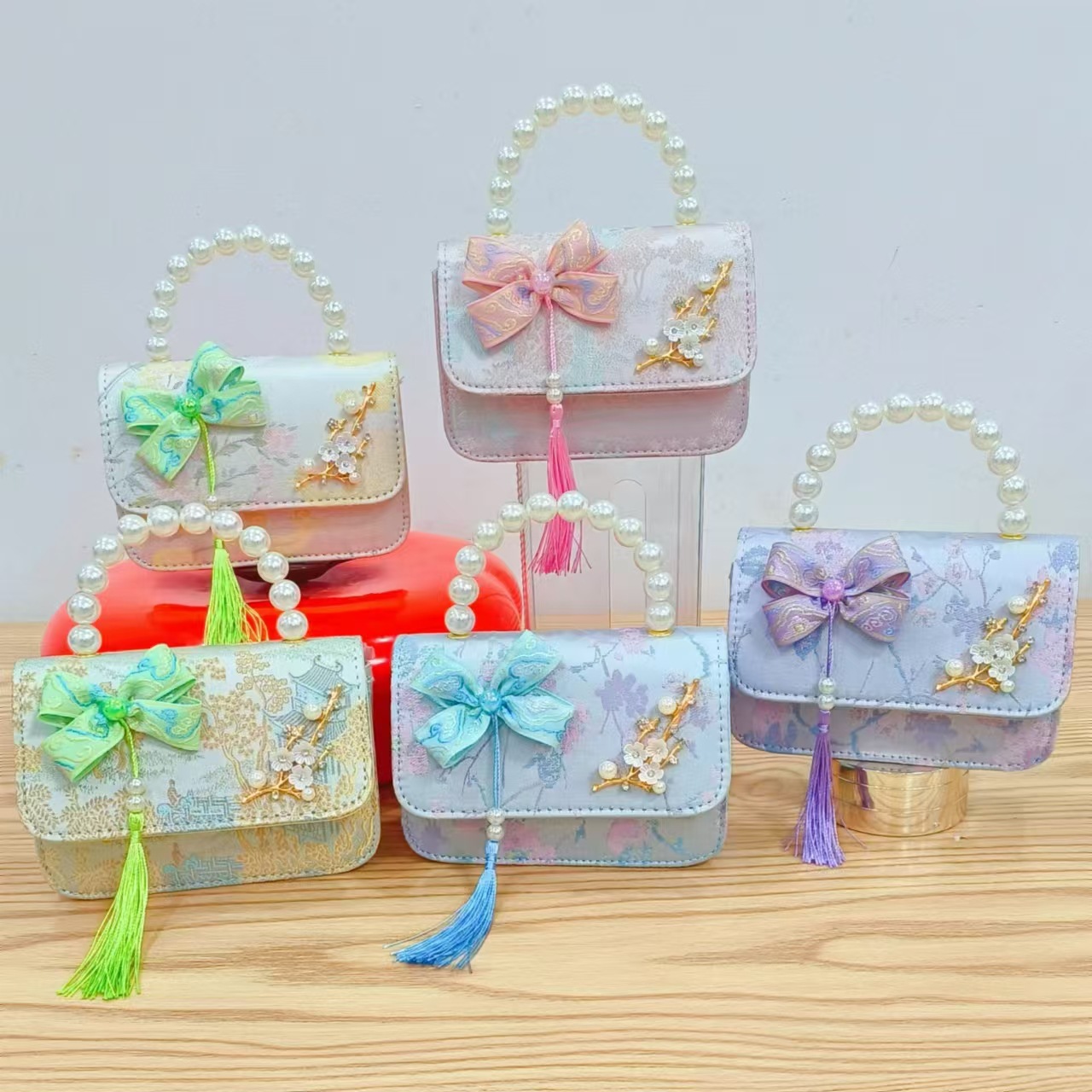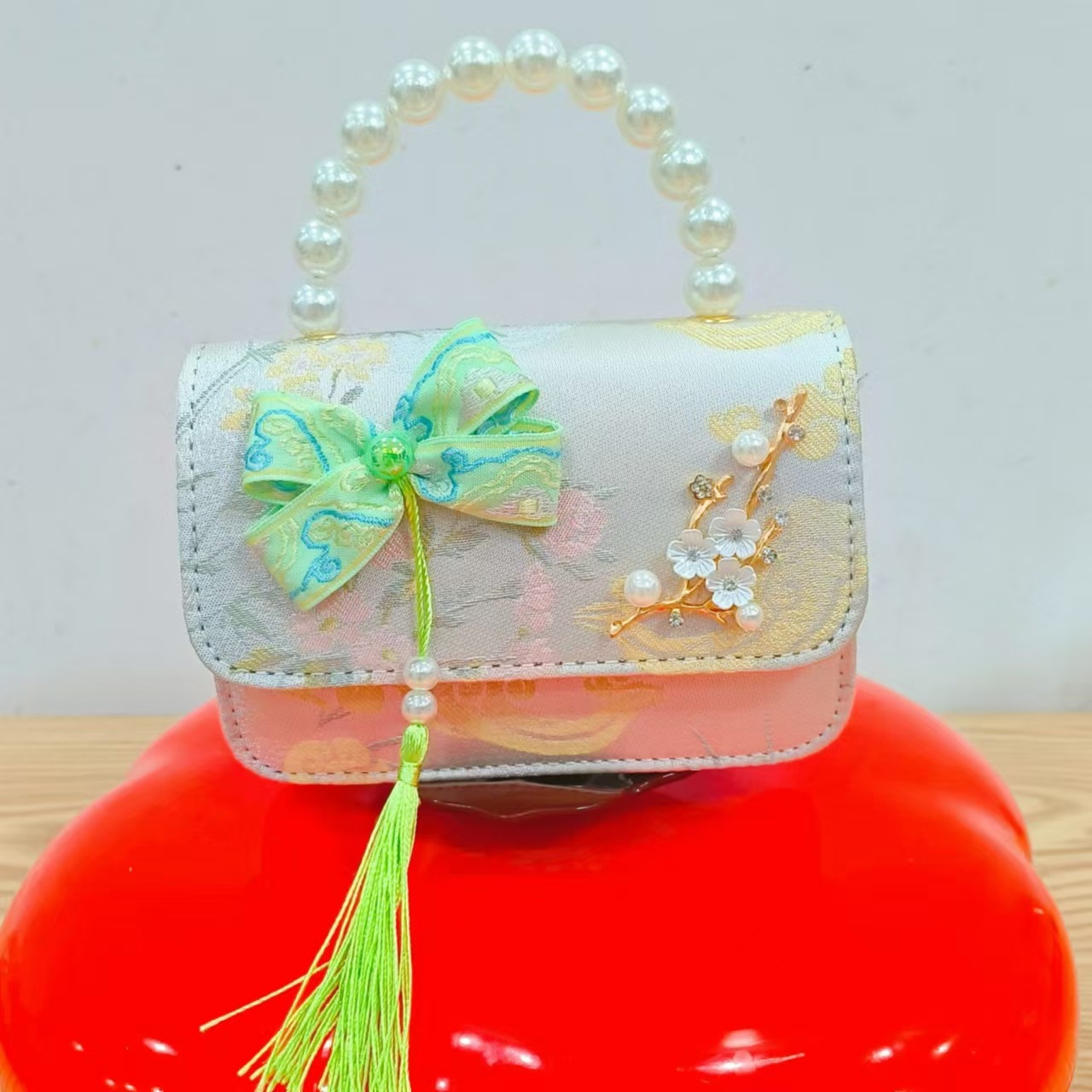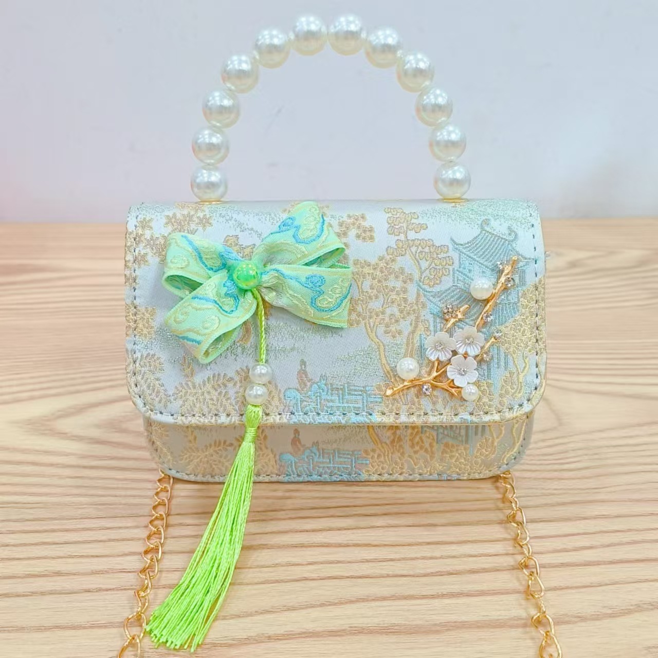 国风公主包链条小方包珍珠手提包女孩斜挎压岁钱包六一儿童节礼物