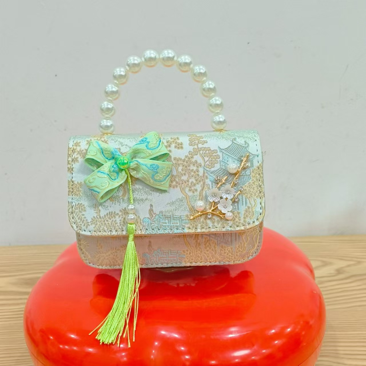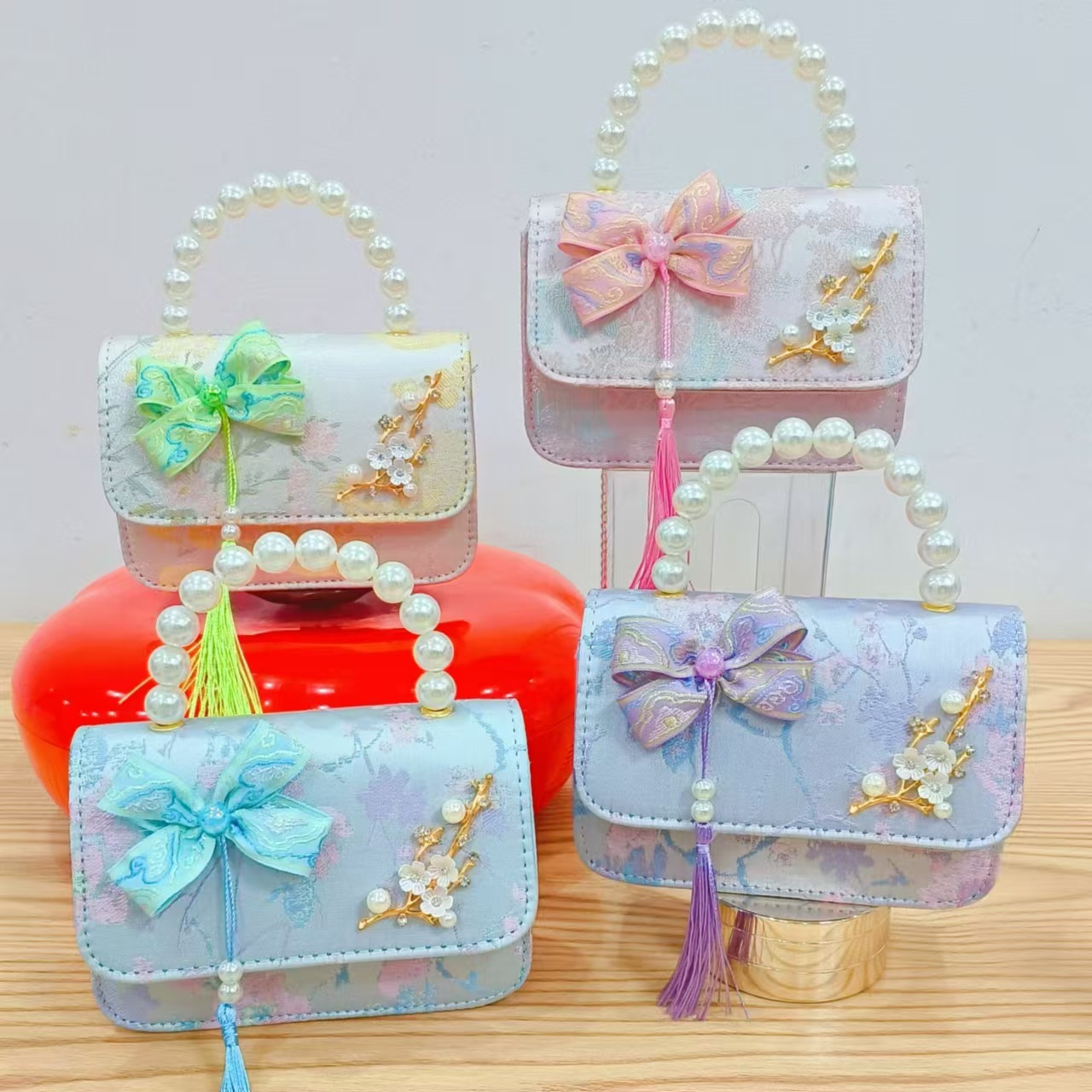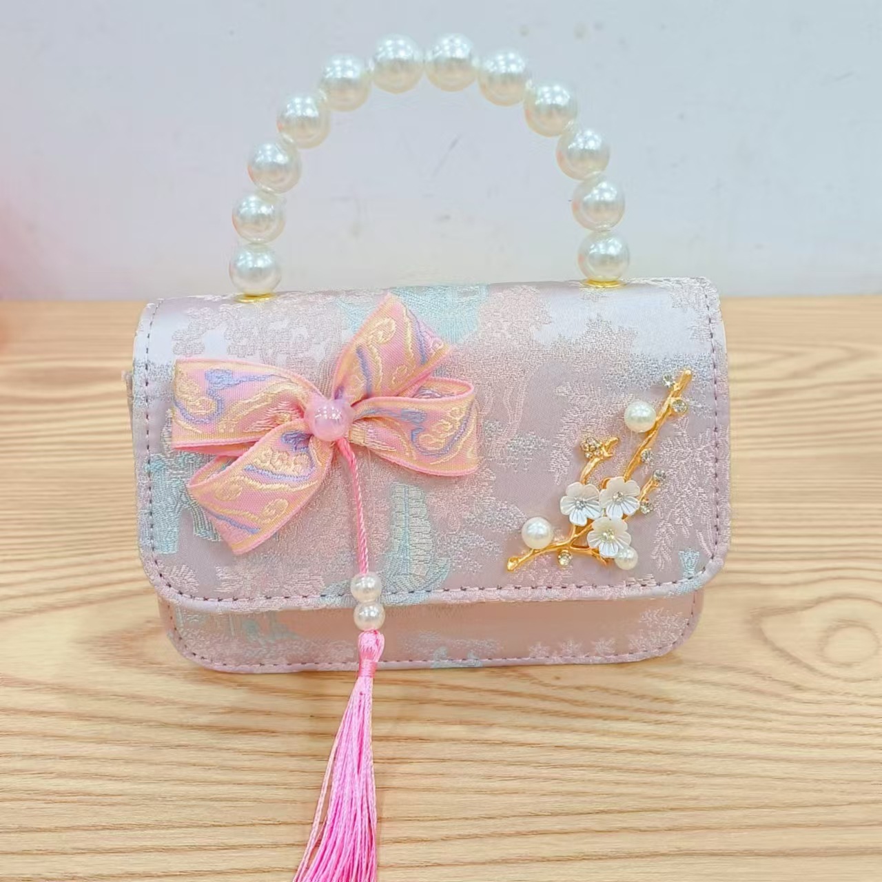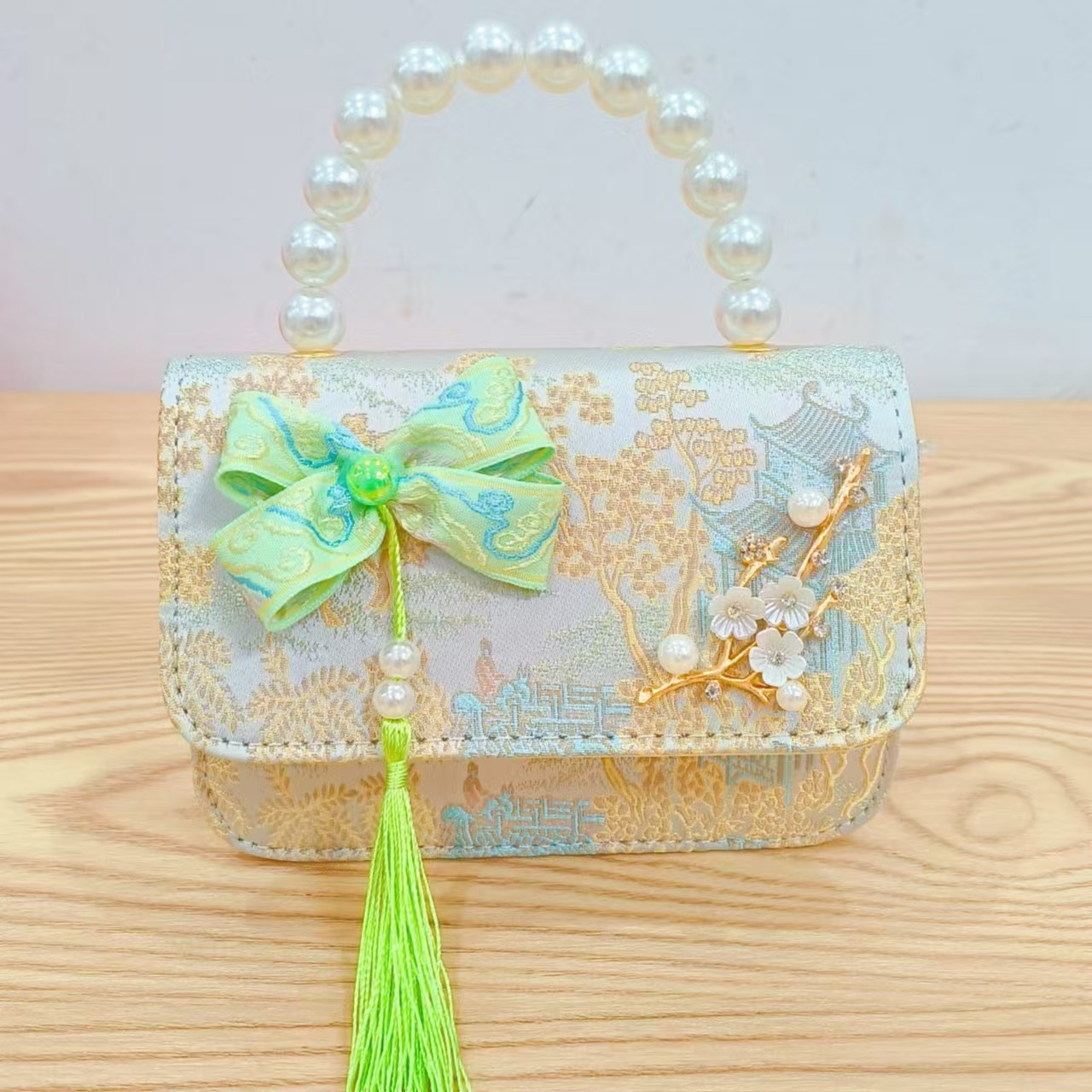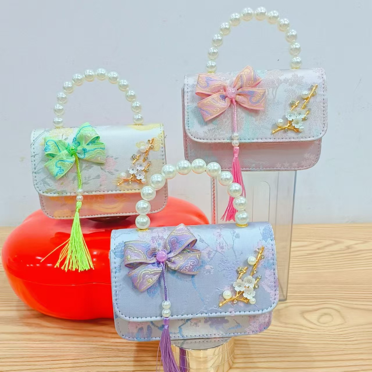 国风公主包链条小方包珍珠手提包女孩斜挎压岁钱包六一儿童节礼物