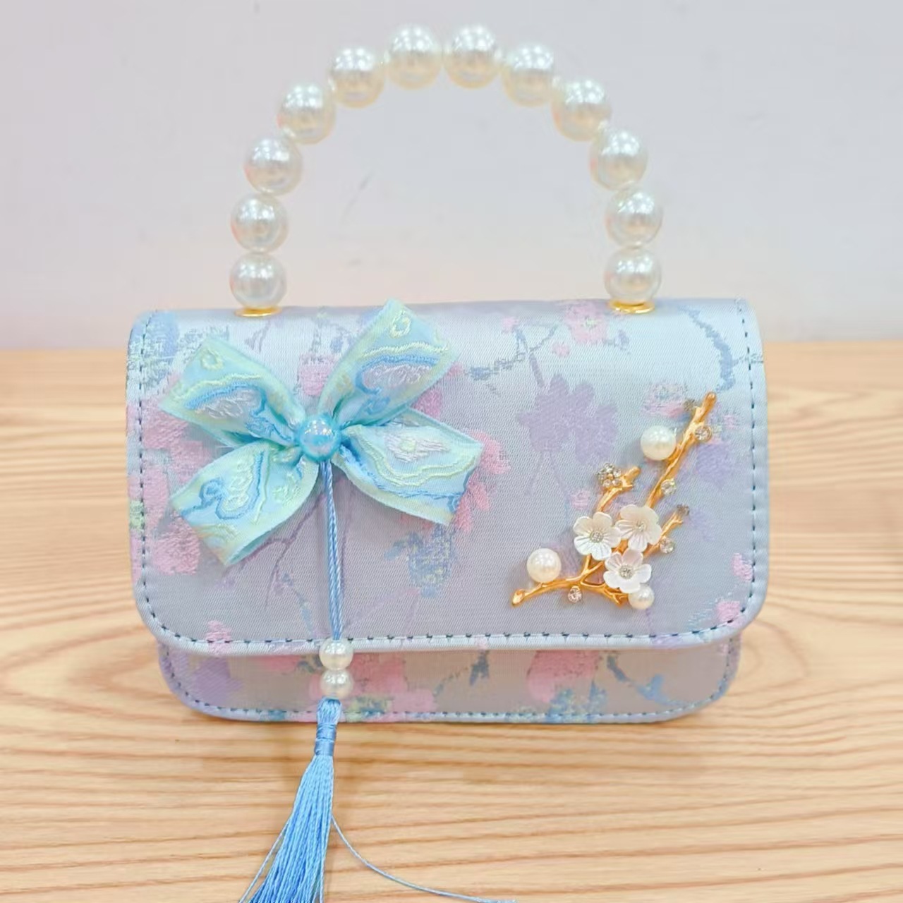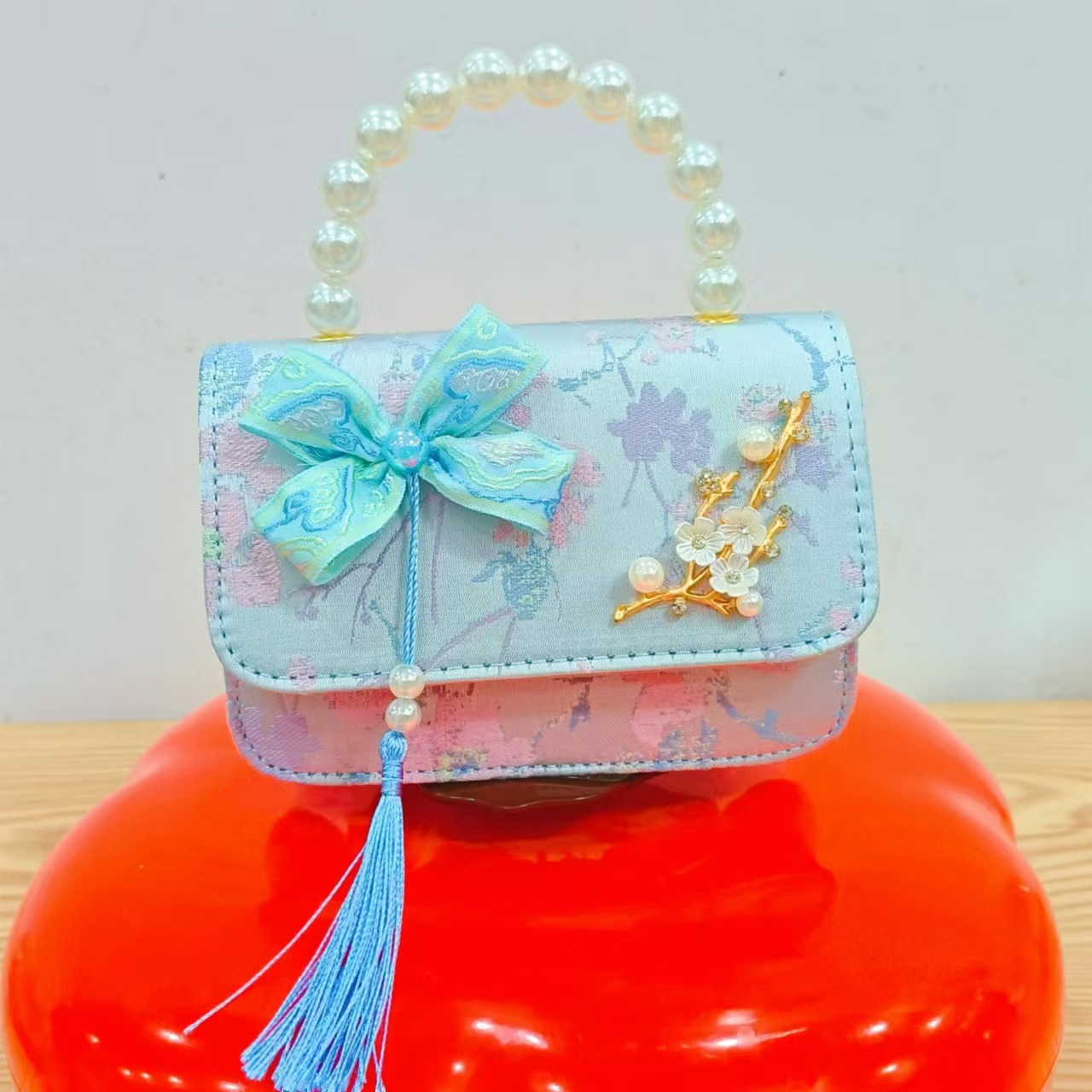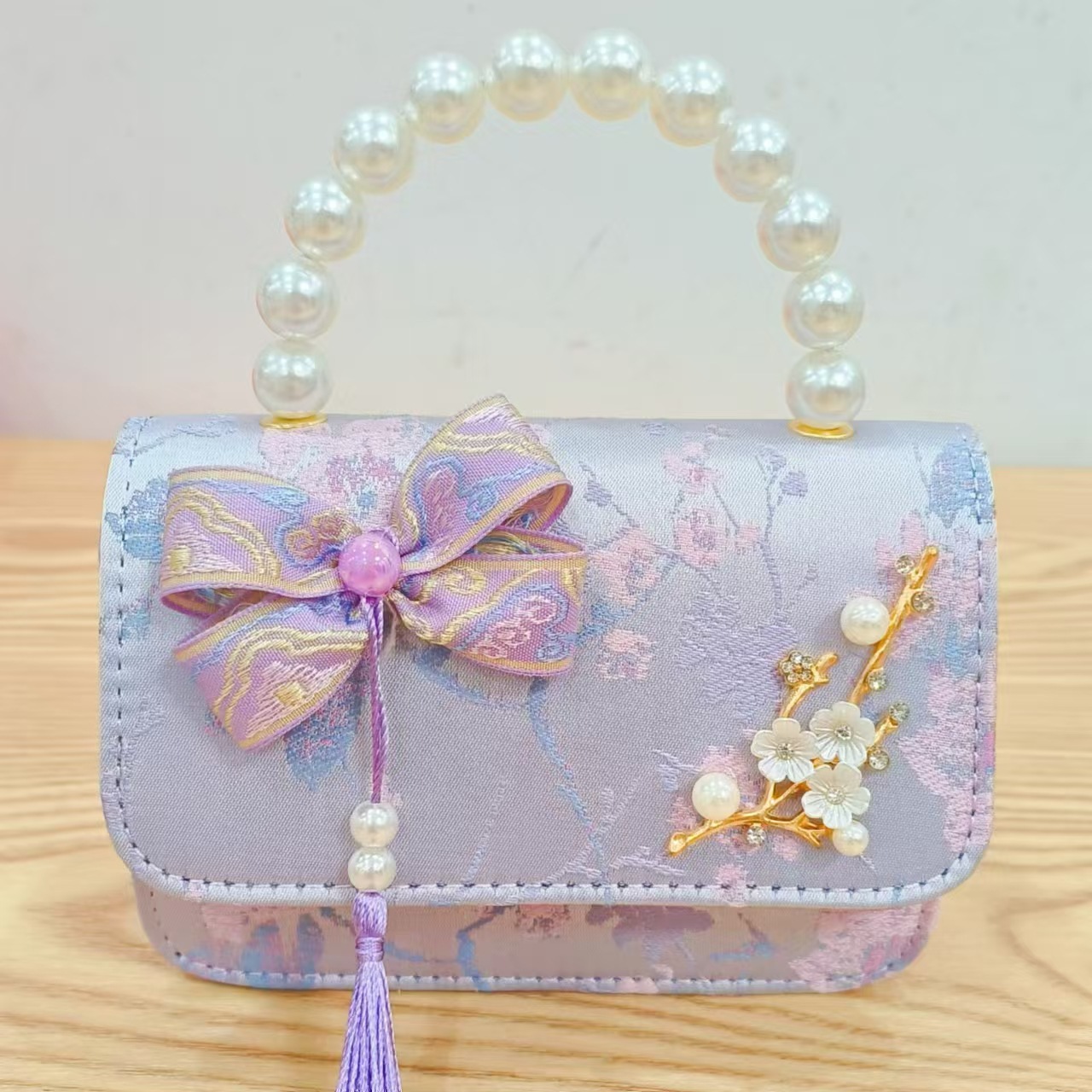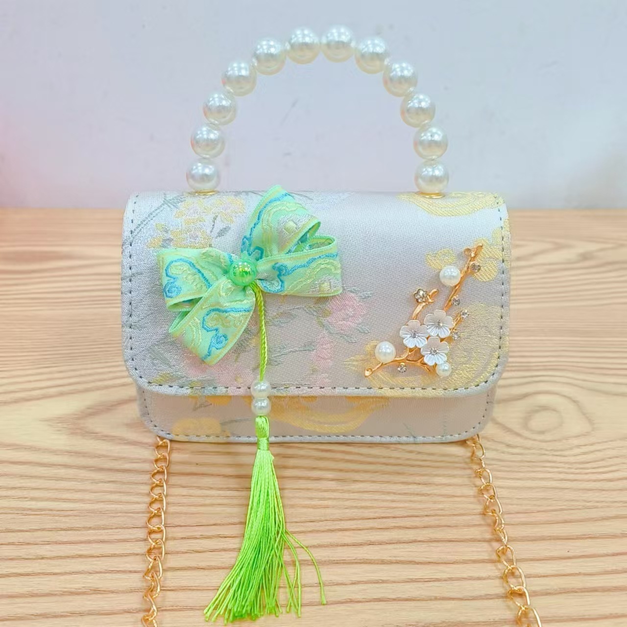 国风公主包链条小方包珍珠手提包女孩斜挎压岁钱包六一儿童节礼物