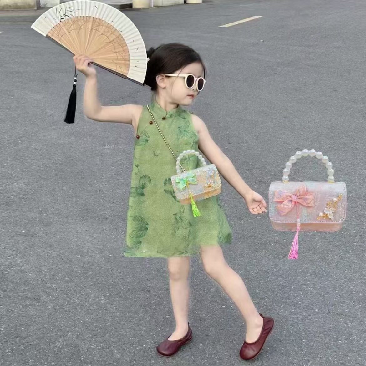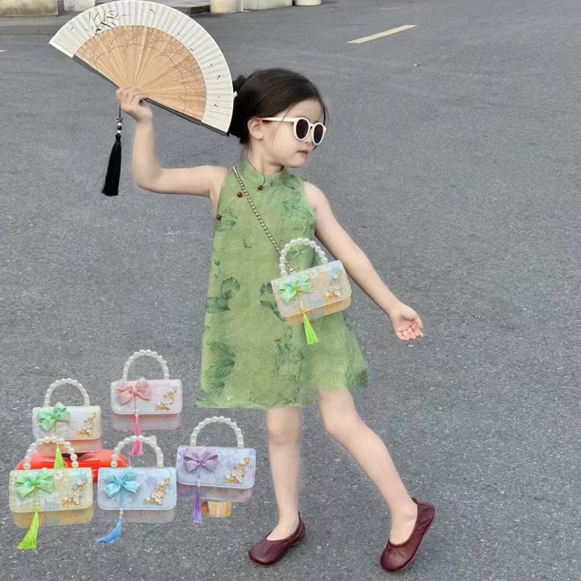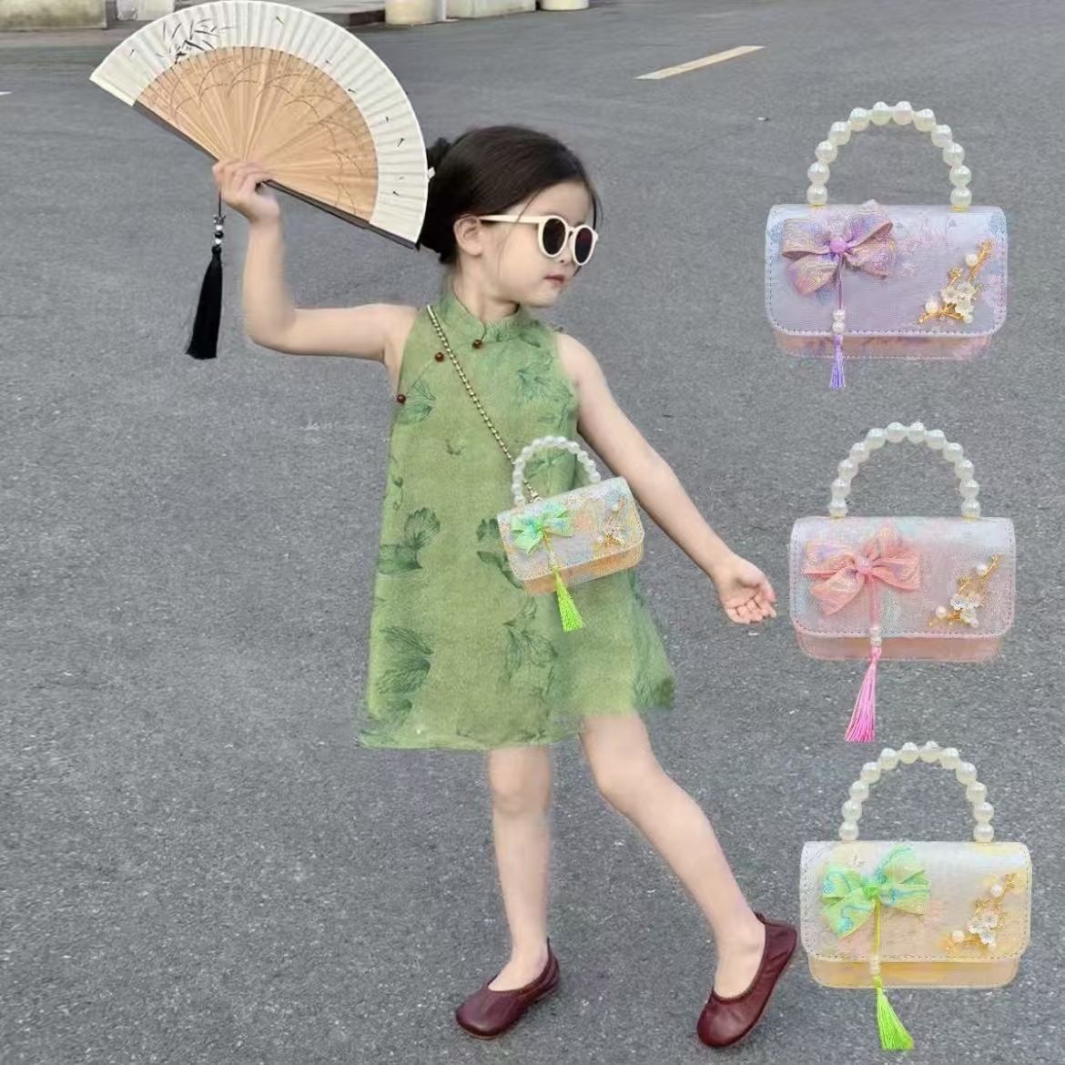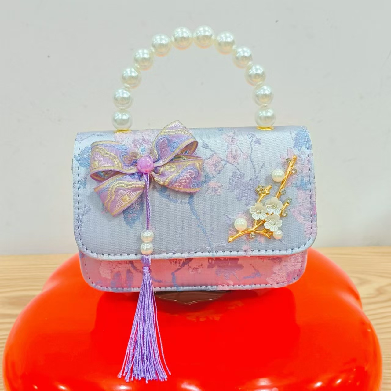 国风公主包链条小方包珍珠手提包女孩斜挎压岁钱包六一儿童节礼物