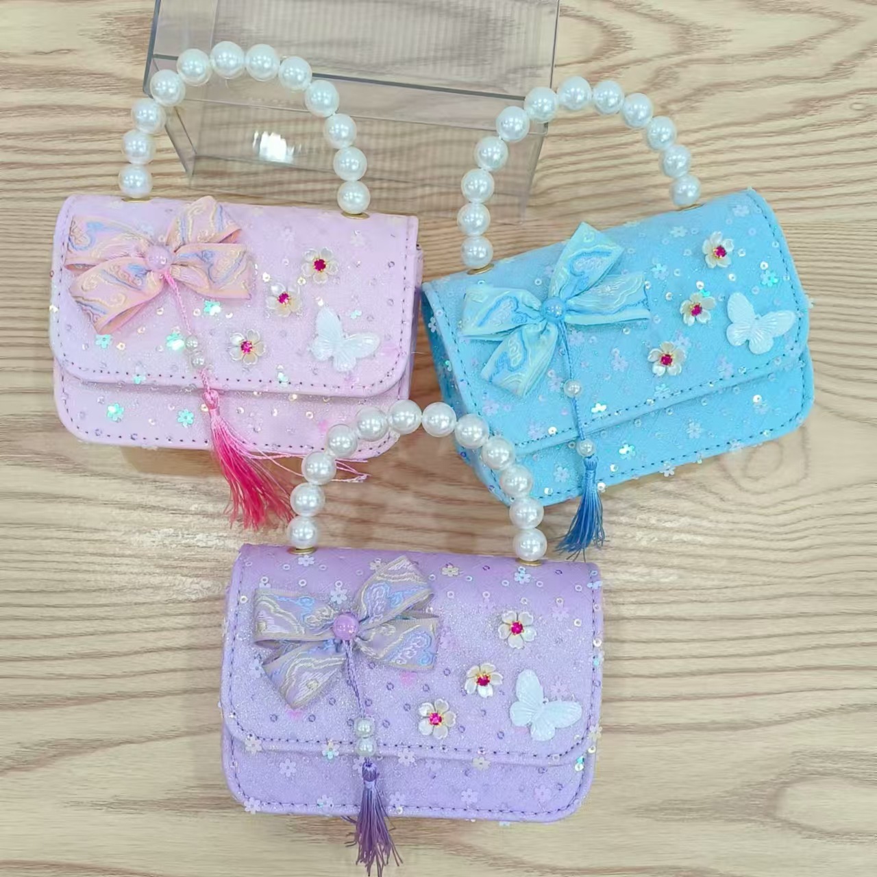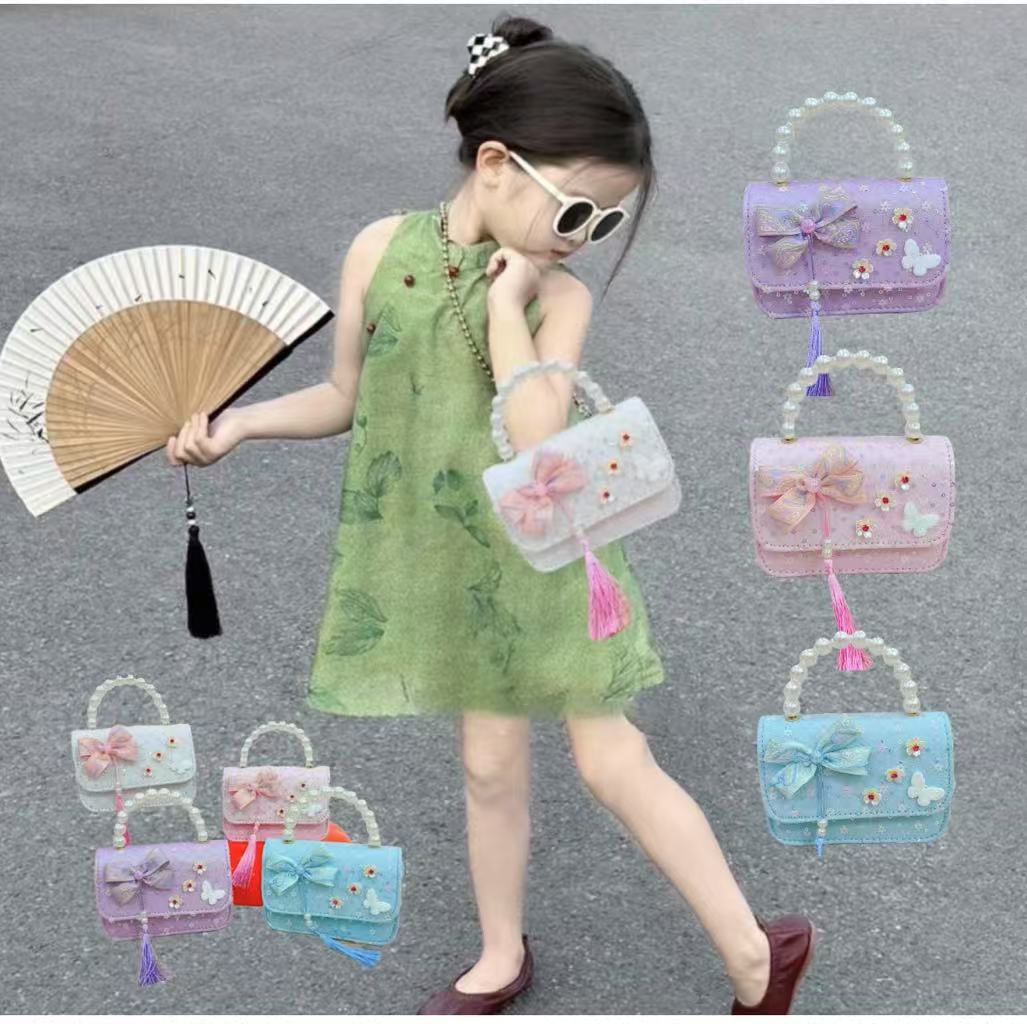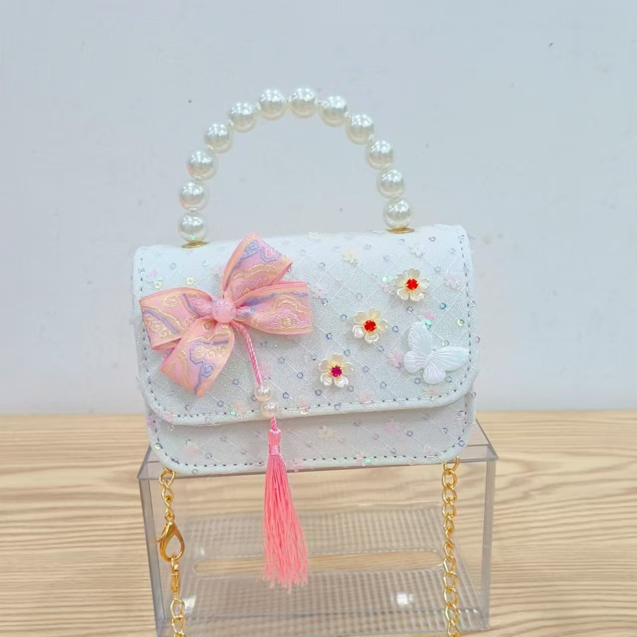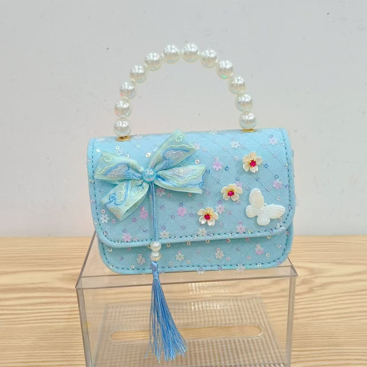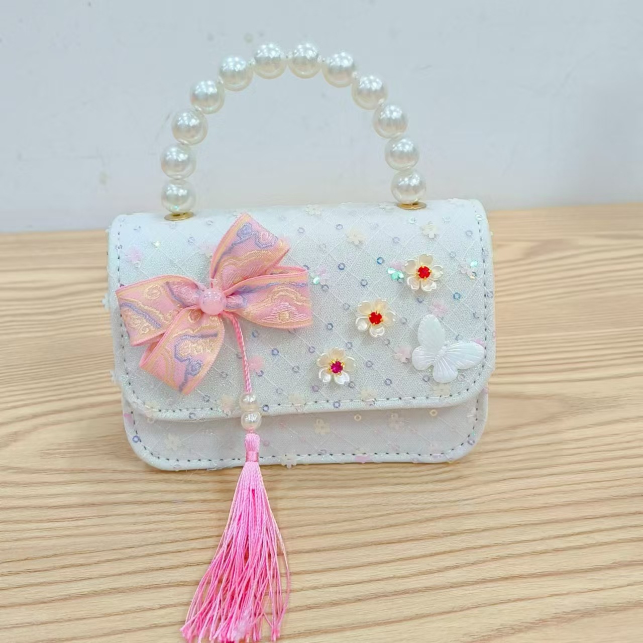 珍珠手提包国风蝴蝶结公主包女孩压岁钱包六一儿童节礼物链条方包
