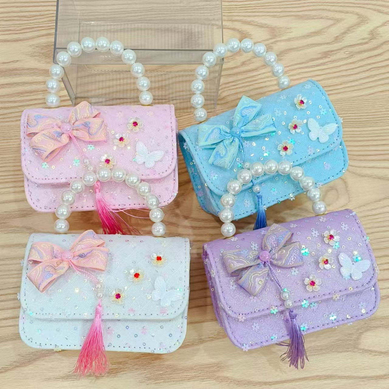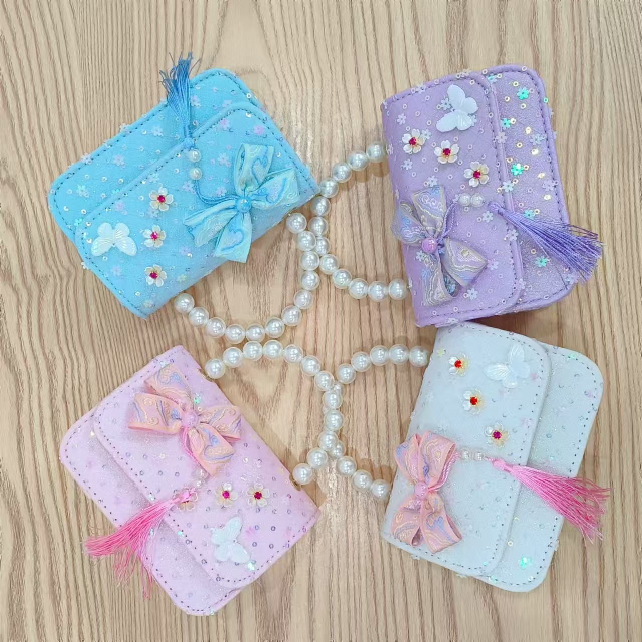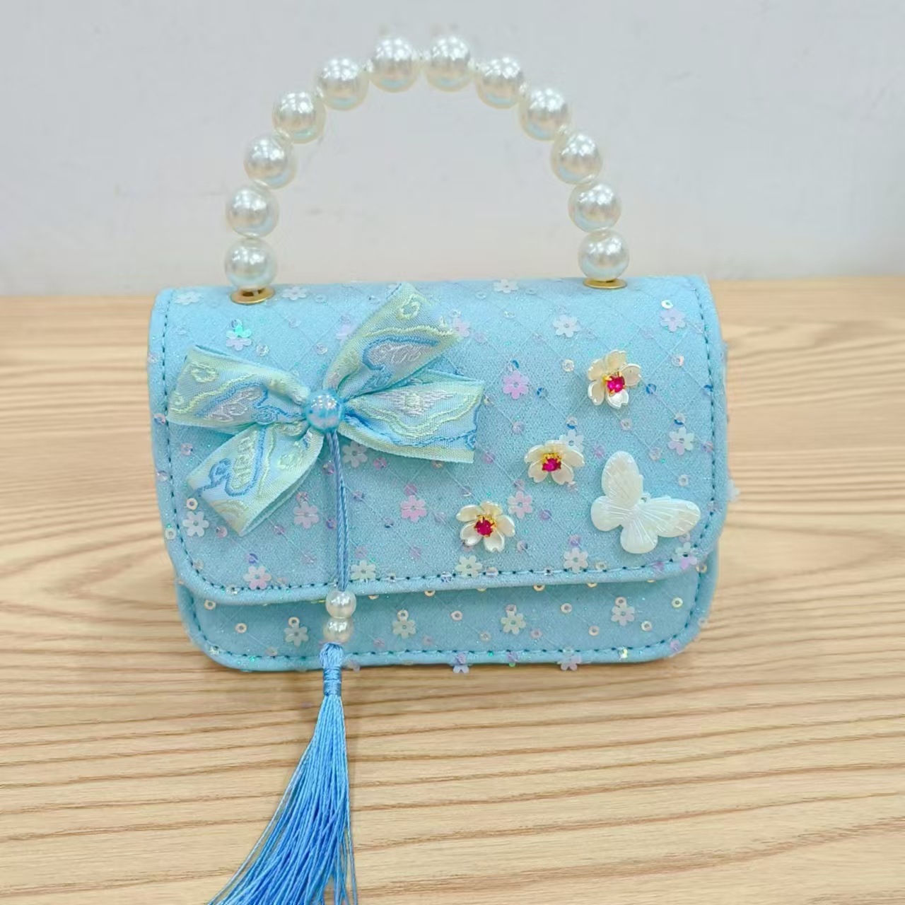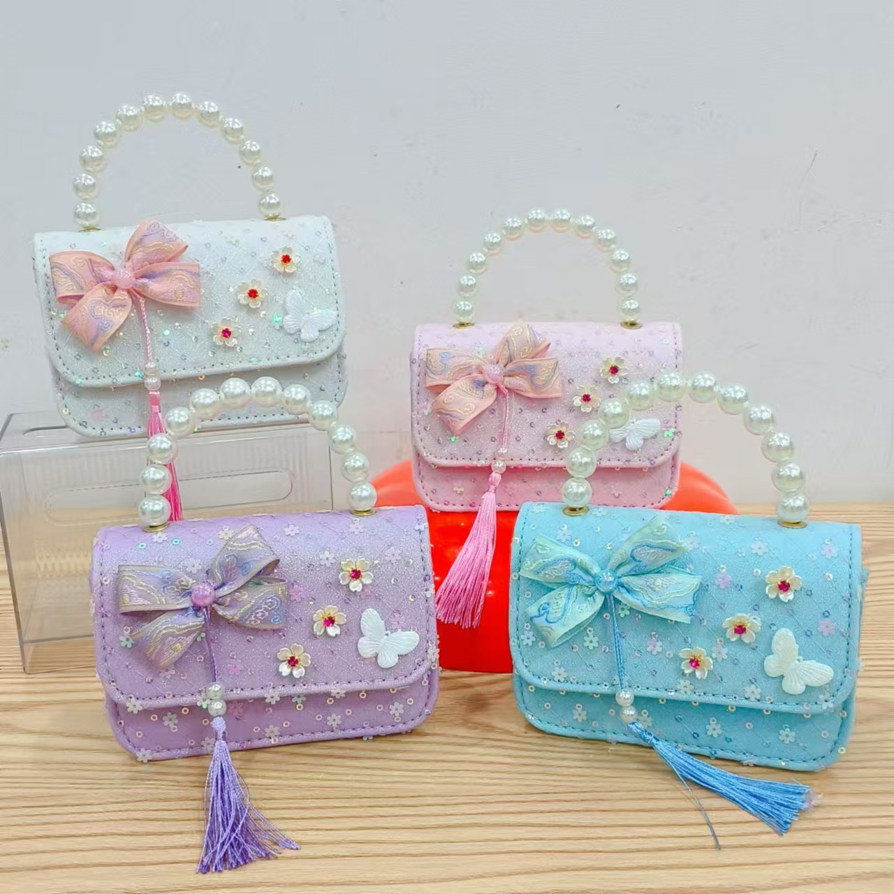 珍珠手提包国风蝴蝶结公主包女孩压岁钱包六一儿童节礼物链条方包
