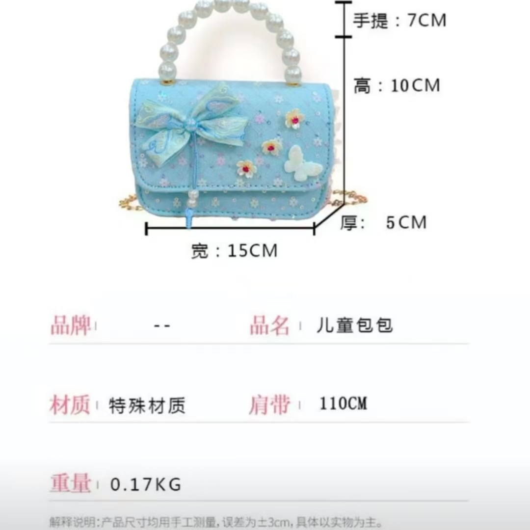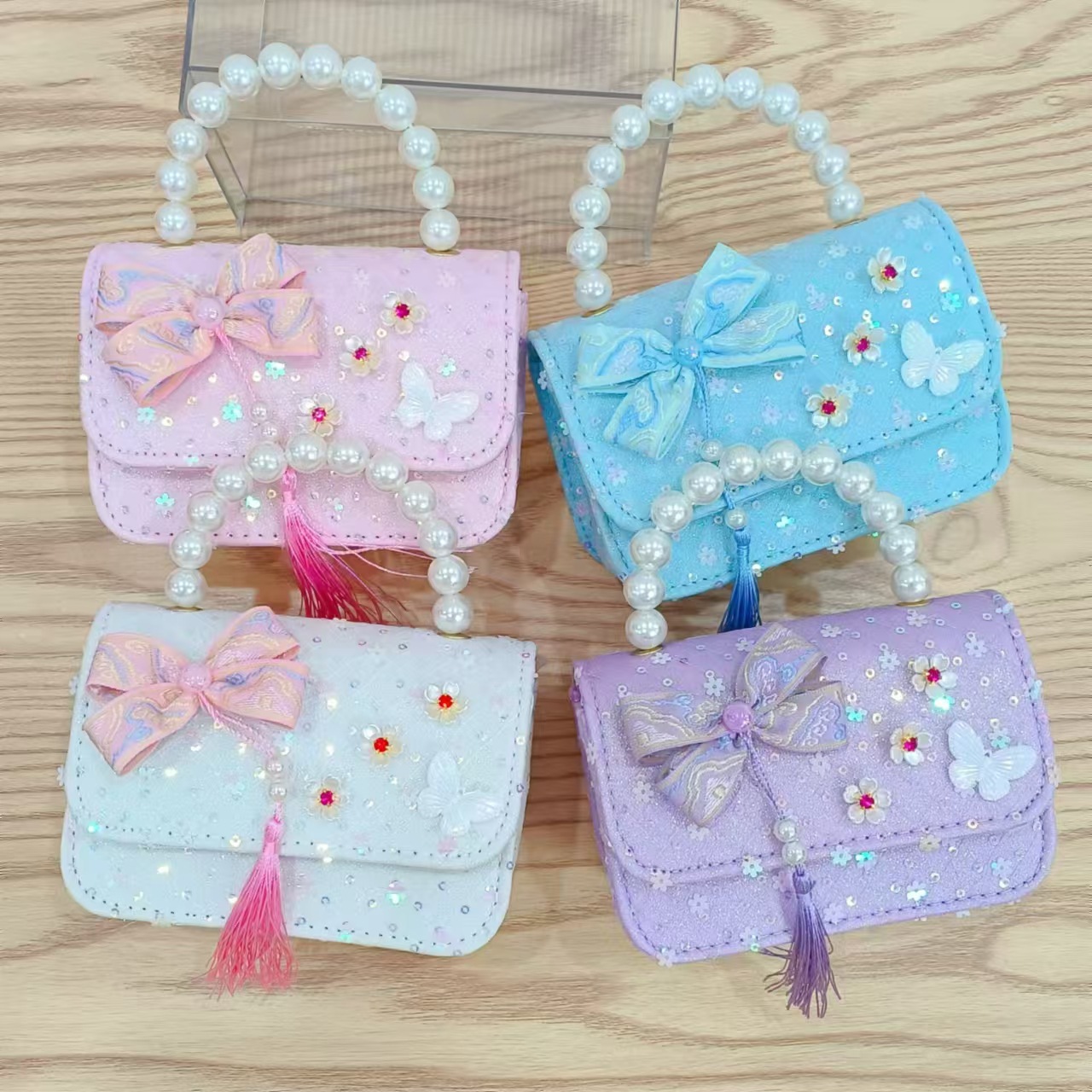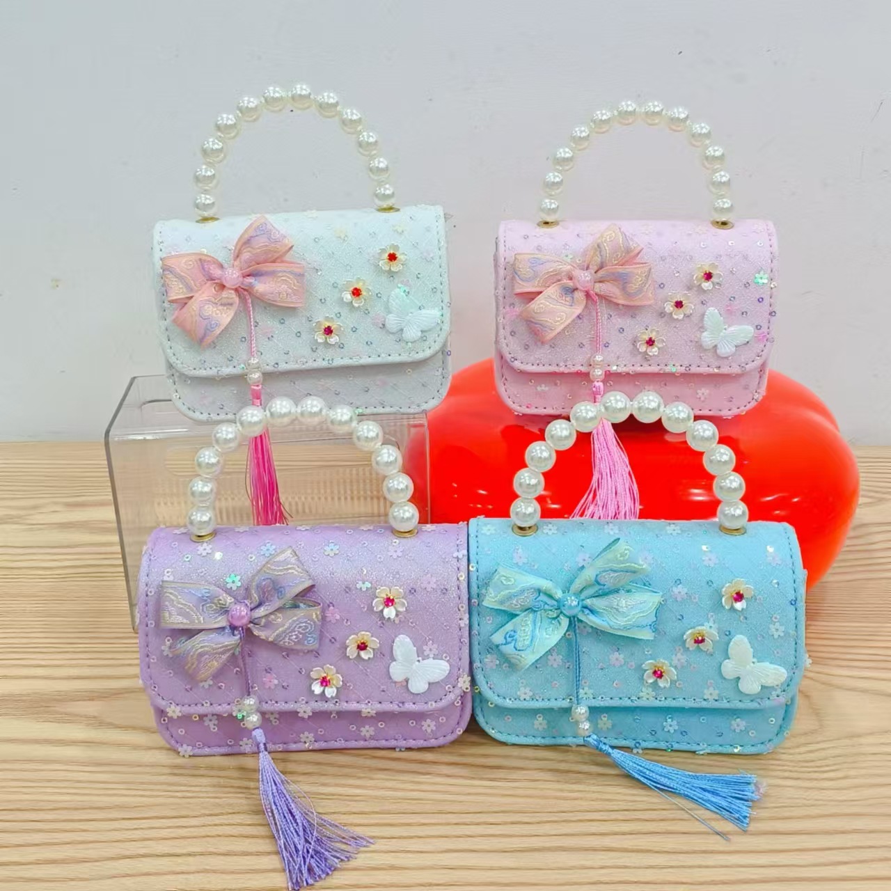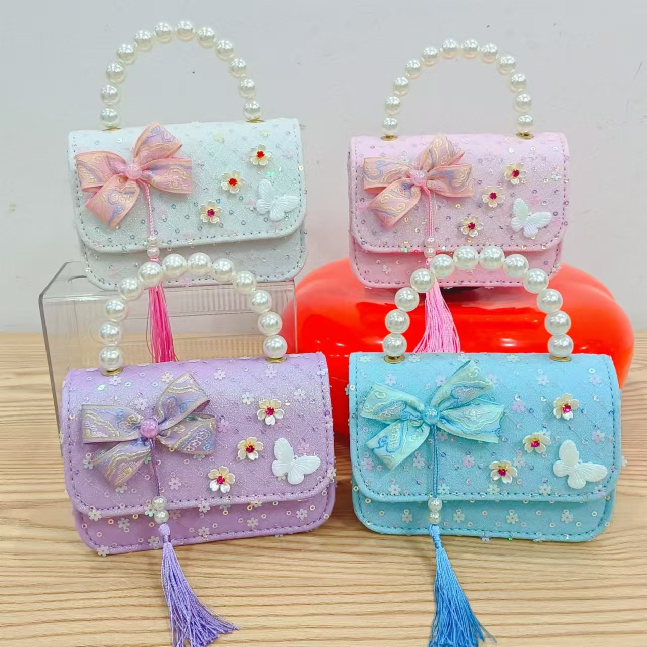 珍珠手提包国风蝴蝶结公主包女孩压岁钱包六一儿童节礼物链条方包