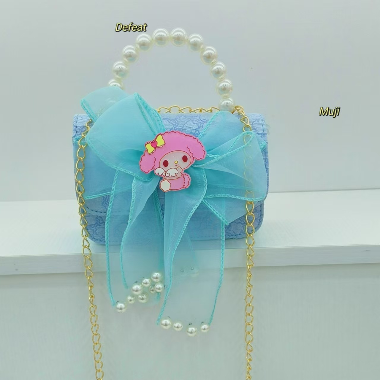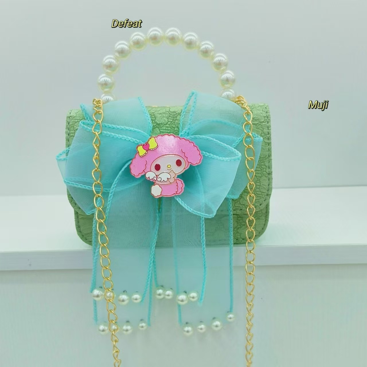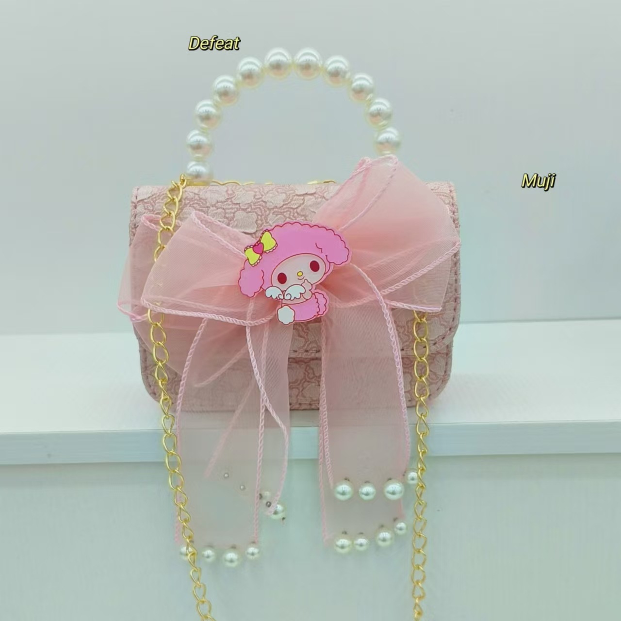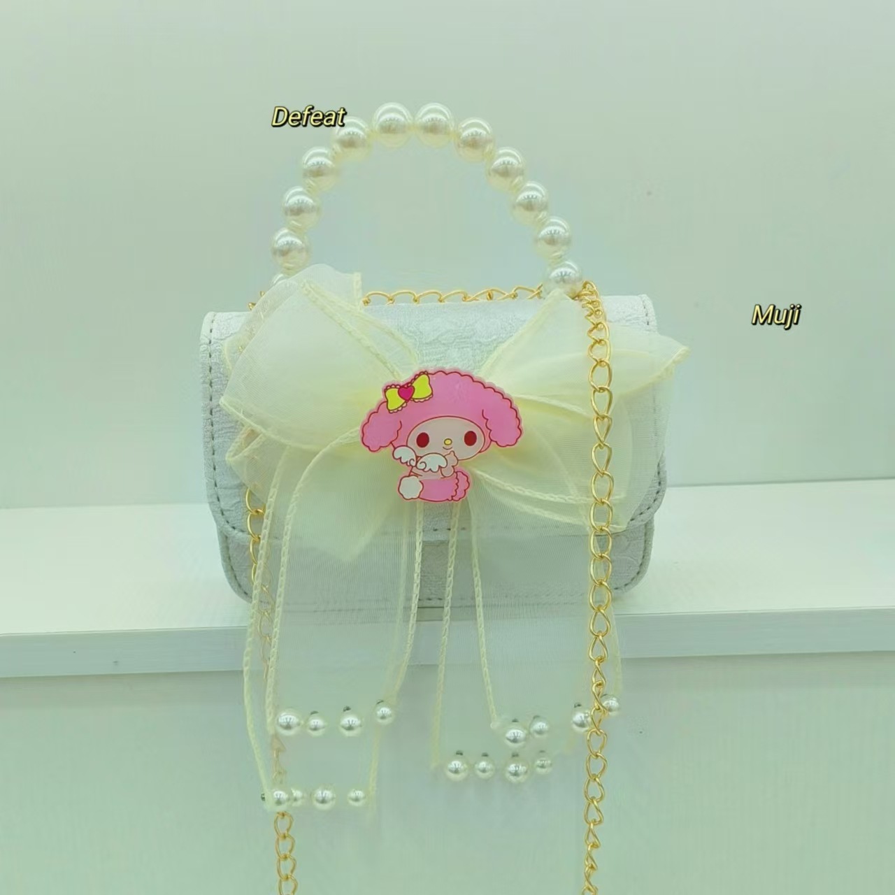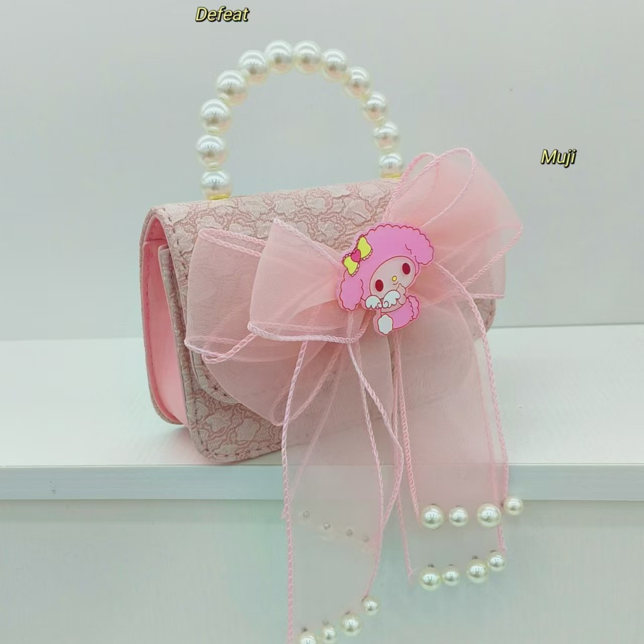 珍珠手提公主包美乐蒂斜挎零钱配饰包蝴蝶结女孩压岁钱包链条方包