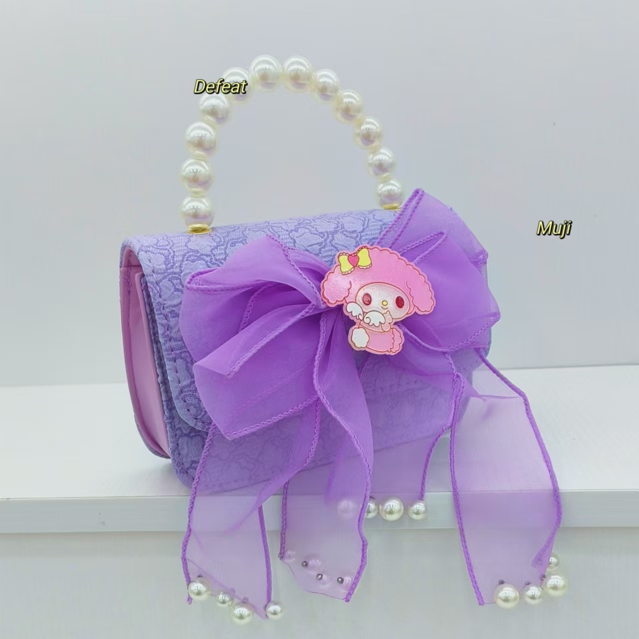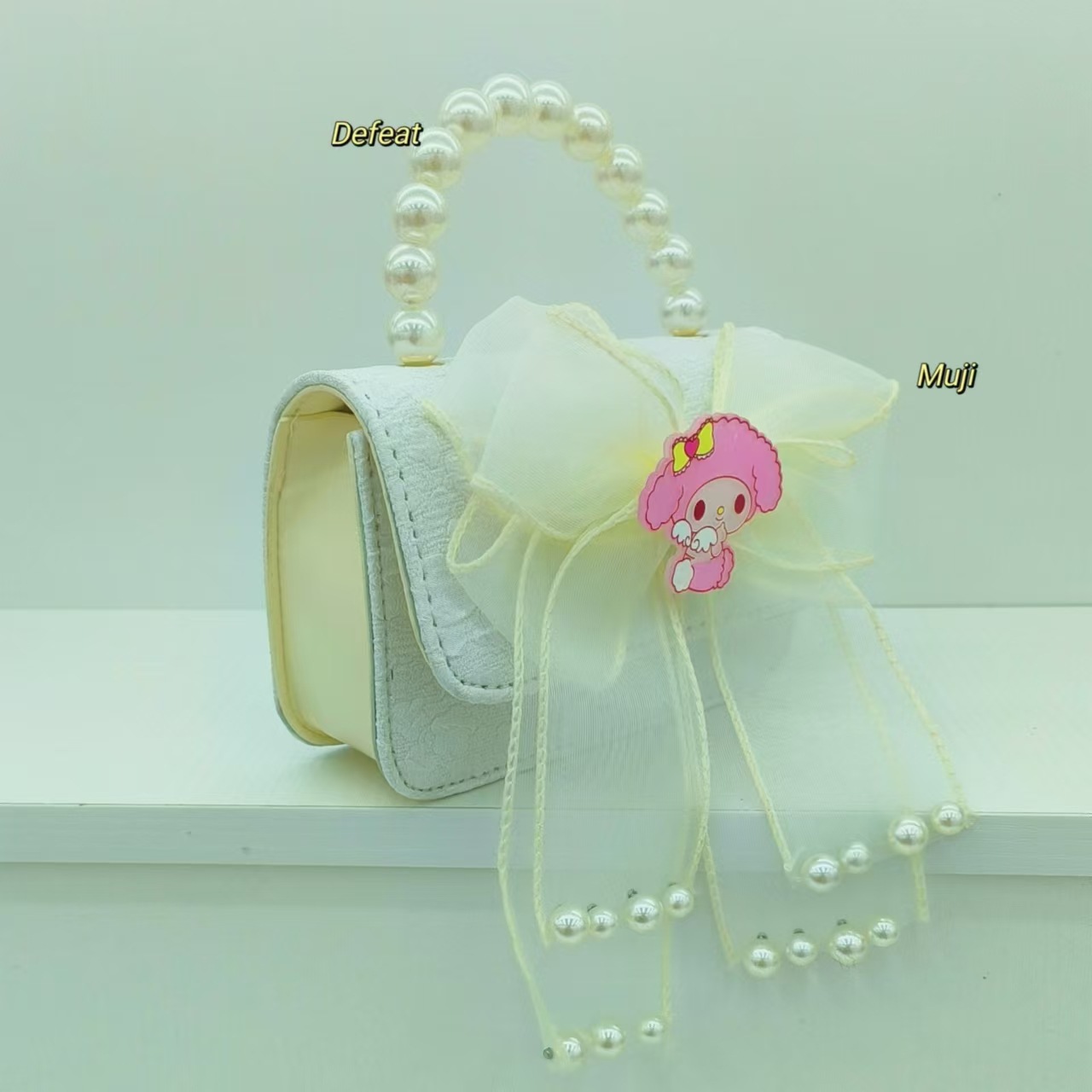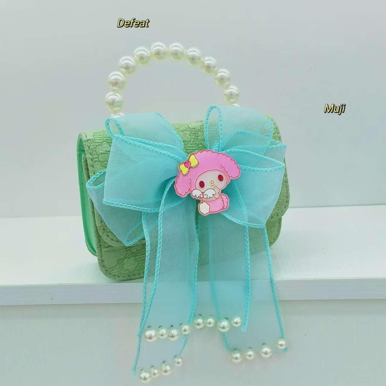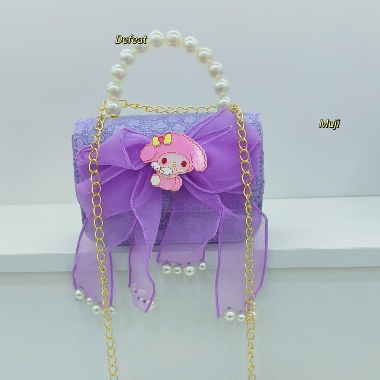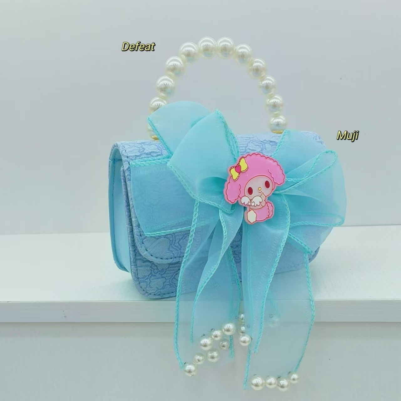 珍珠手提公主包美乐蒂斜挎零钱配饰包蝴蝶结女孩压岁钱包链条方包