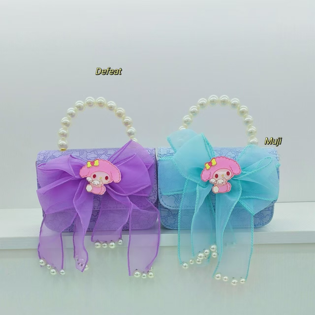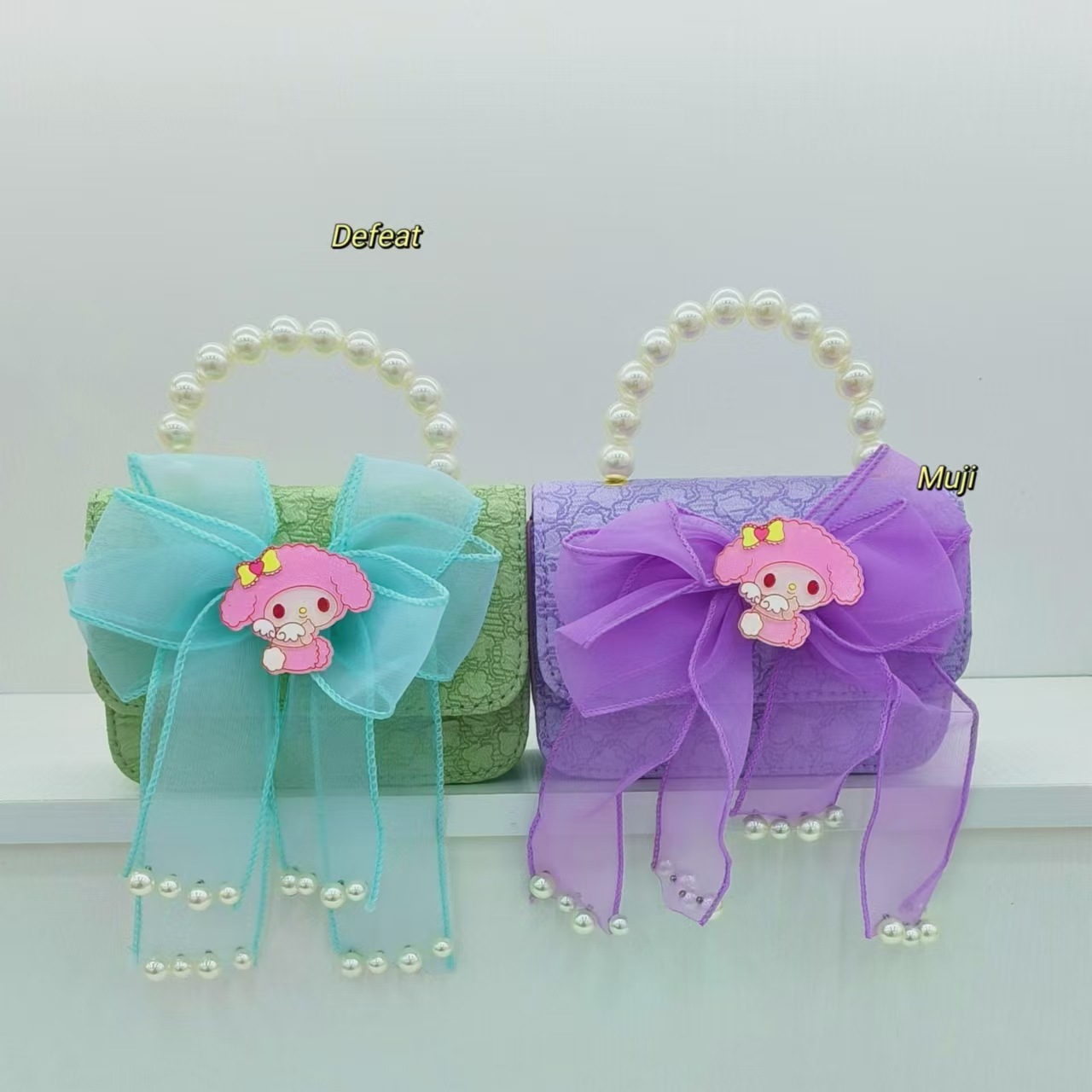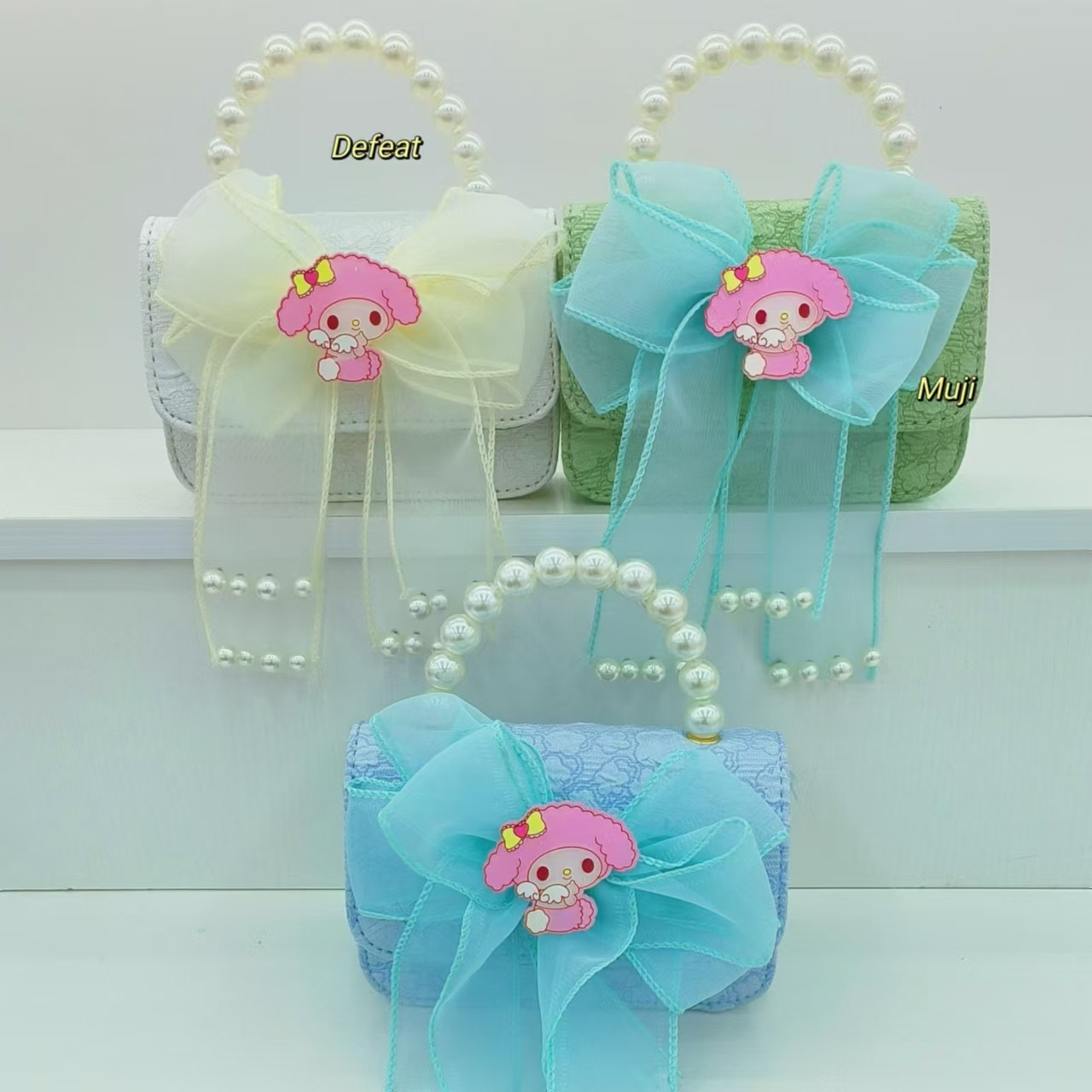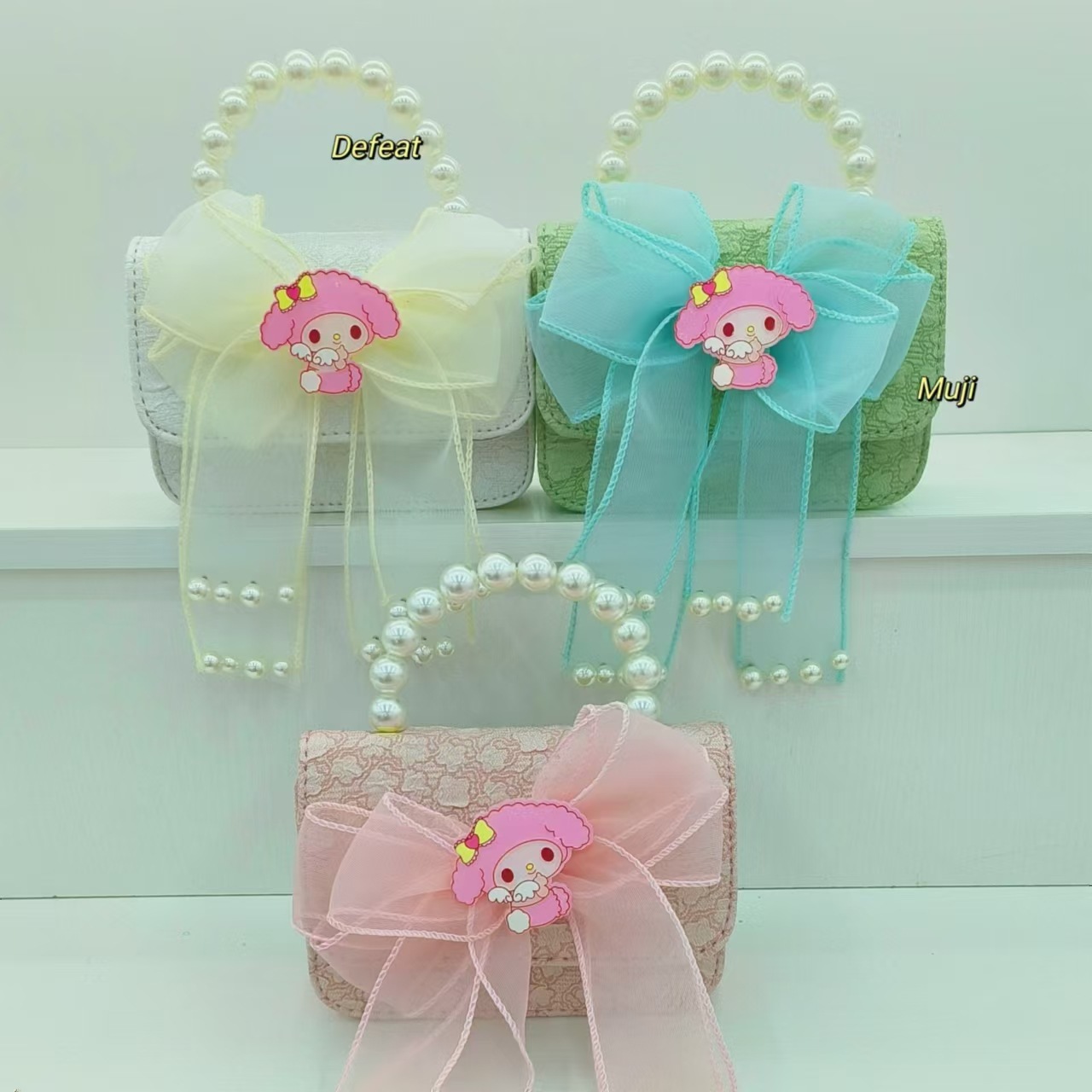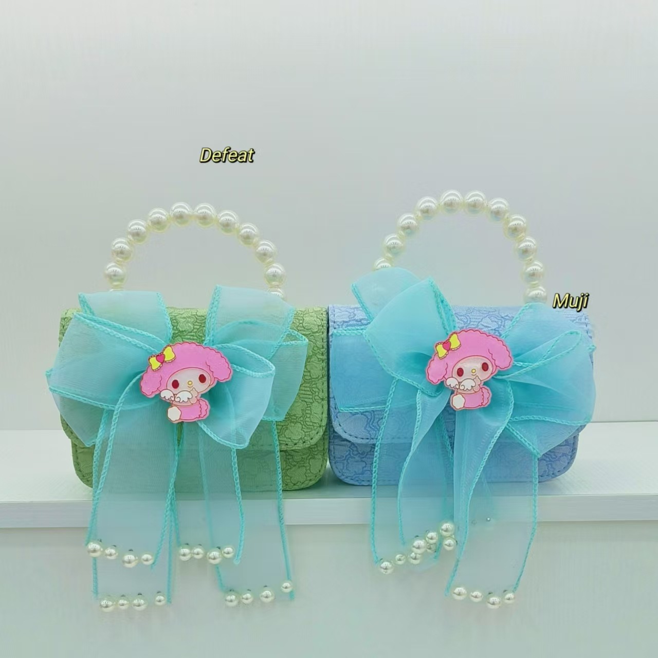 珍珠手提公主包美乐蒂斜挎零钱配饰包蝴蝶结女孩压岁钱包链条方包
