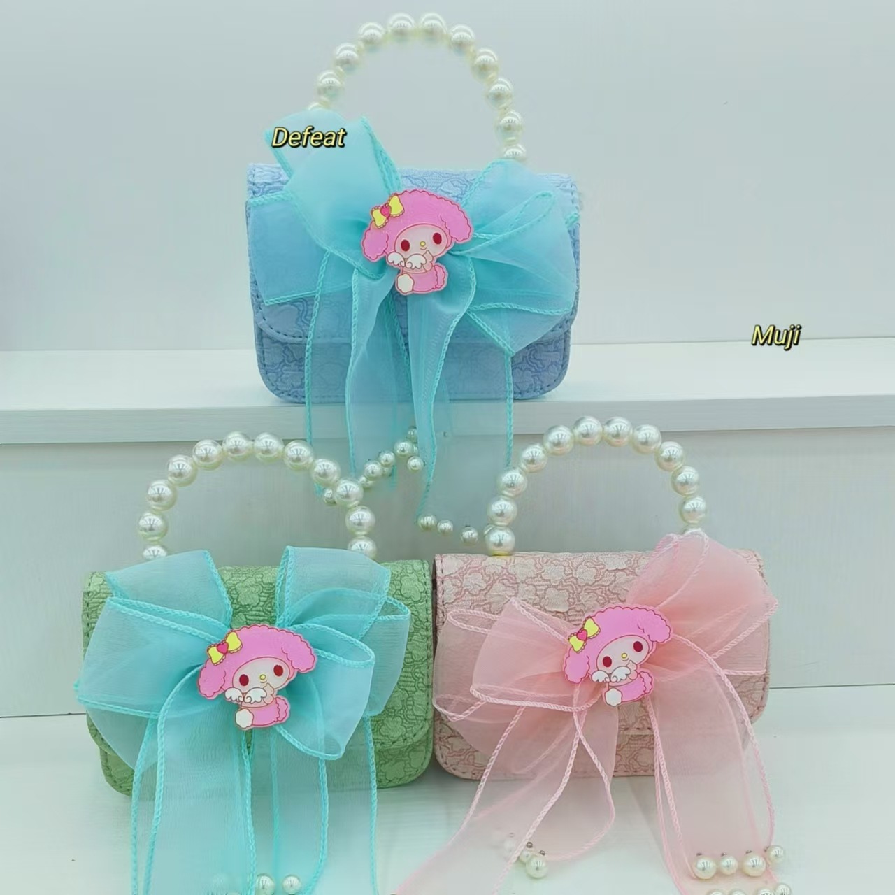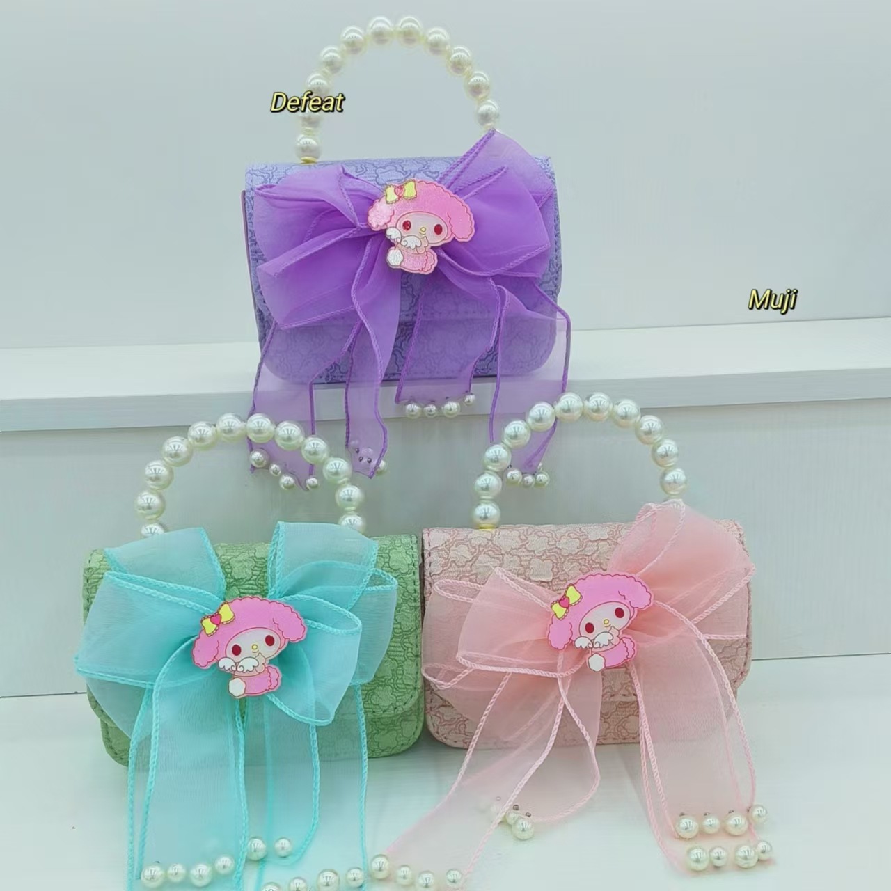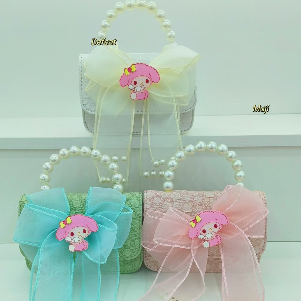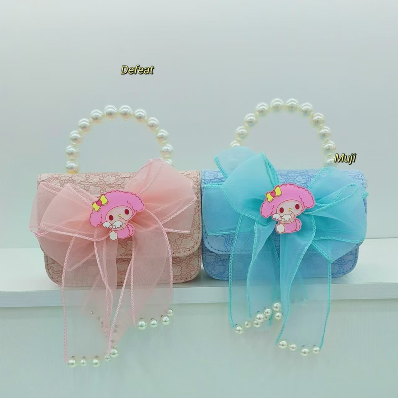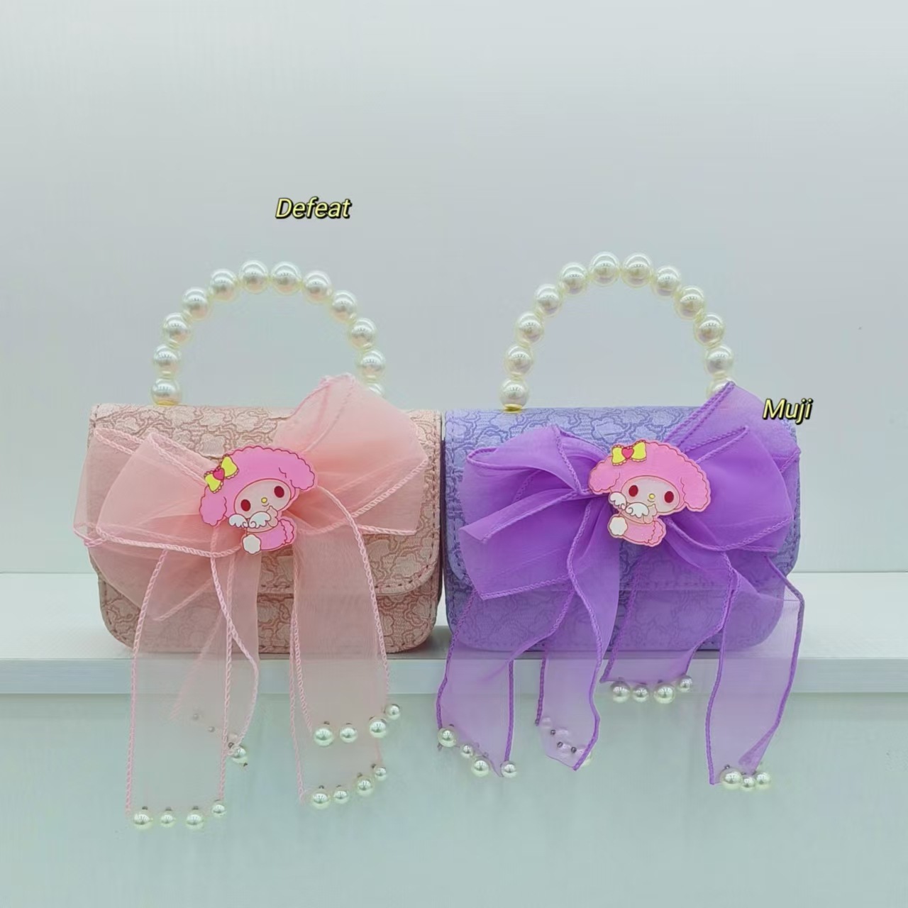 珍珠手提公主包美乐蒂斜挎零钱配饰包蝴蝶结女孩压岁钱包链条方包