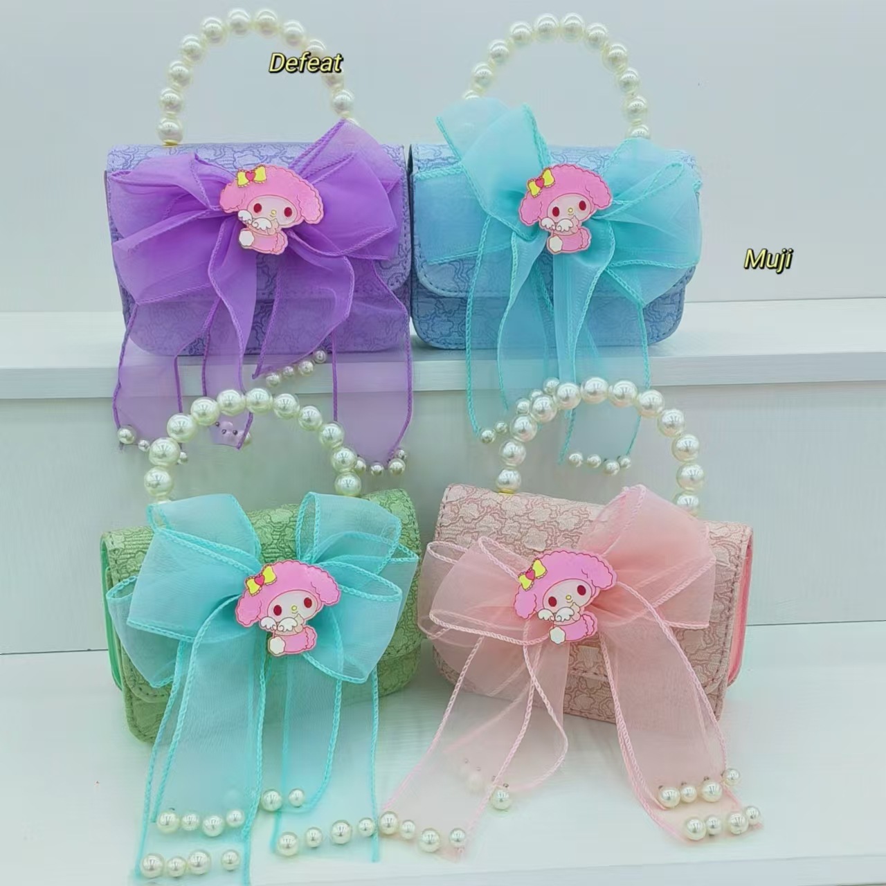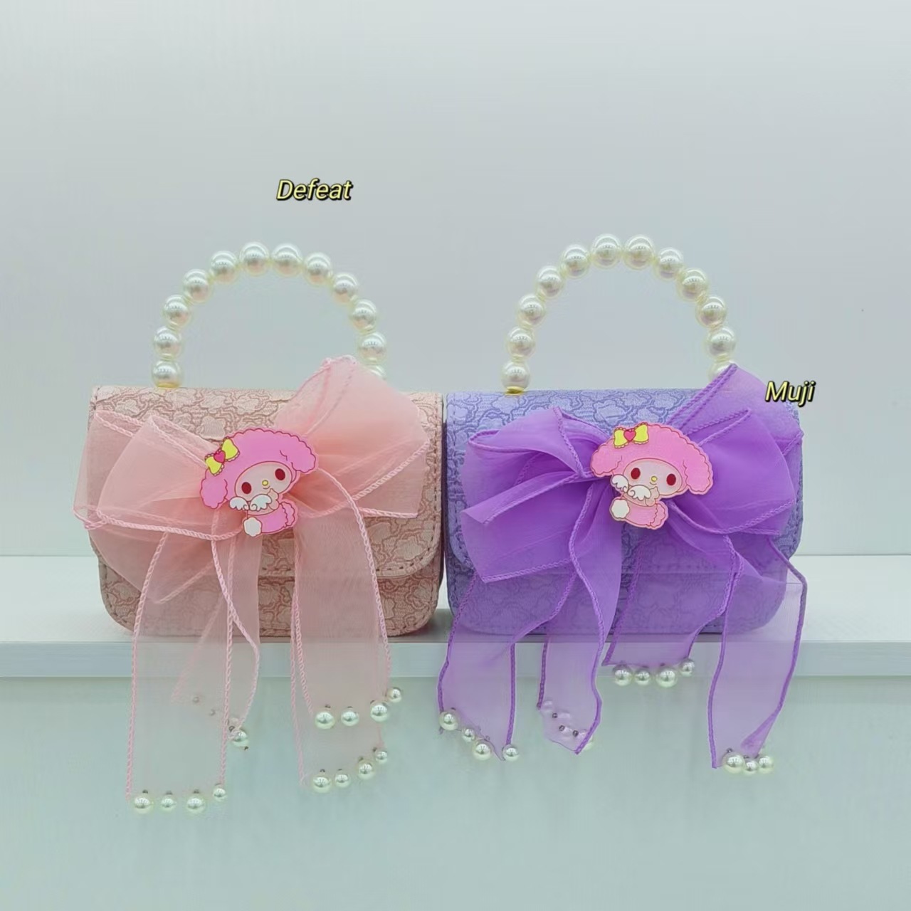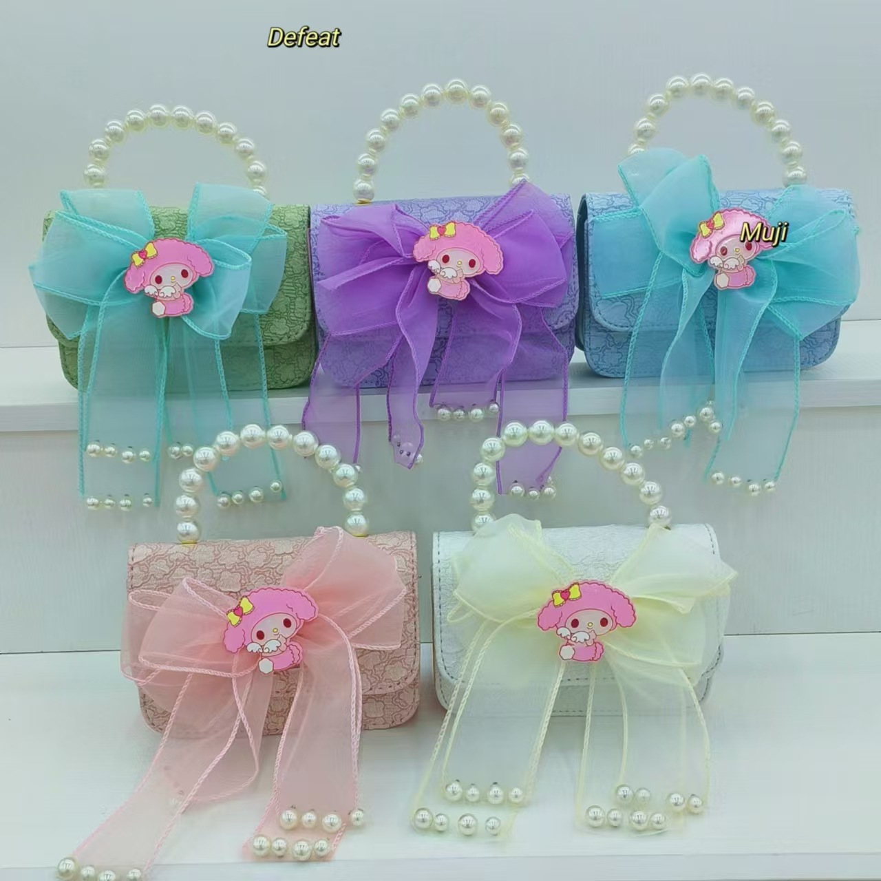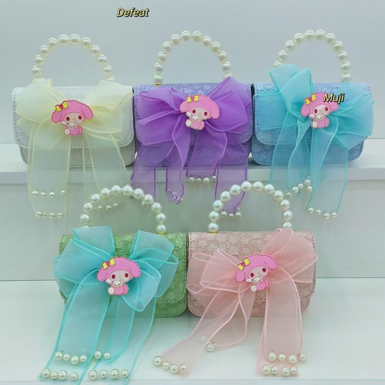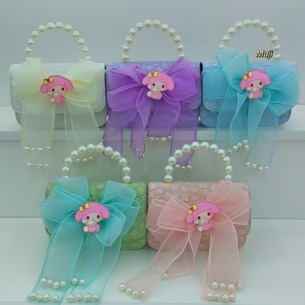 珍珠手提公主包美乐蒂斜挎零钱配饰包蝴蝶结女孩压岁钱包链条方包