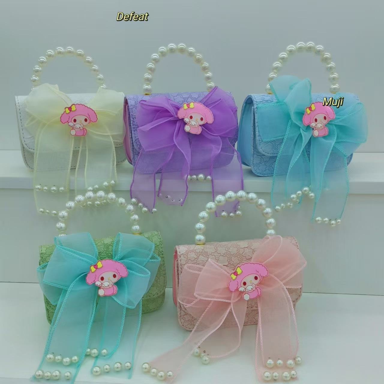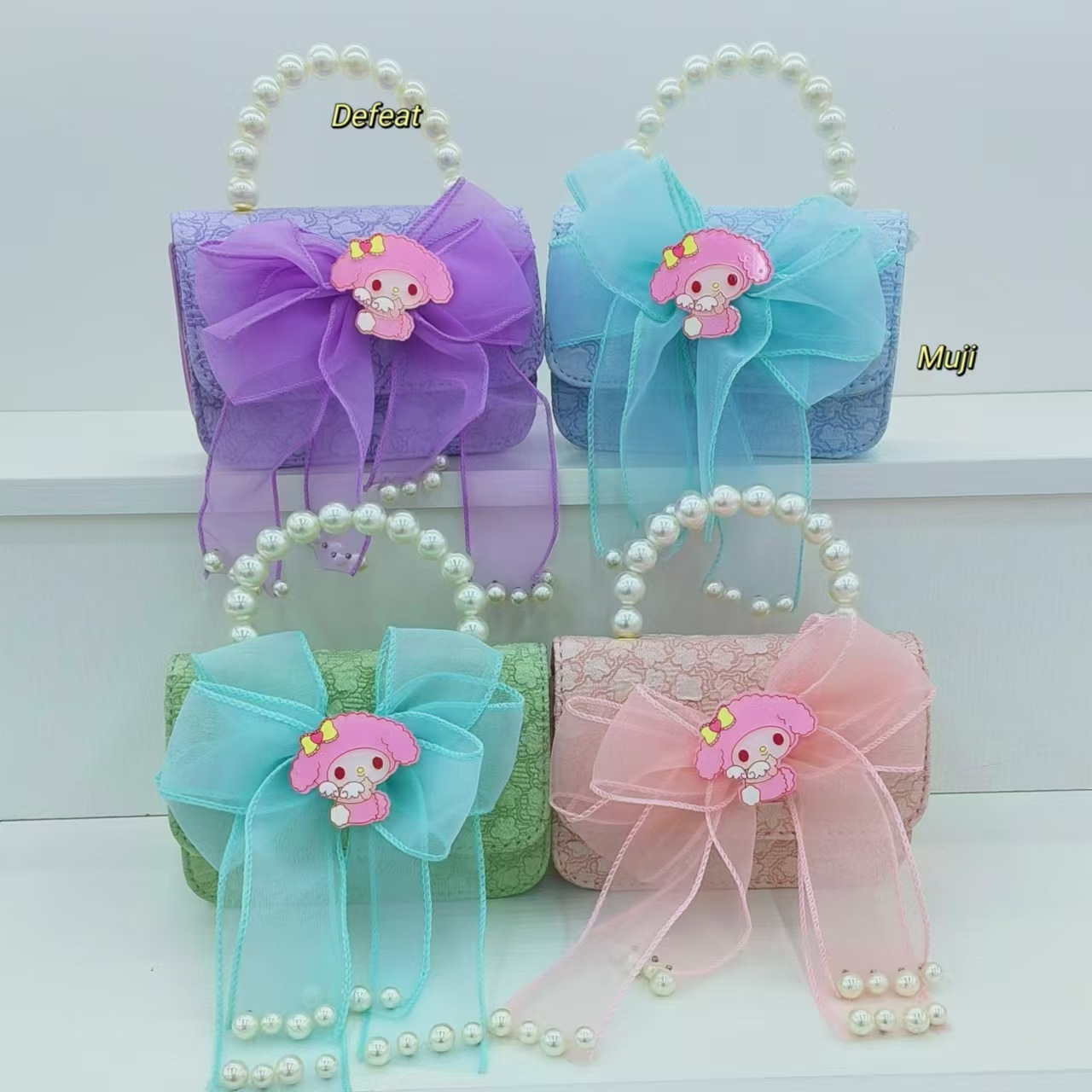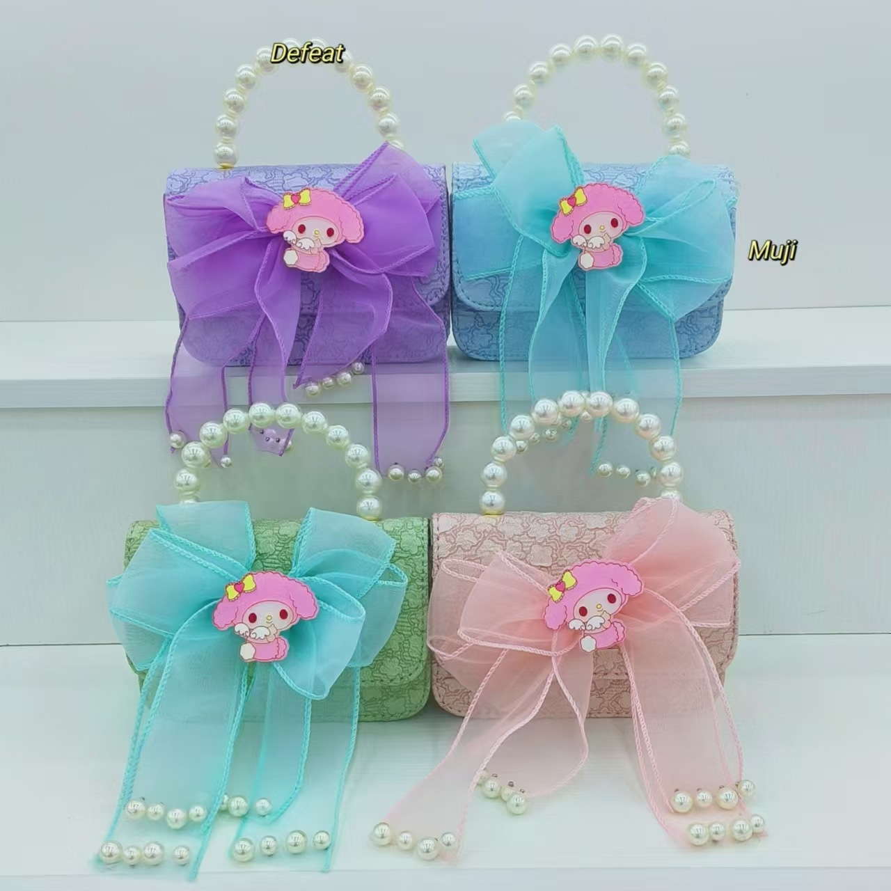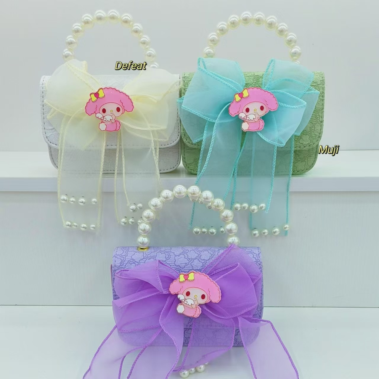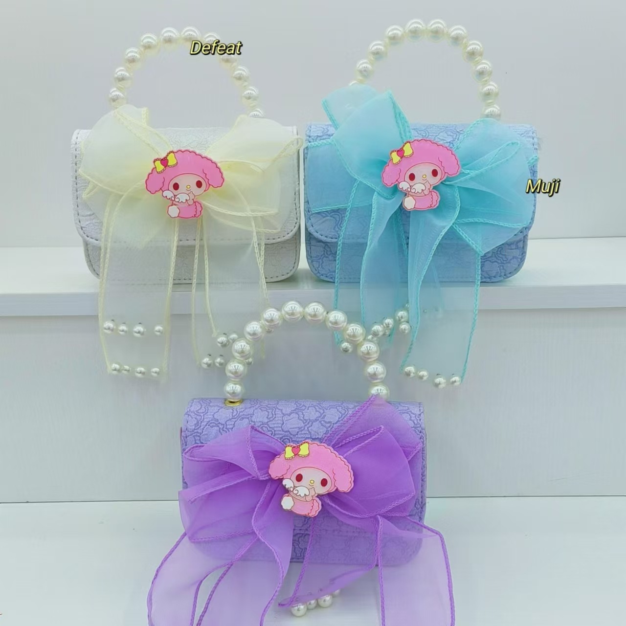 珍珠手提公主包美乐蒂斜挎零钱配饰包蝴蝶结女孩压岁钱包链条方包