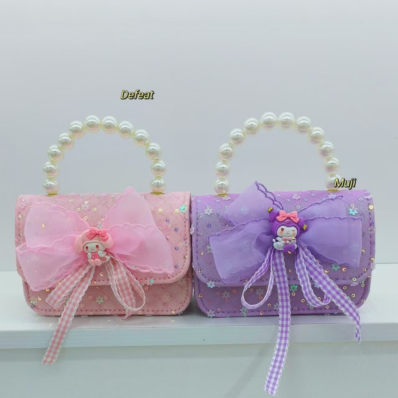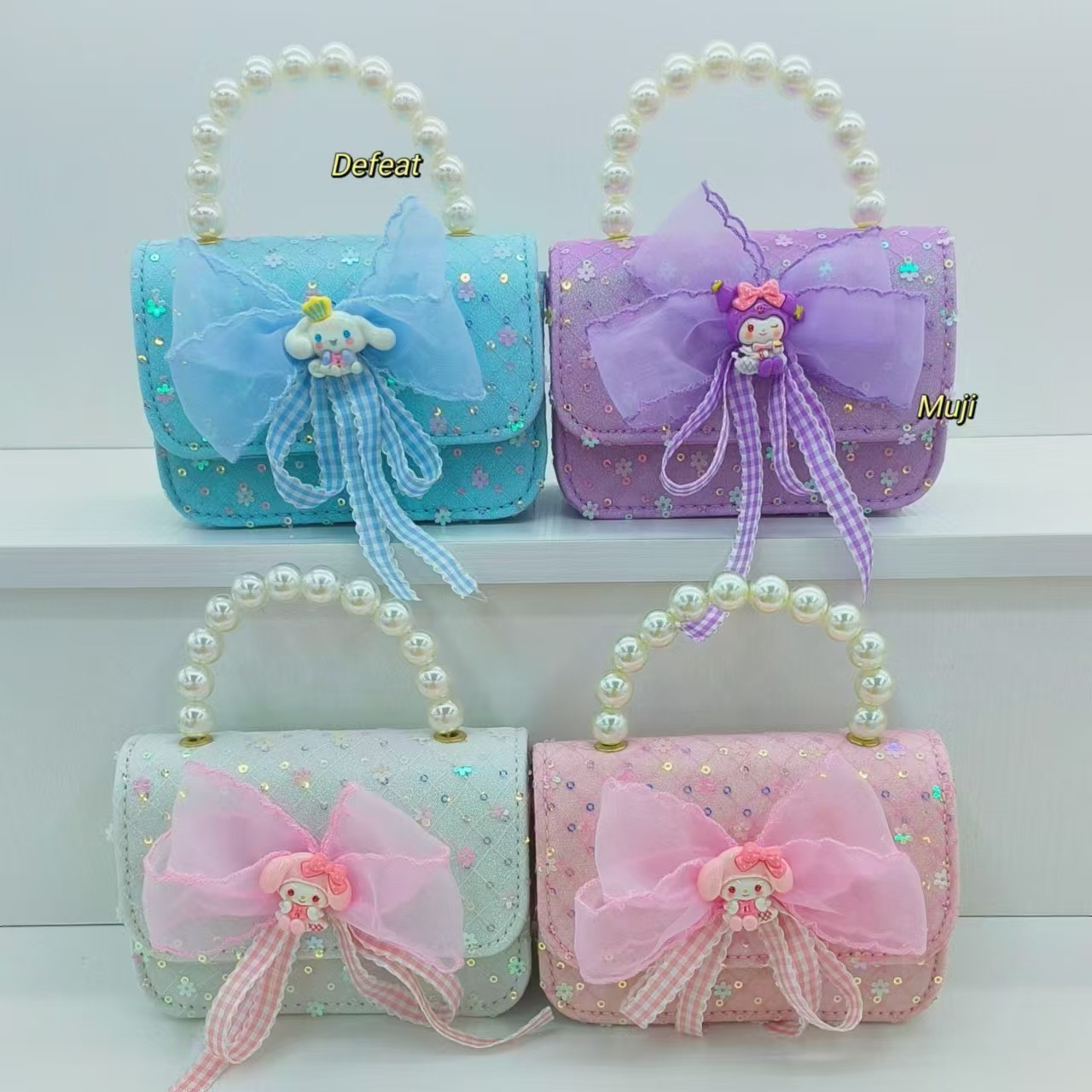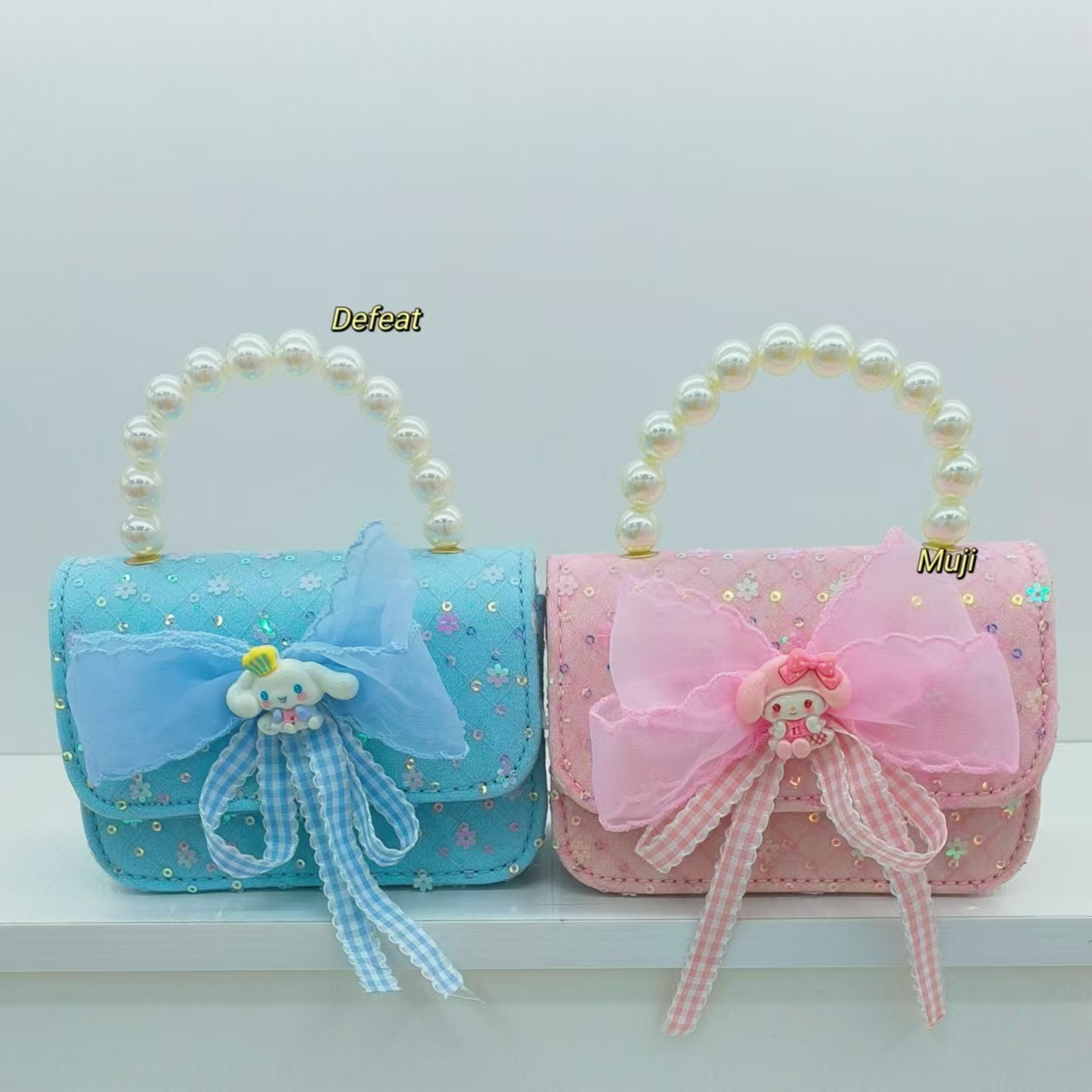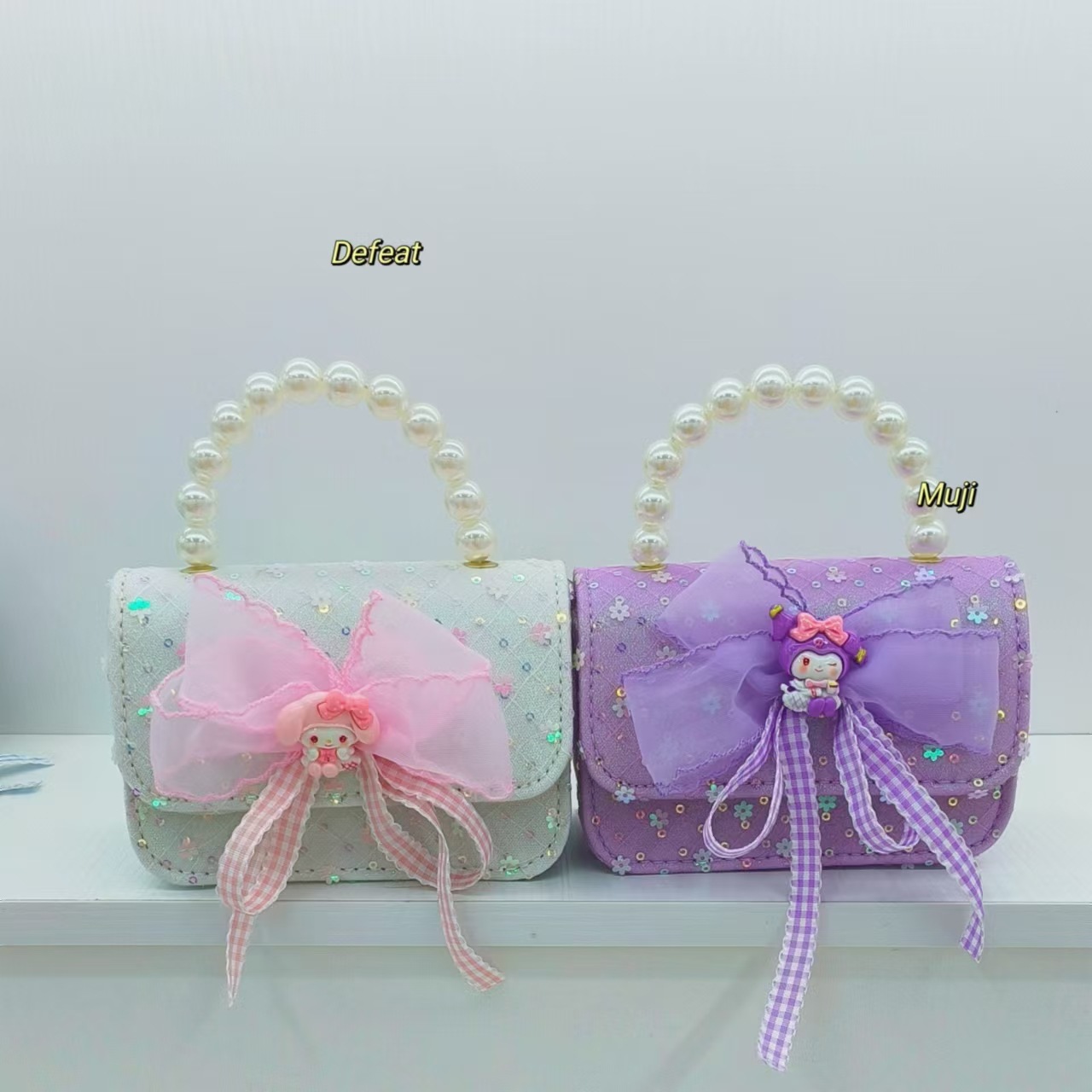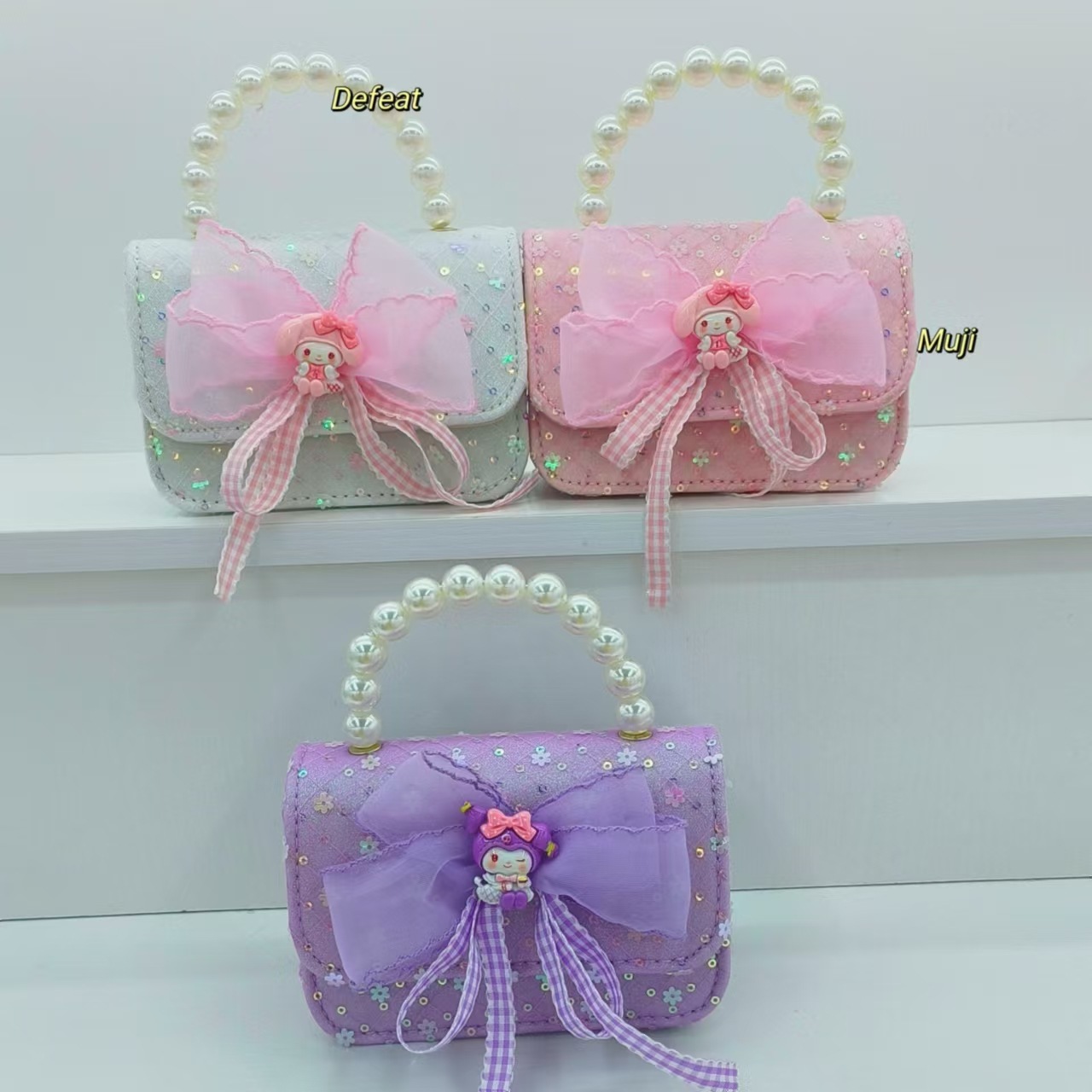 珍珠手提包斜挎配饰包美乐蒂库洛米儿童公主包女孩压岁钱包小方包