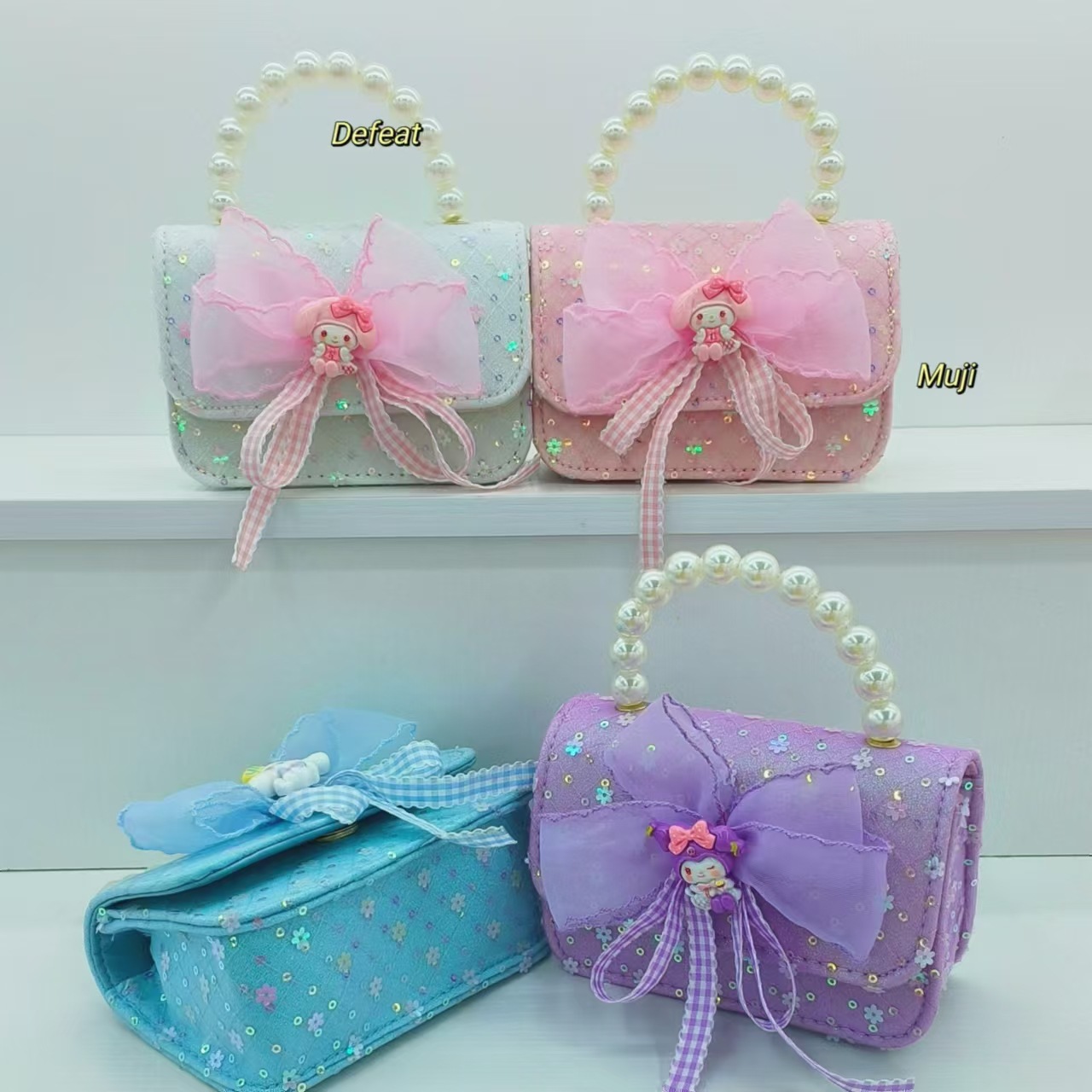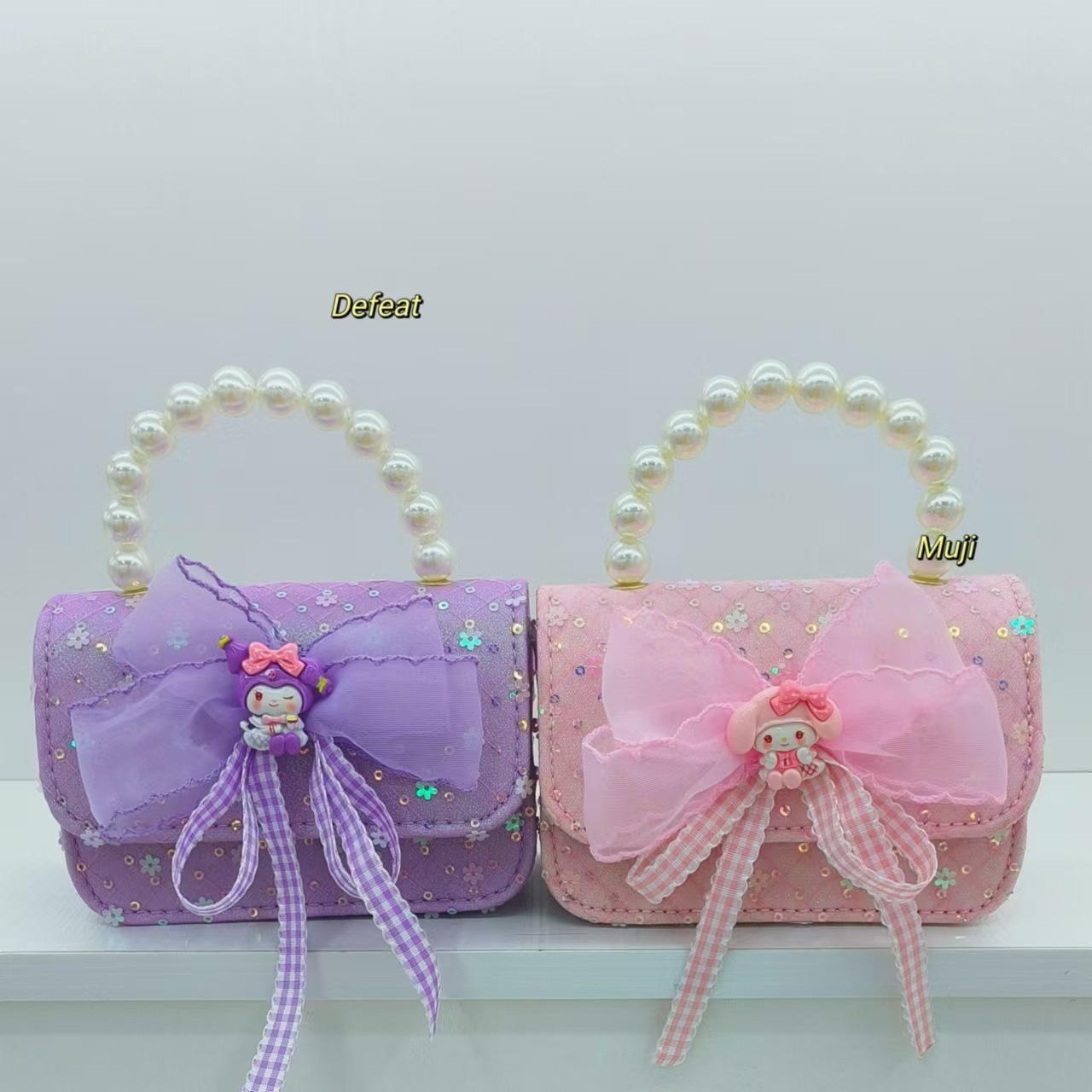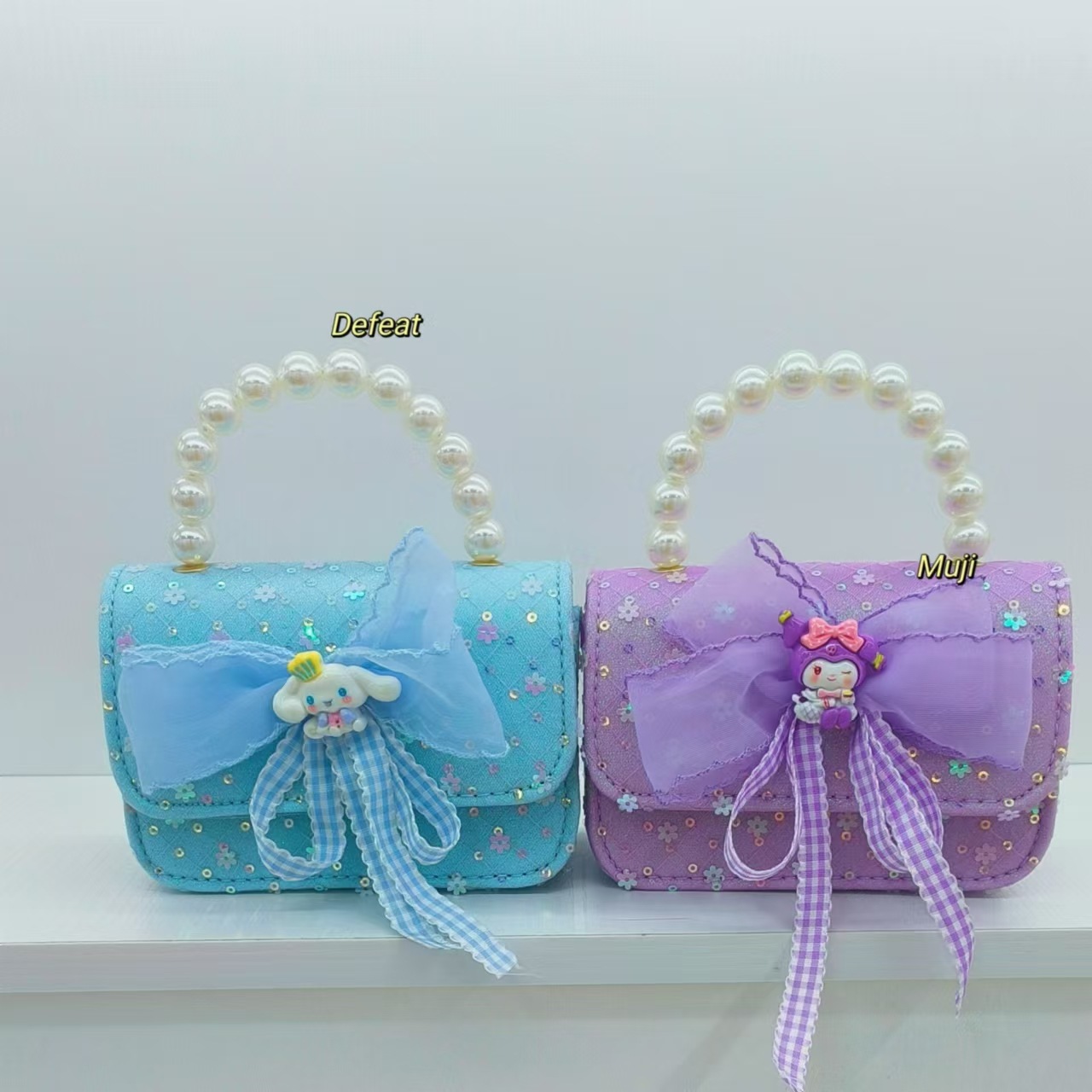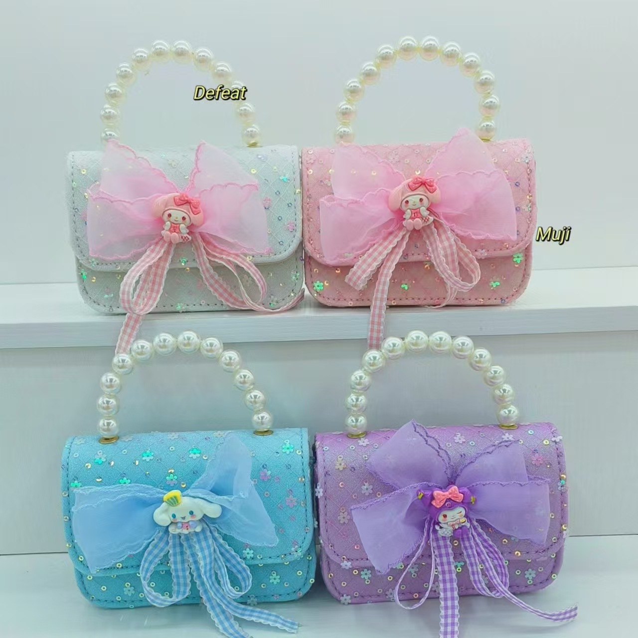 珍珠手提包斜挎配饰包美乐蒂库洛米儿童公主包女孩压岁钱包小方包
