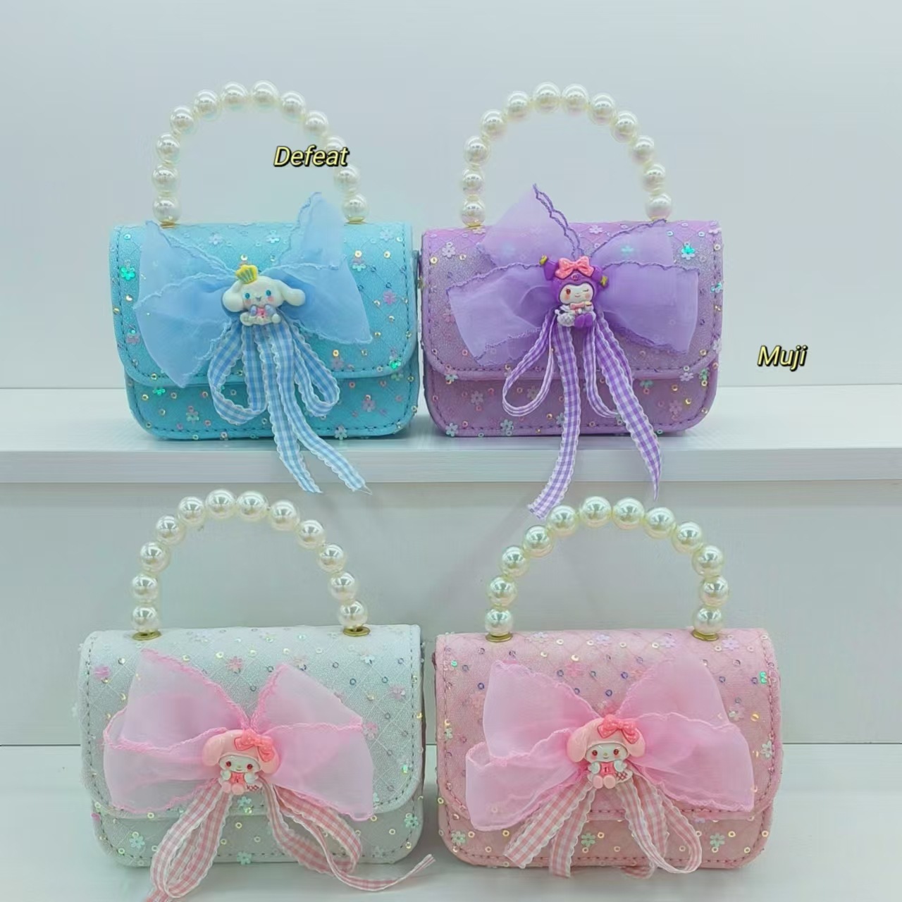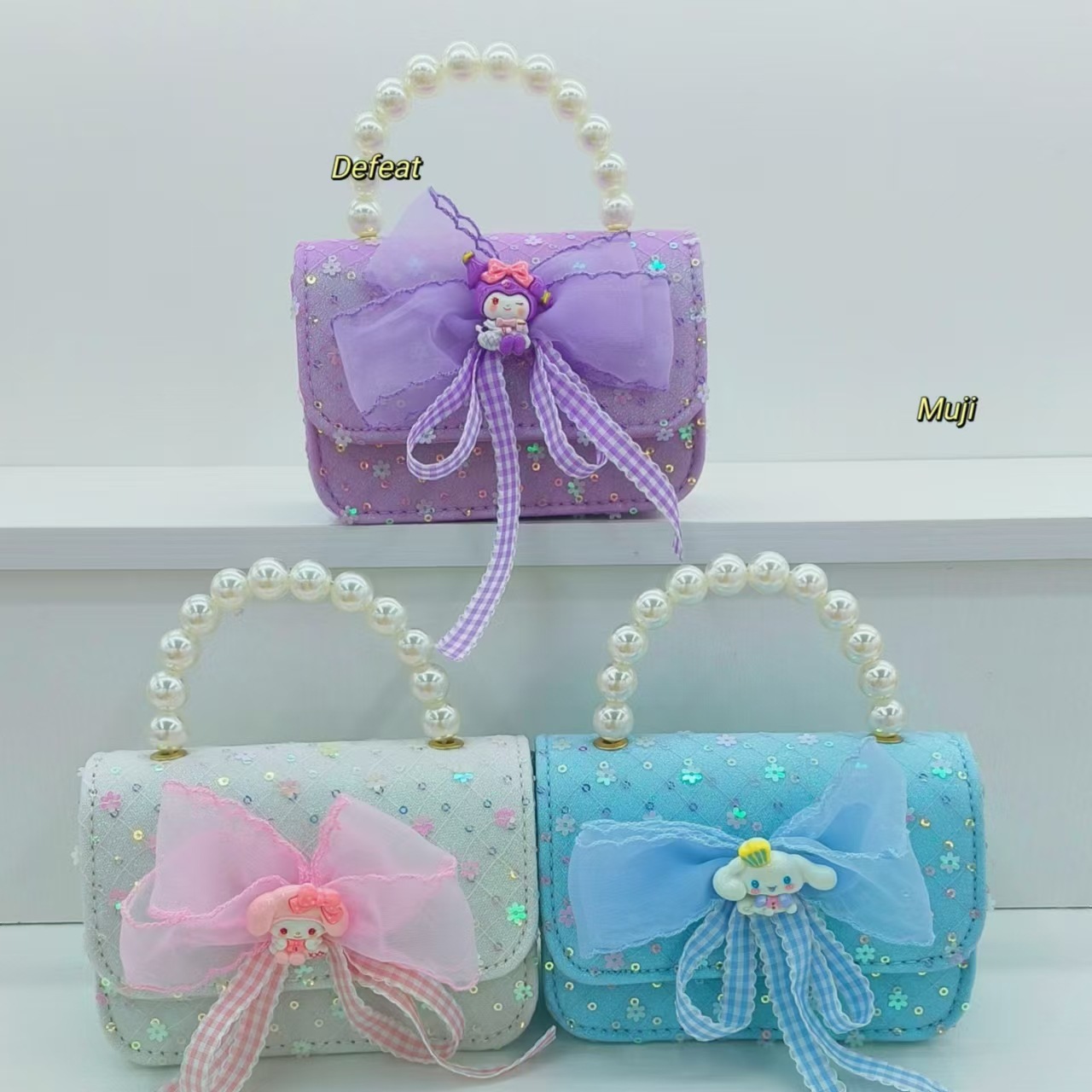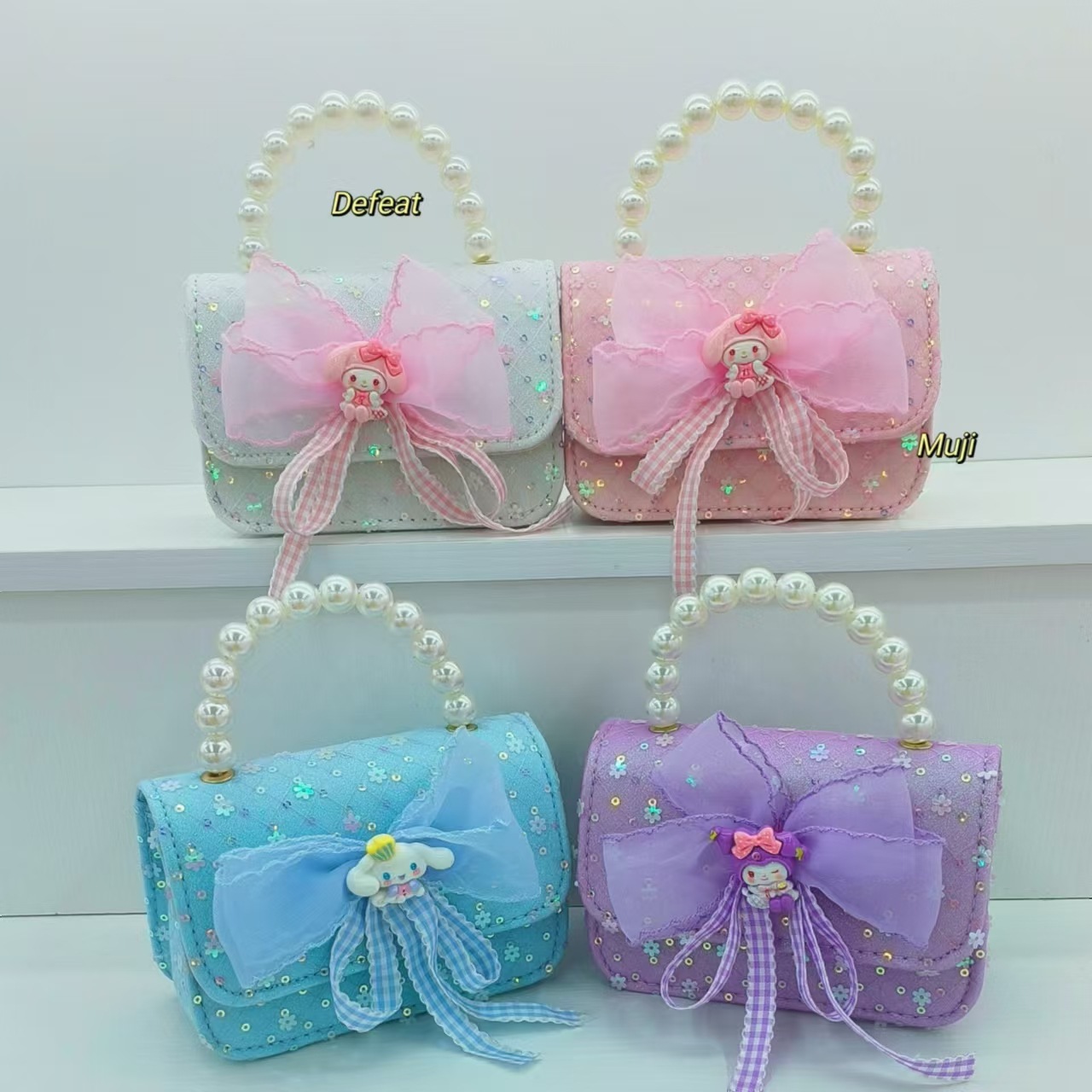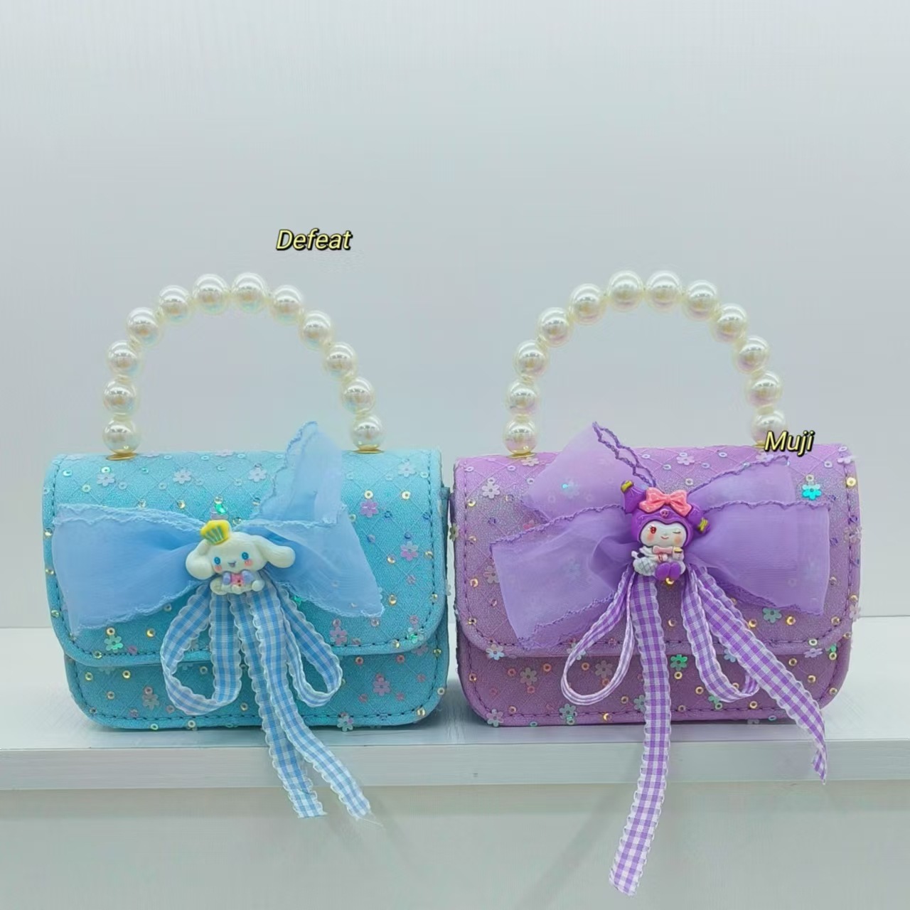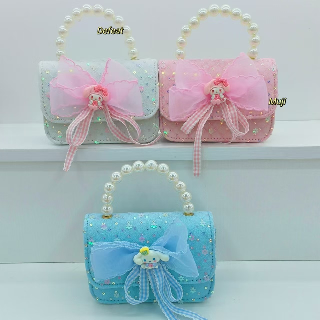 珍珠手提包斜挎配饰包美乐蒂库洛米儿童公主包女孩压岁钱包小方包