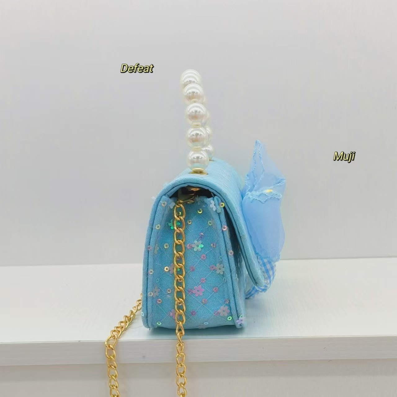 Bow Pearl Princess Handbag Meileti Kulomi Girl Año Nuevo Cartera pequeña bolsa de cadena de viento fragante