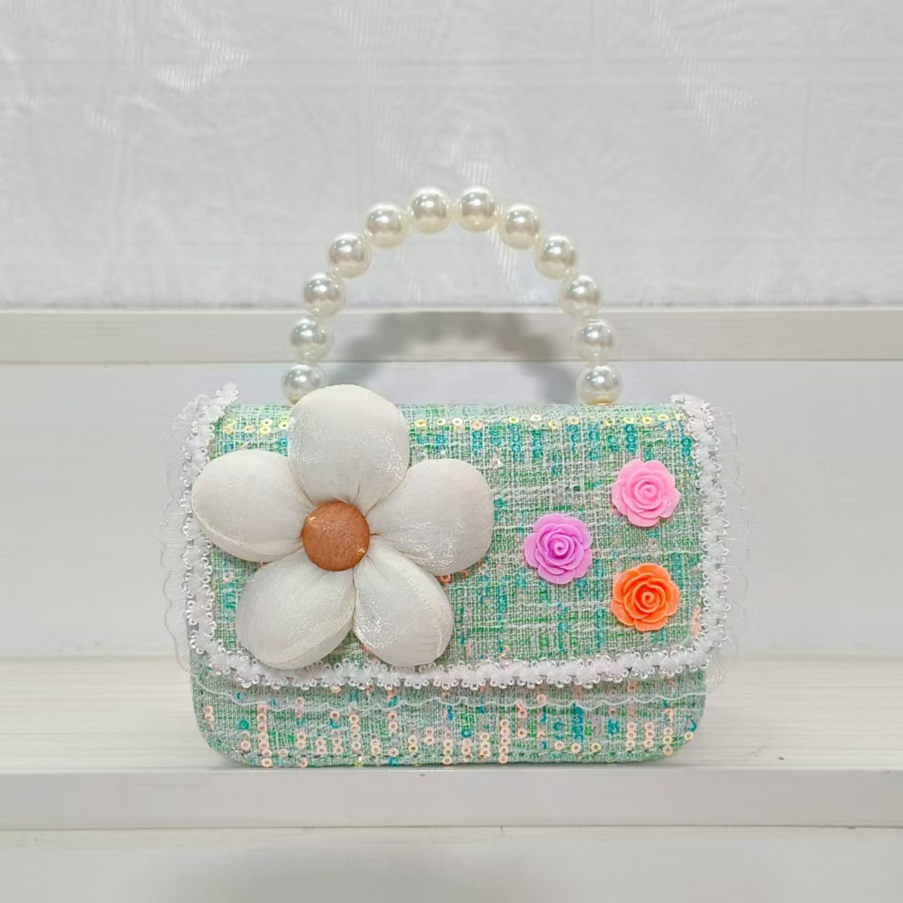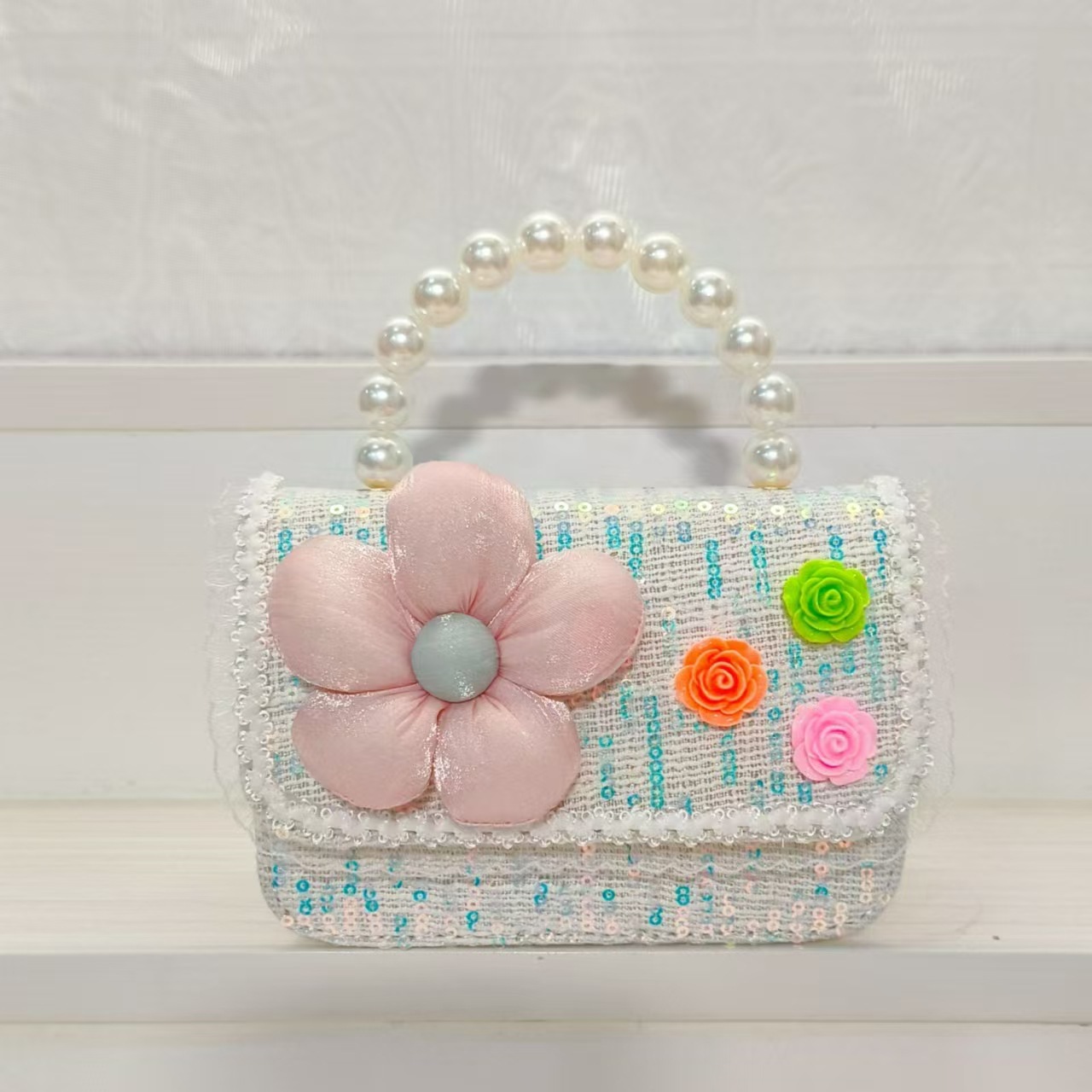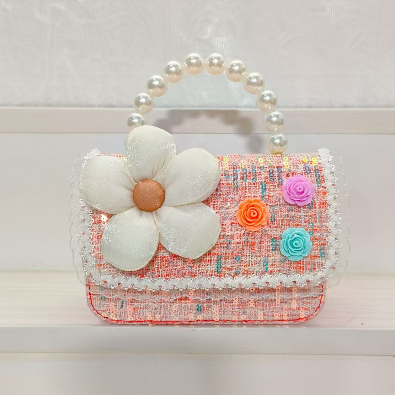 珍珠手提包公主包单肩斜挎包零钱配饰包小方包链条包女孩压岁钱包
