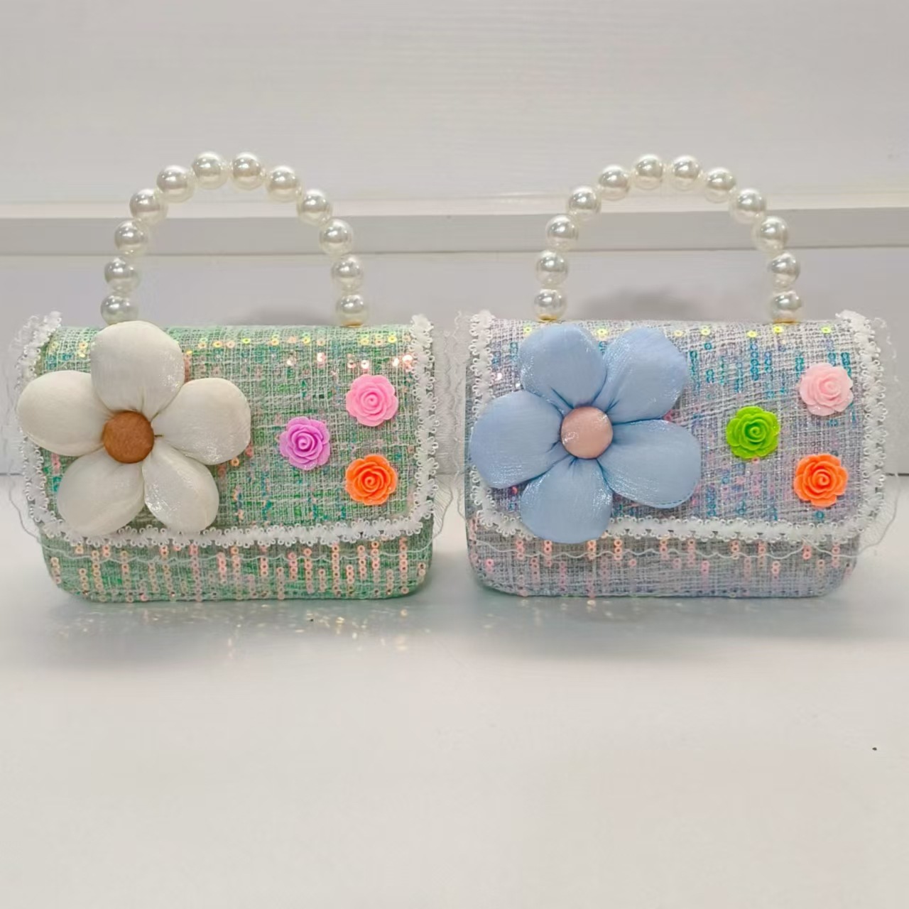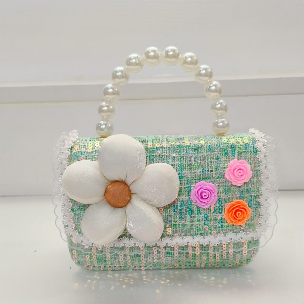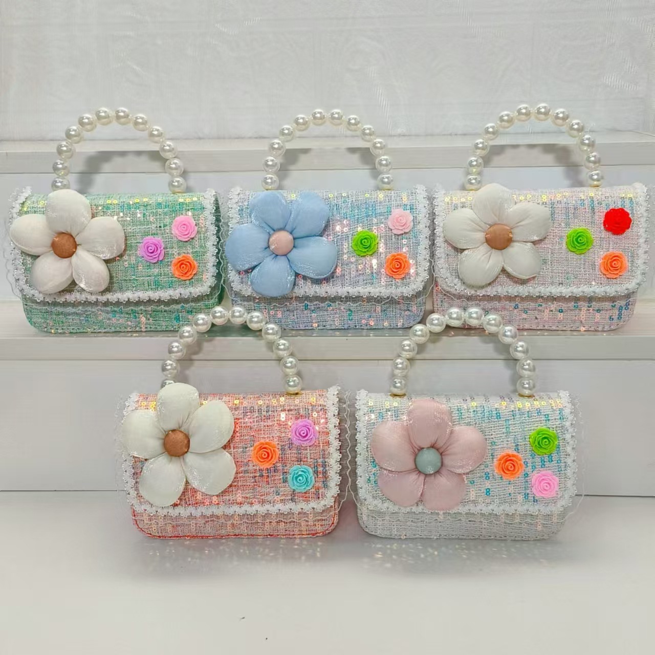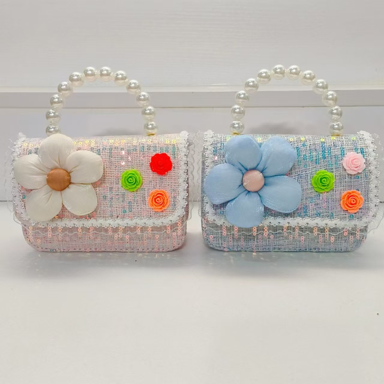 珍珠手提包公主包单肩斜挎包零钱配饰包小方包链条包女孩压岁钱包