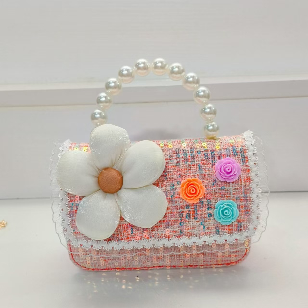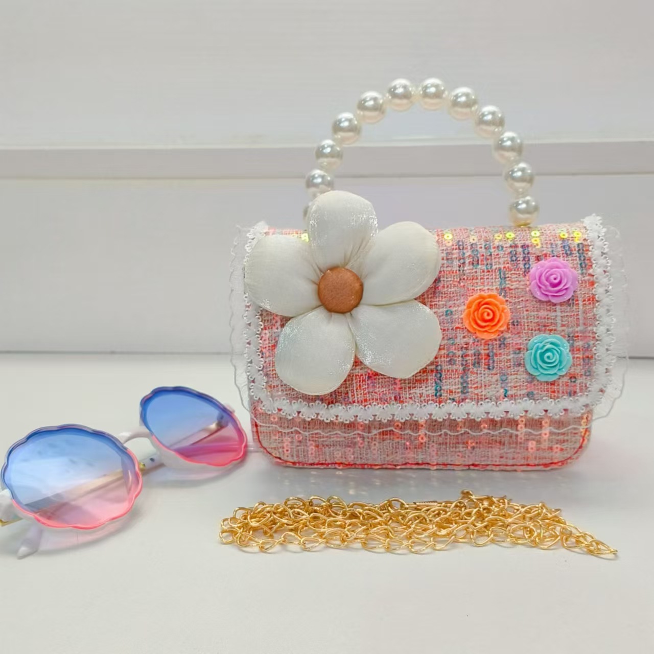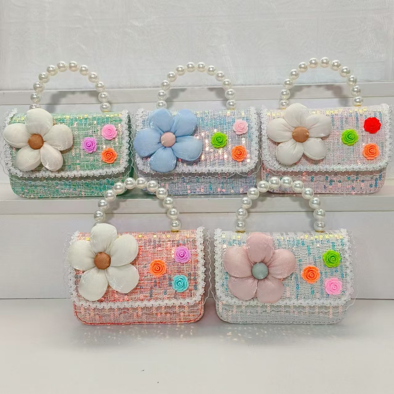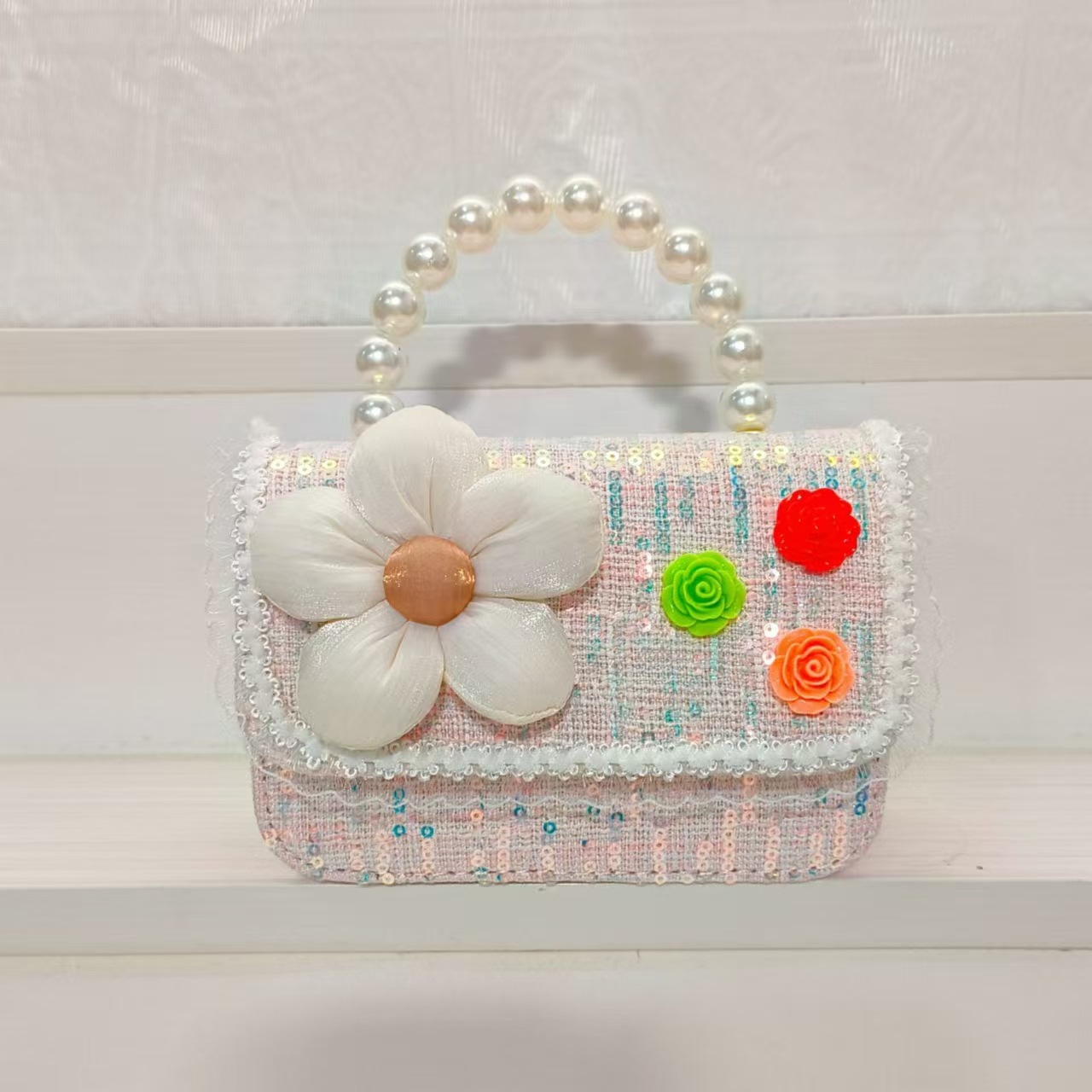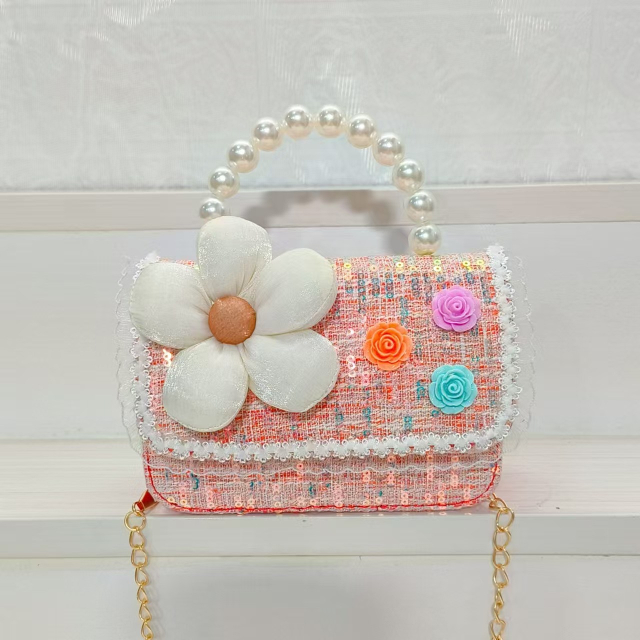 Bolso para niños 2024 nuevo lindos bolso de niña bolso accesorios de princesa de estilo extranjero bolso de cadena de perlas de fragancia