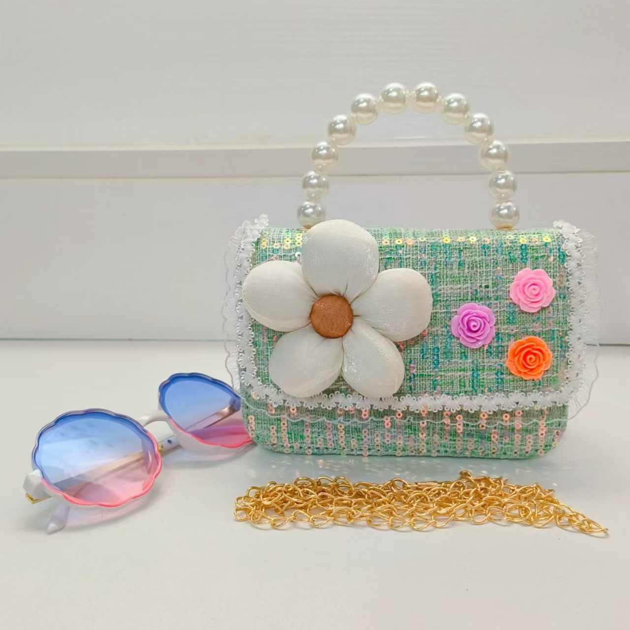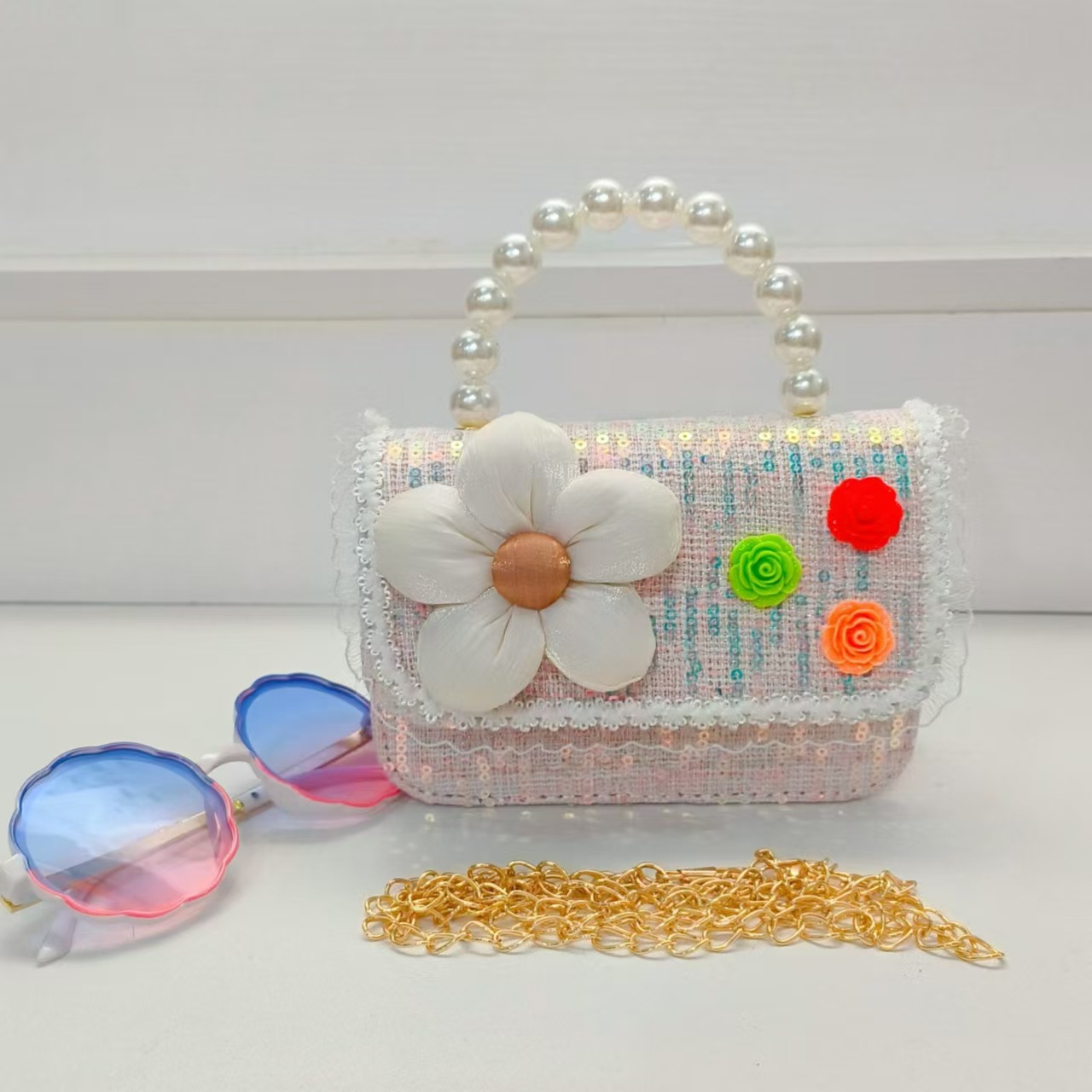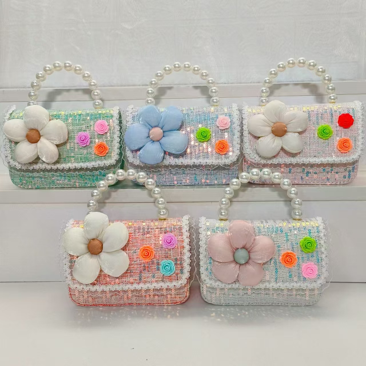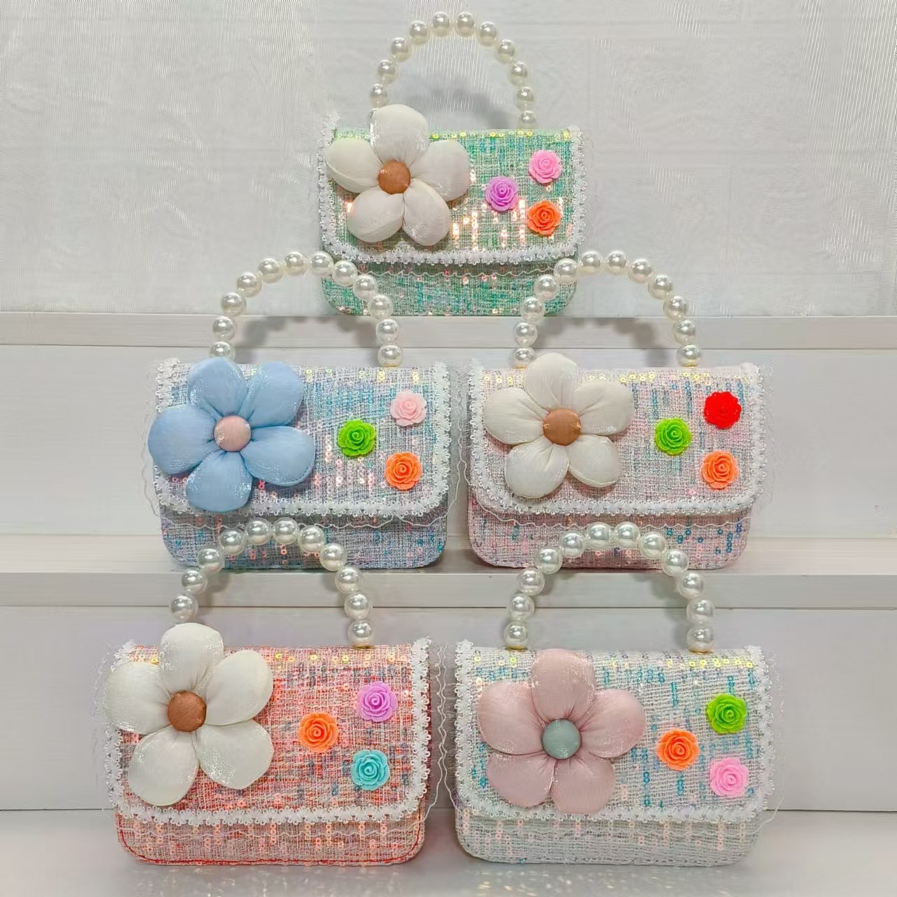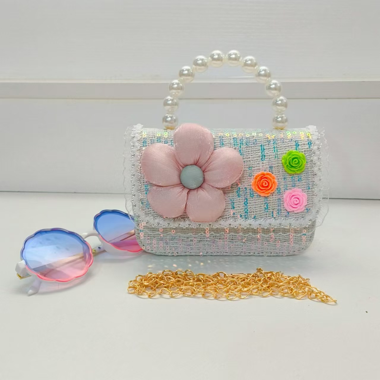 Bolso para niños 2024 nuevo lindos bolso de niña bolso accesorios de princesa de estilo extranjero bolso de cadena de perlas de fragancia