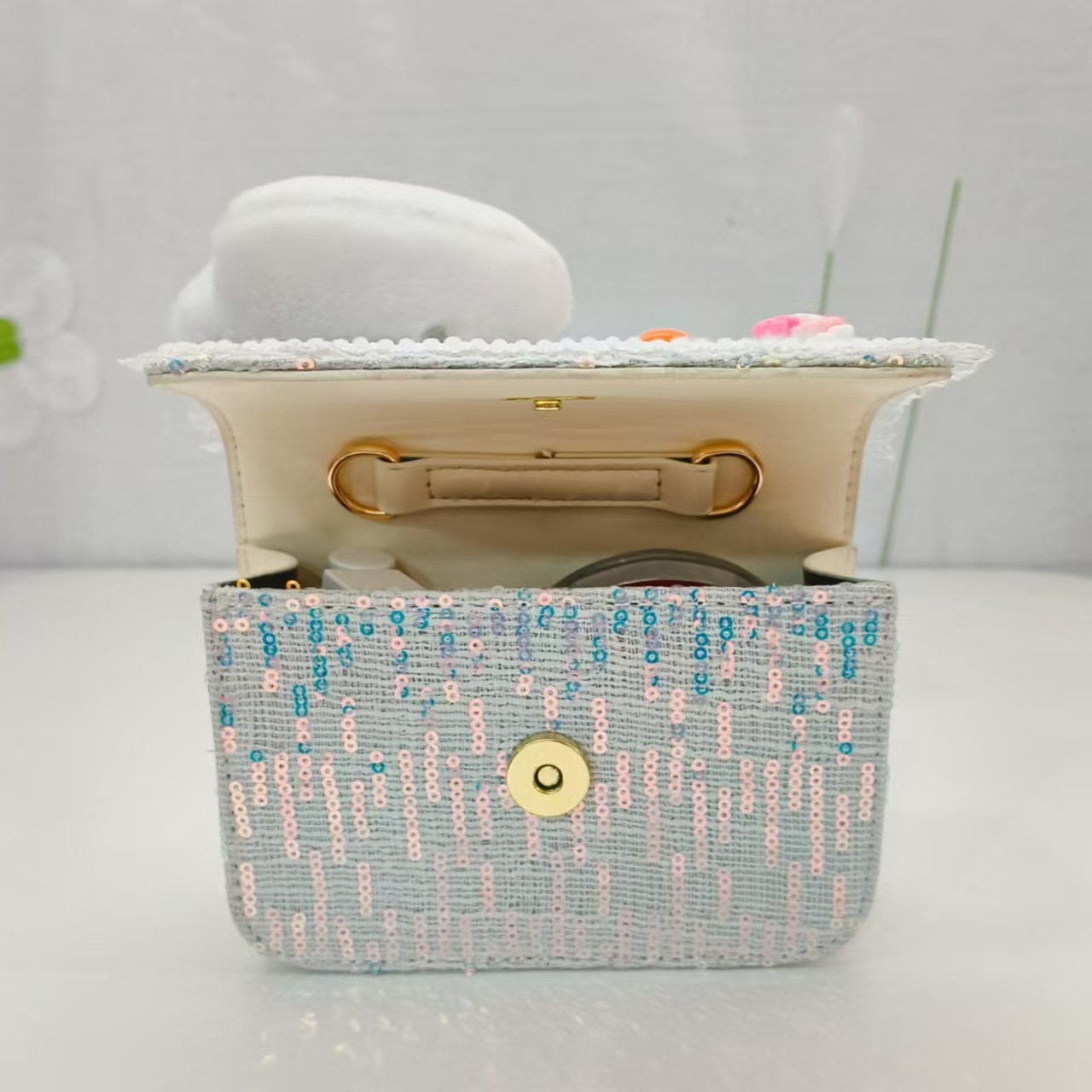 Bolso de moda infantil de perlas de sequilla primavera y verano nuevo mini bolso de cambio ropa infantil con mochila de princesa
