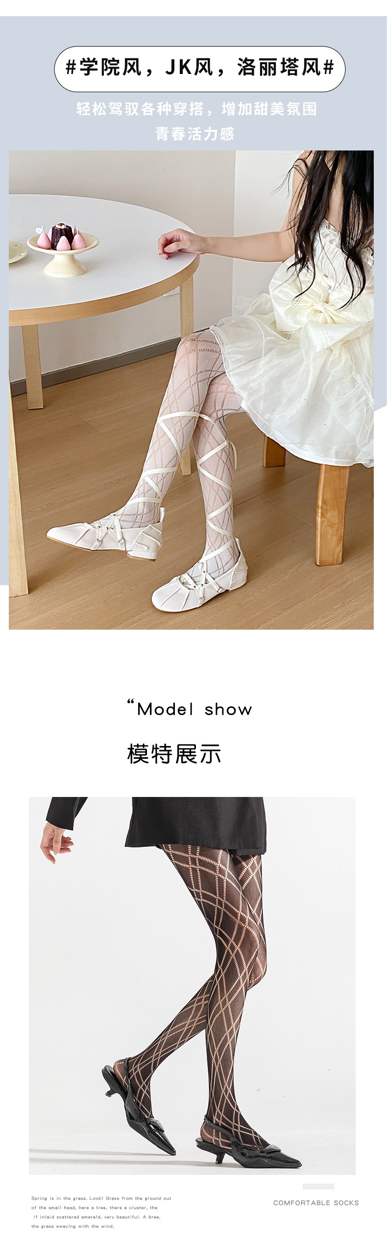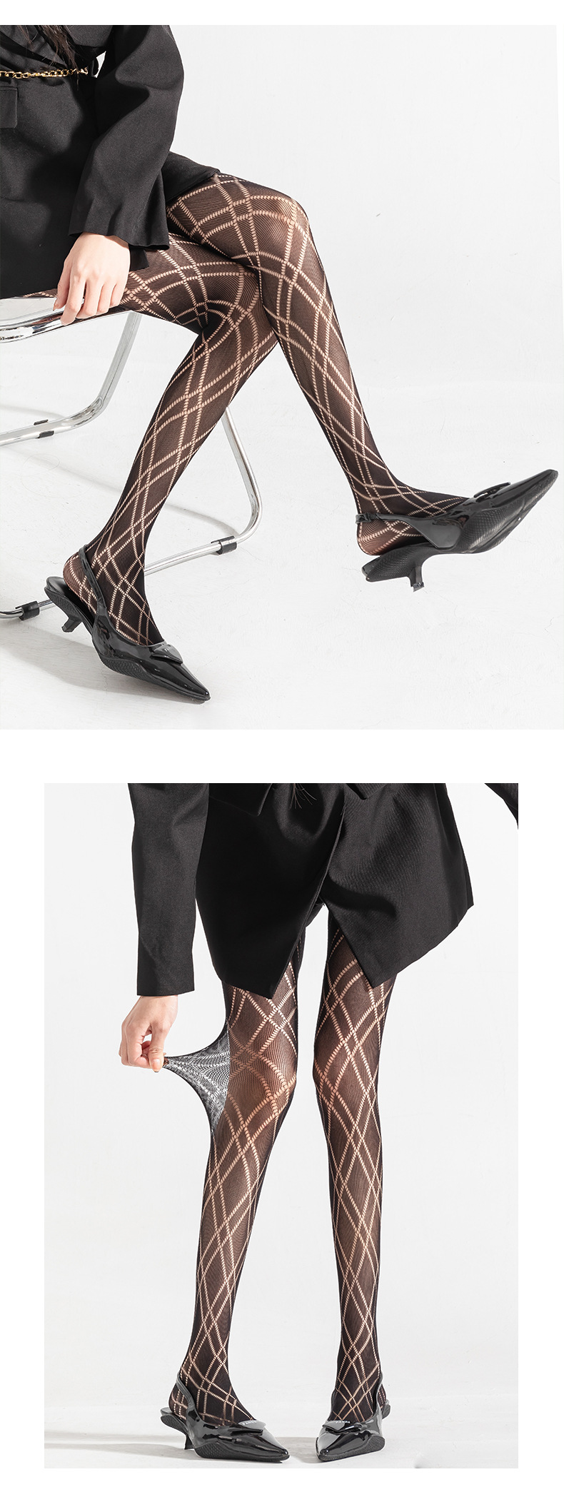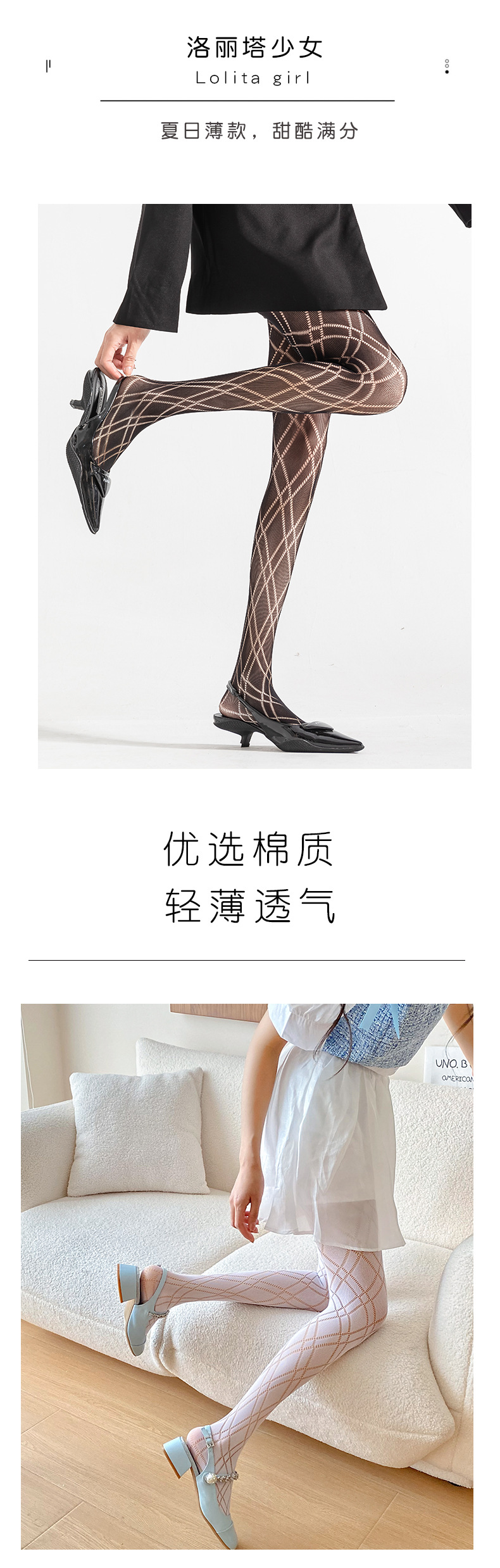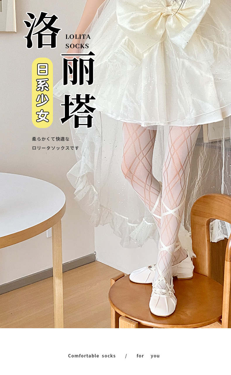 Medias de tela escocesa en forma de diamante blanco pantimedias de seda negra delgada para mujer Lolita pure deseo estilo pantyhose pierna-formando bottoming fishnet calcetines