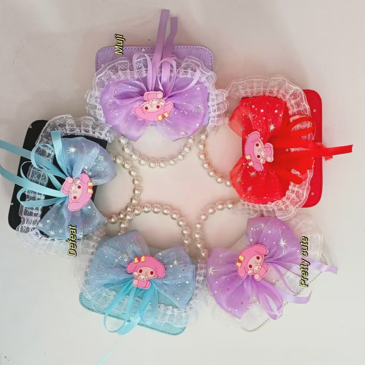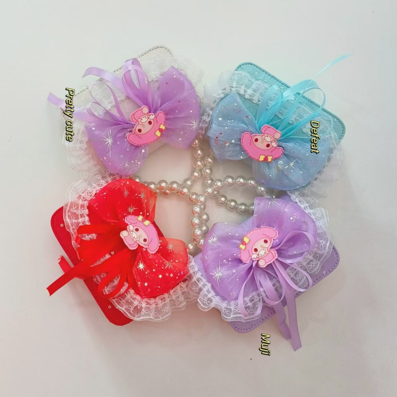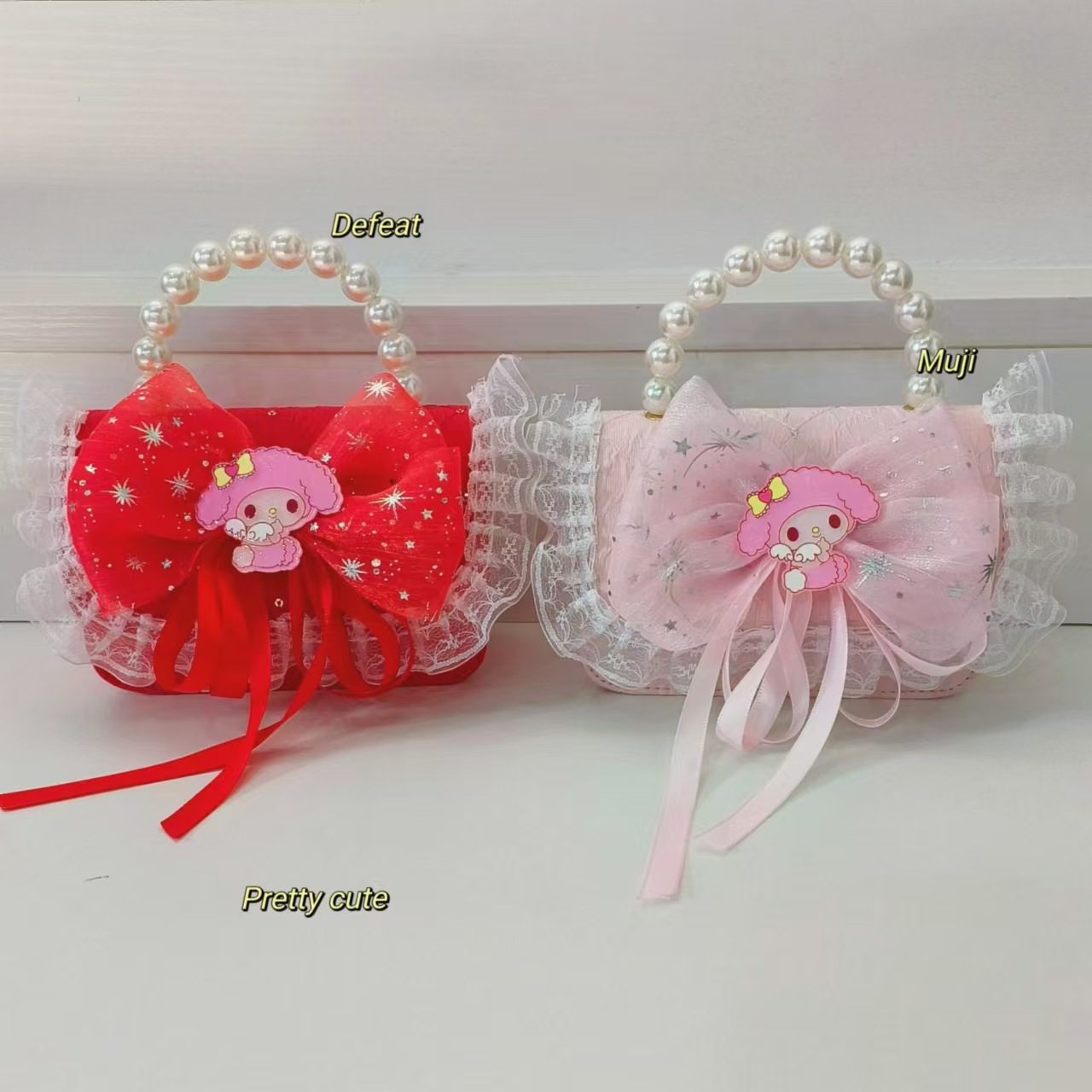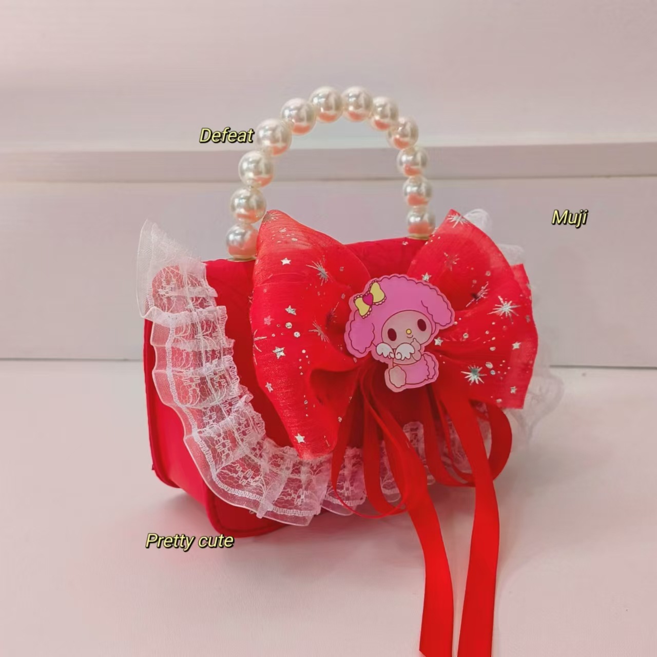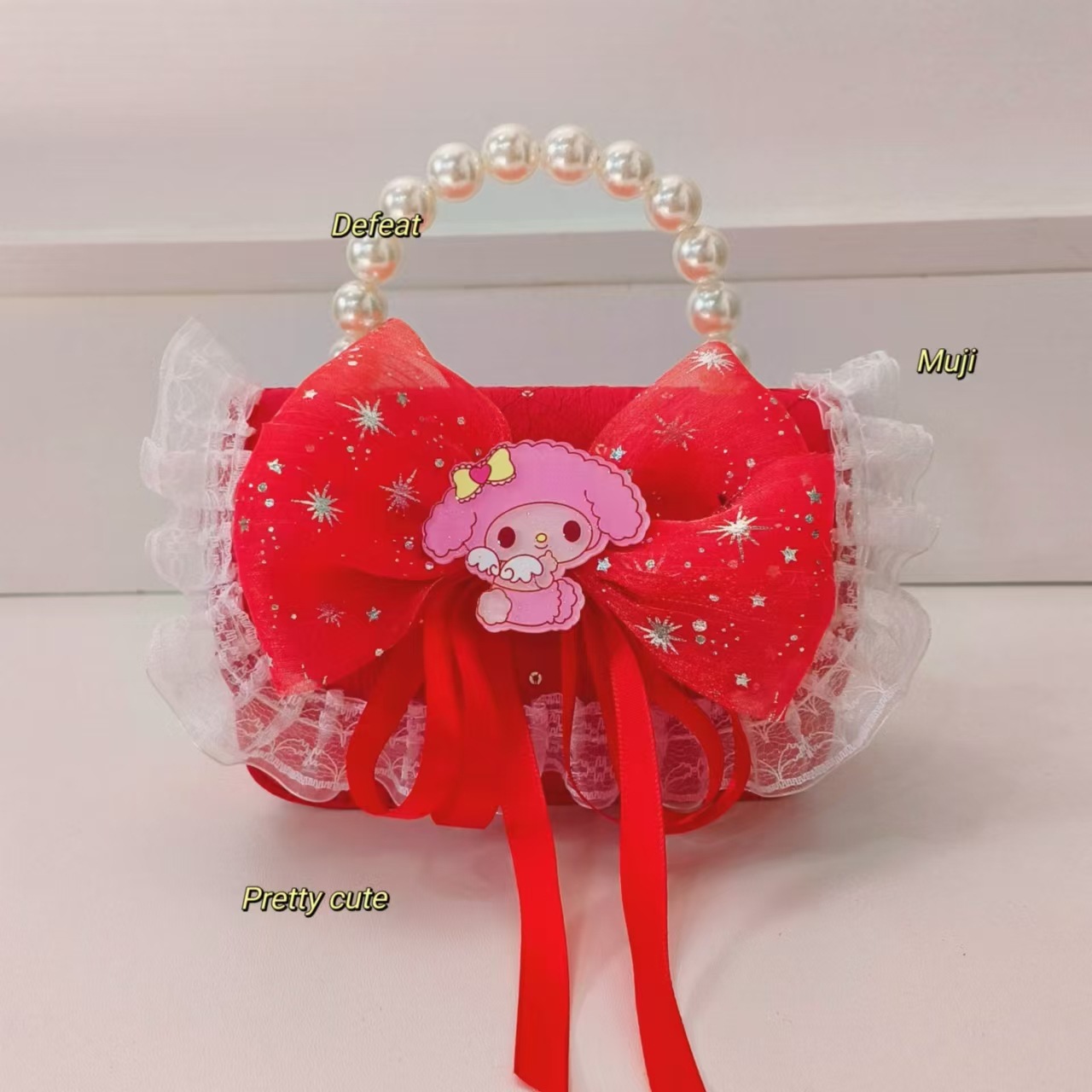 Bolso de perlas, bolso de princesa, bolso de cambio para chicas, bolso de hombro para niños, bolso de dibujos animados Melody, bolso de encaje de arco, bolso de accesorios de Año Nuevo rojo