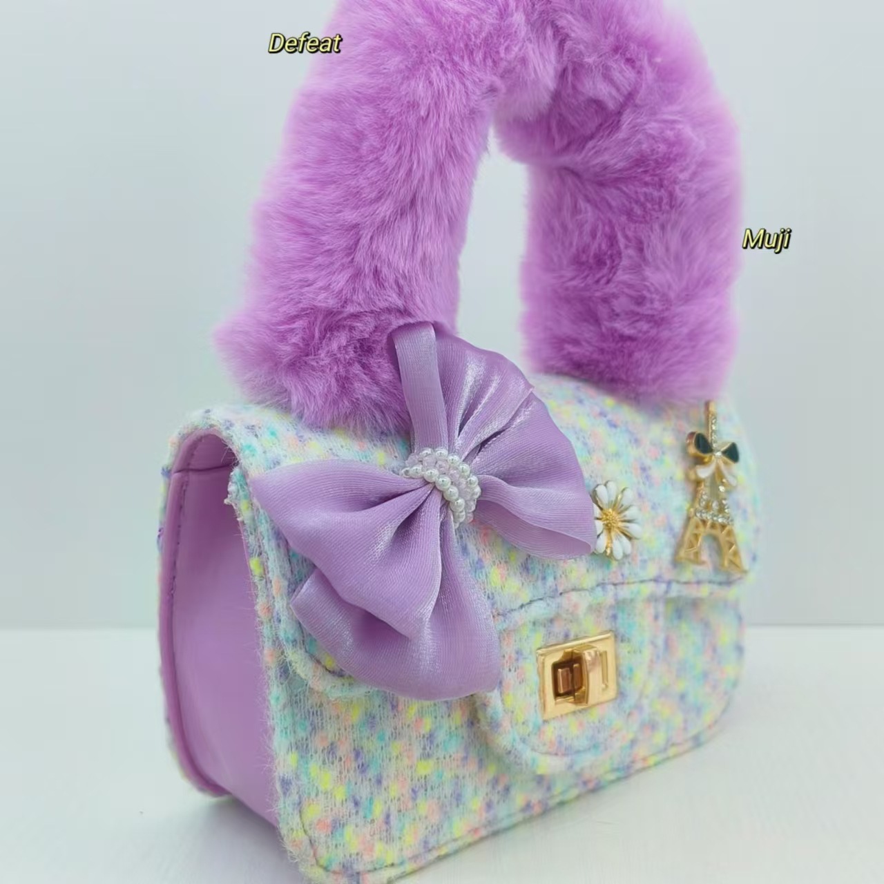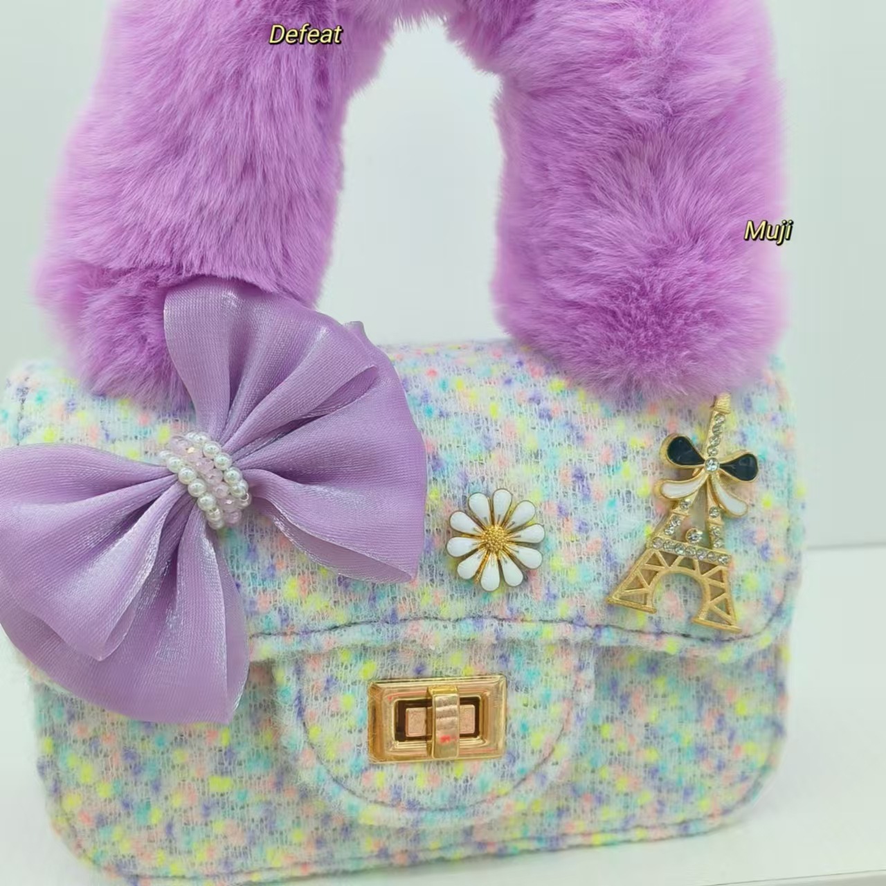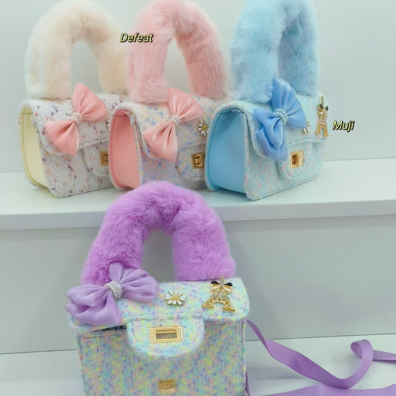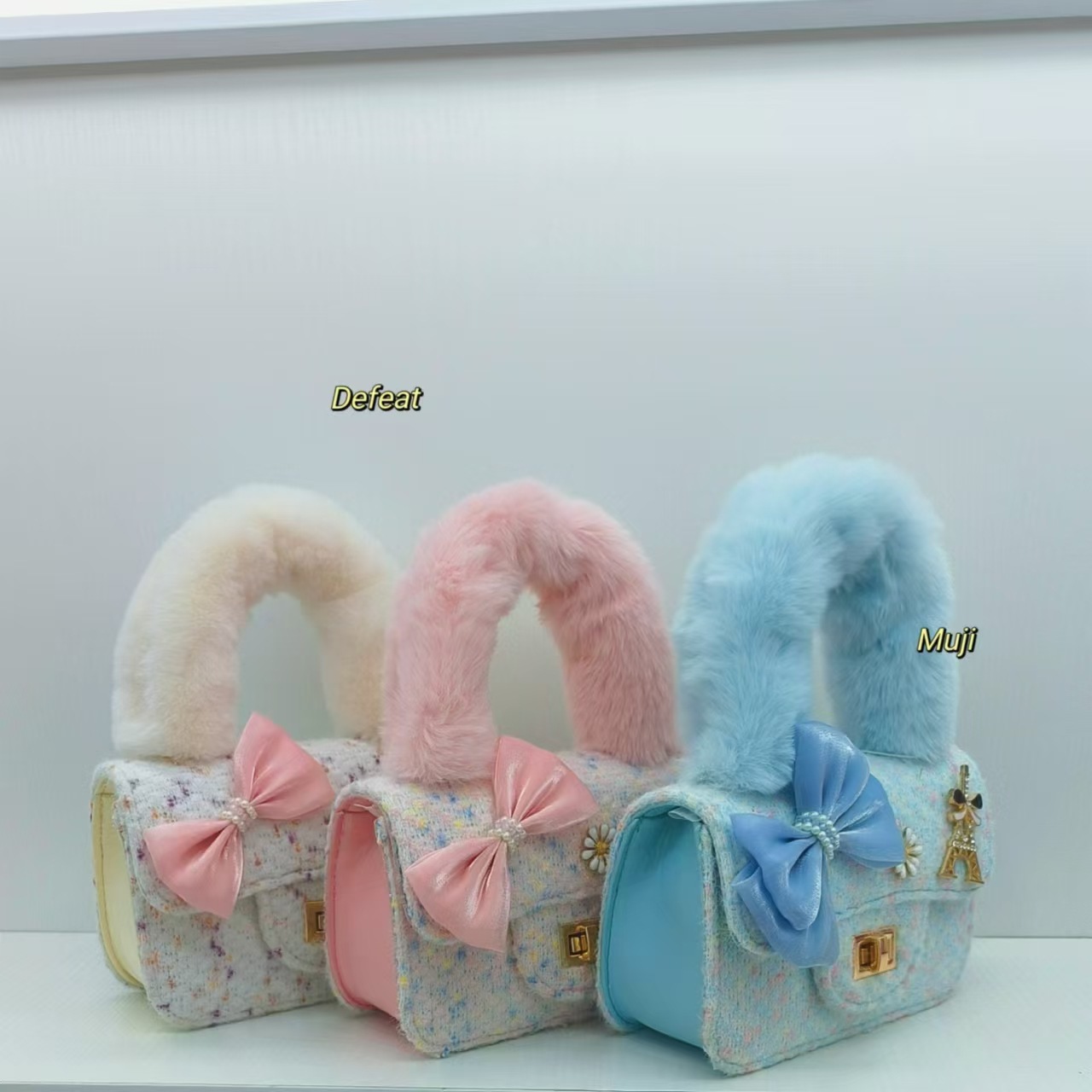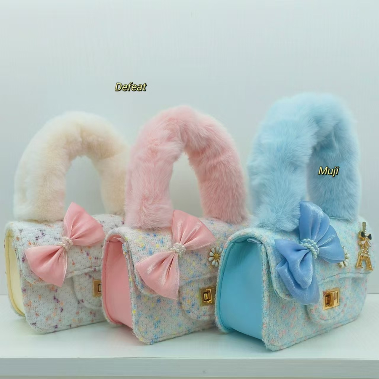 毛绒手提包蝴蝶结时尚单肩包小女孩洋气斜挎包小方包零钱包配饰包