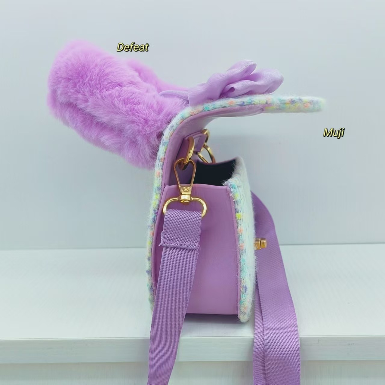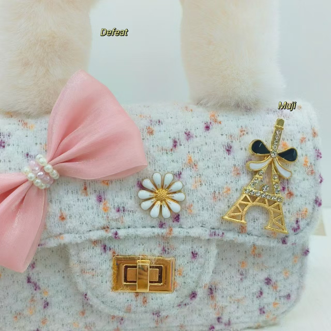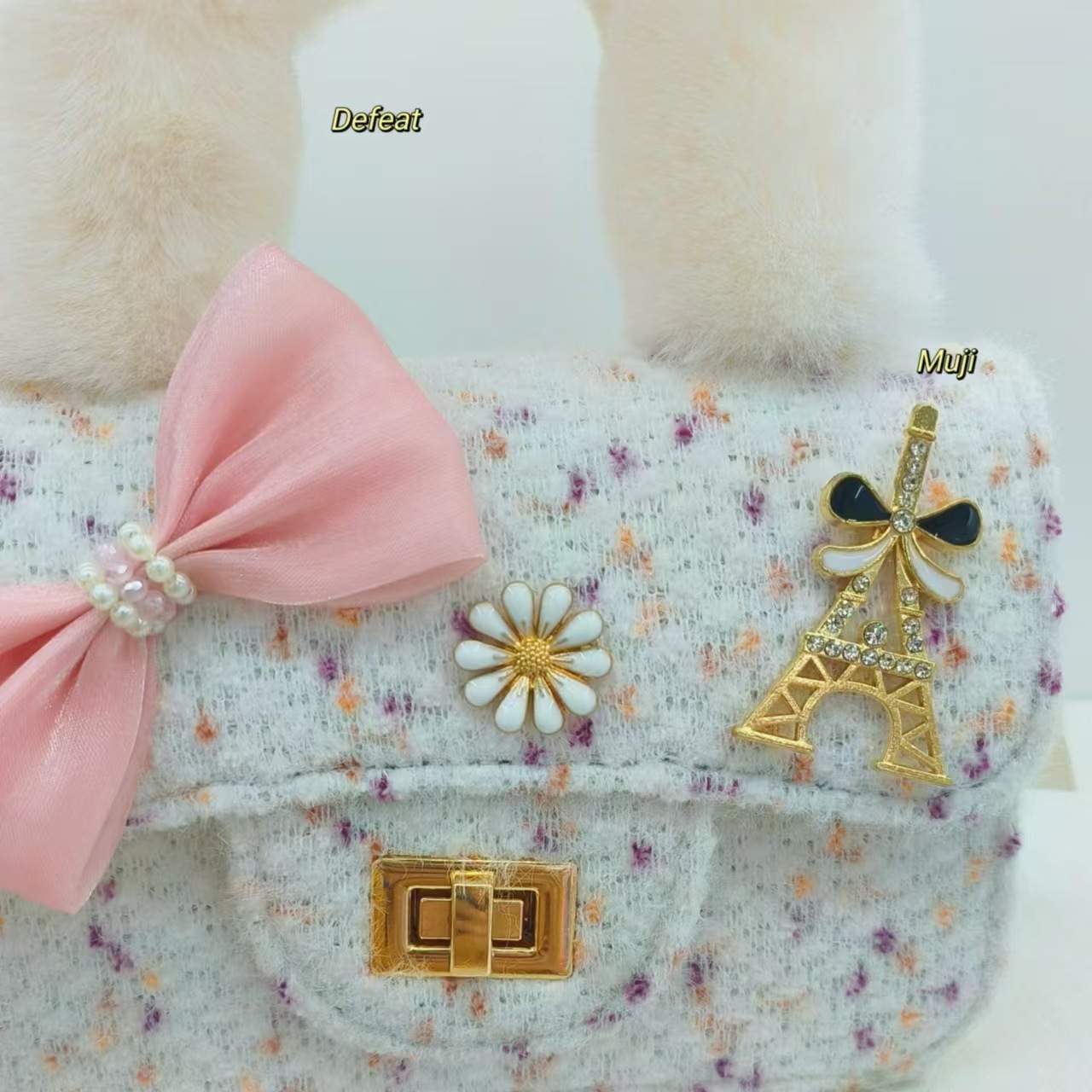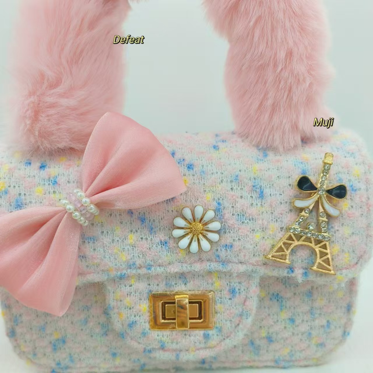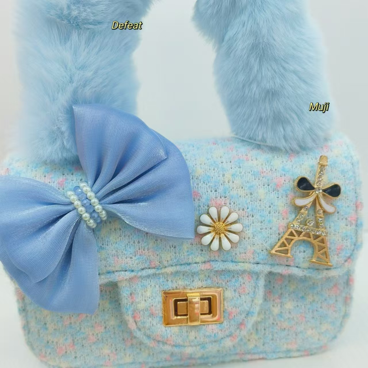 毛绒手提包蝴蝶结时尚单肩包小女孩洋气斜挎包小方包零钱包配饰包