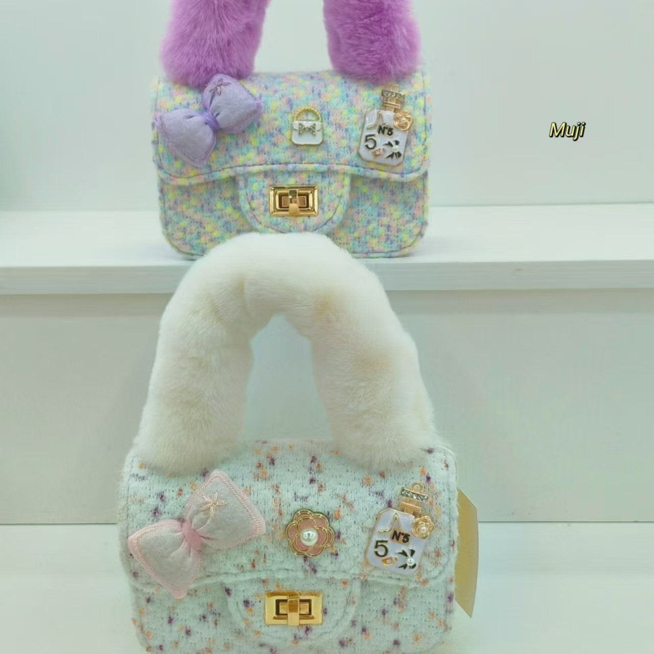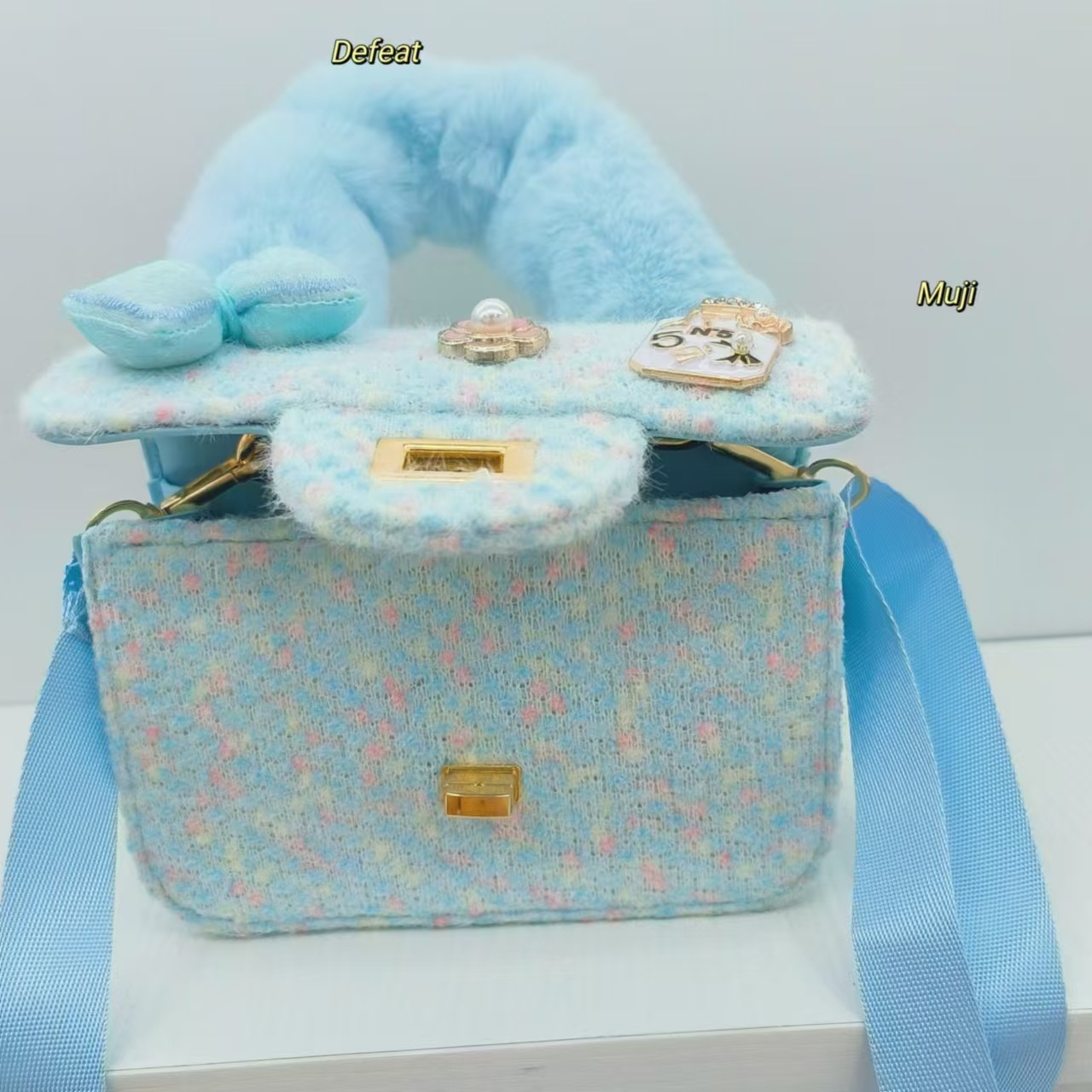 毛绒手提包小女孩单肩包洋气斜挎包时尚小方包儿童包蝴蝶结零钱包