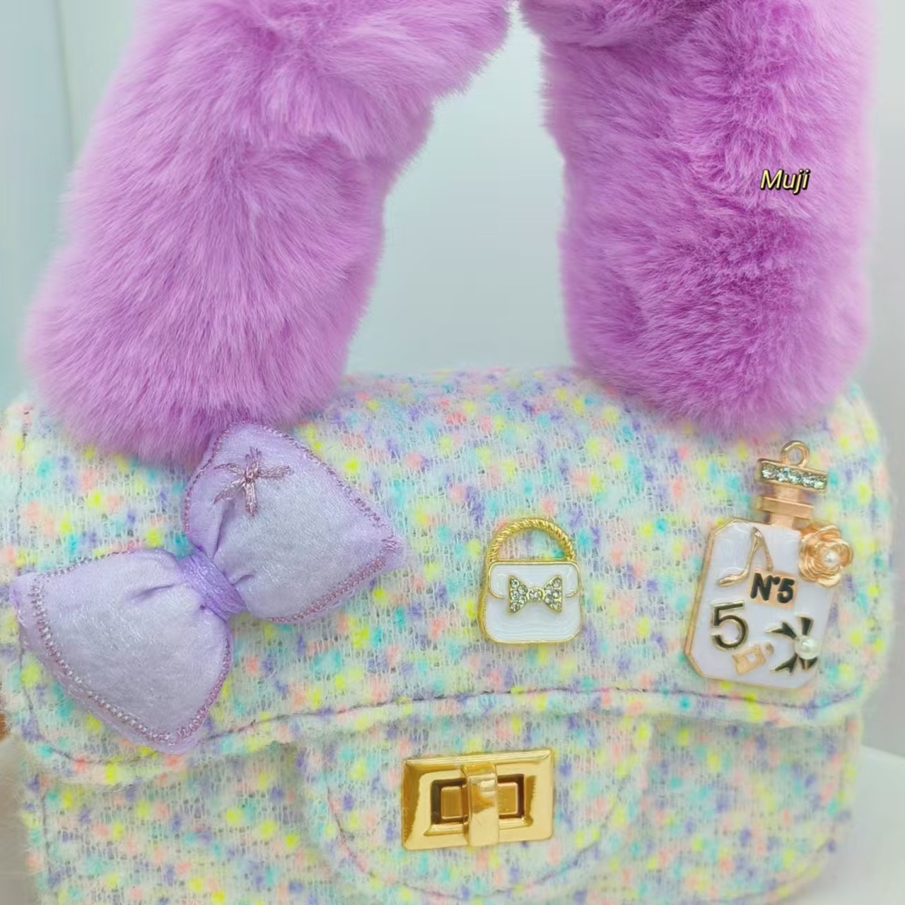 Bolso de peluche de arco, bolso de hombro para niñas, bolso de mochila, bolso de moda, bolso de cambio