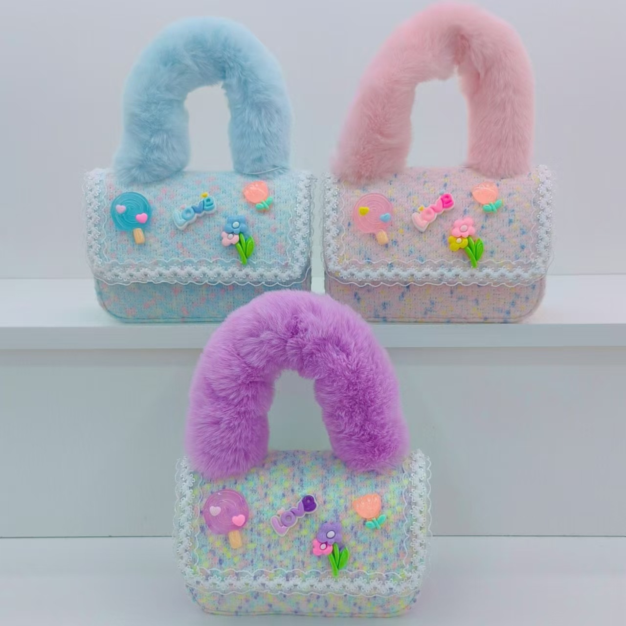 毛绒手提包单肩包斜挎包小女孩零钱包配饰包洋气公主儿童包
