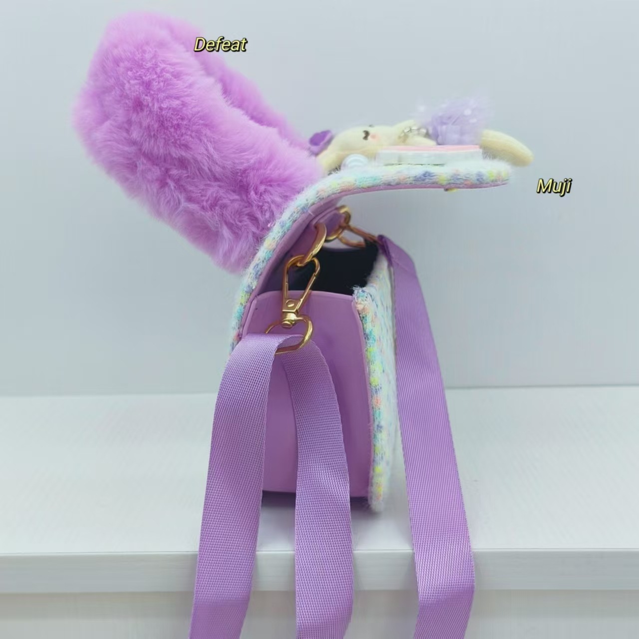 Bonita bolsa de peluche de conejo, bolsa de princesa, bolsa de hombro, bolsa de cinturón, bolsa de cambio, bolsa de accesorios, niña