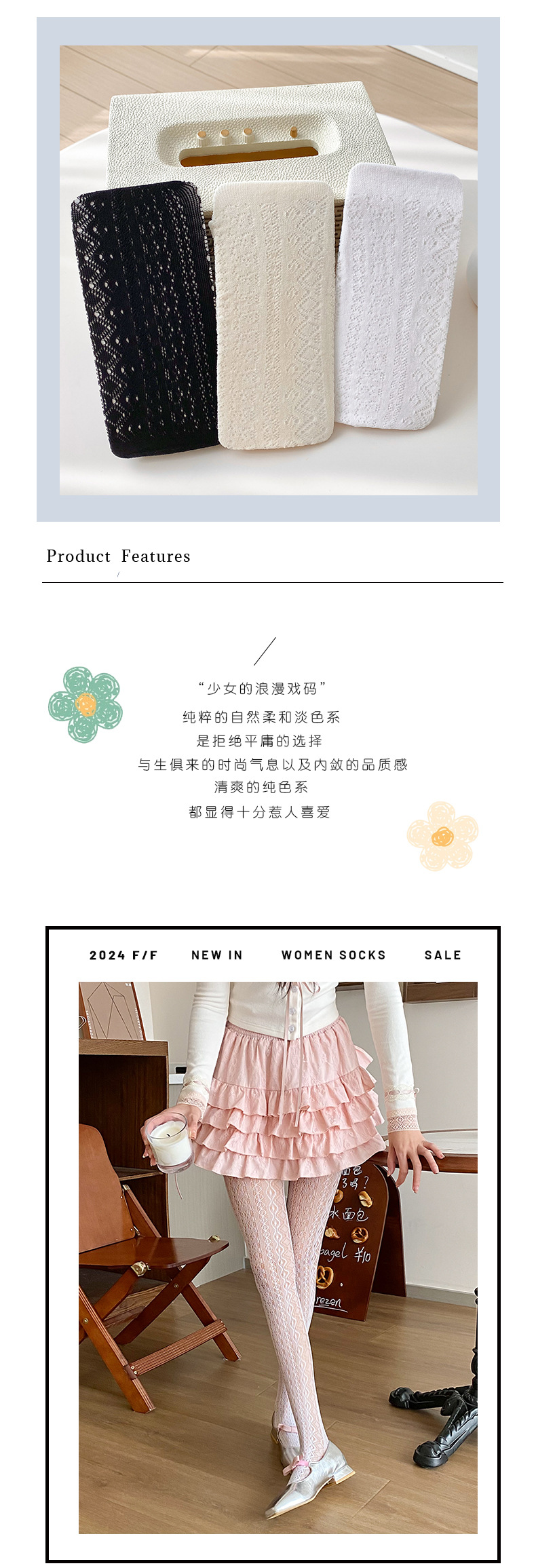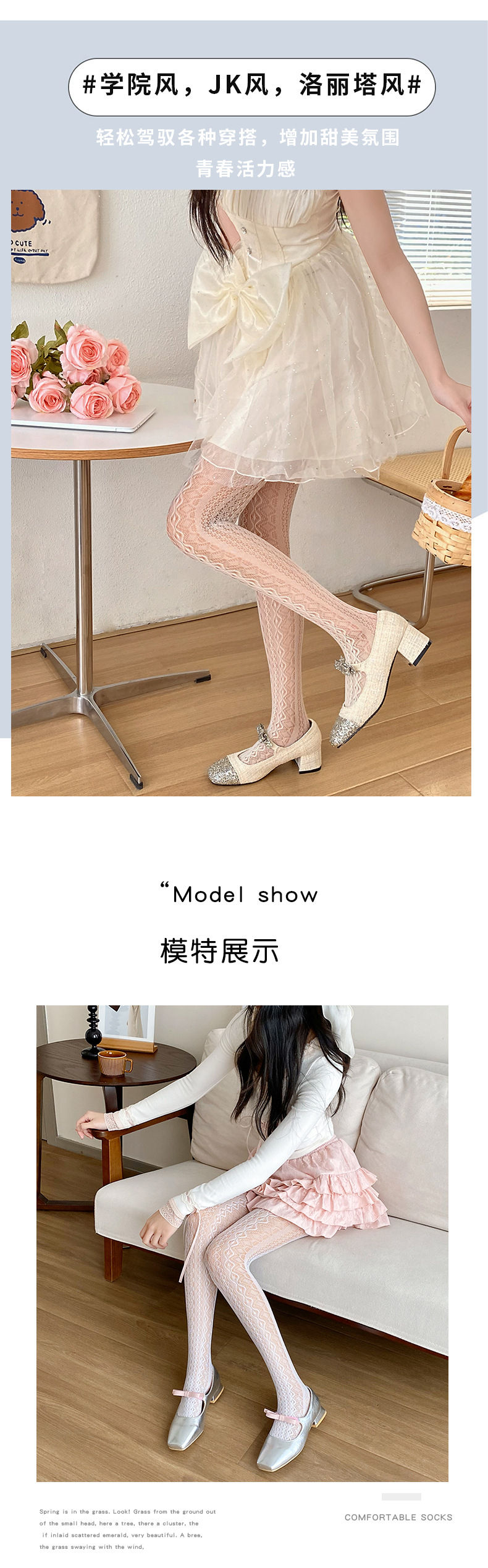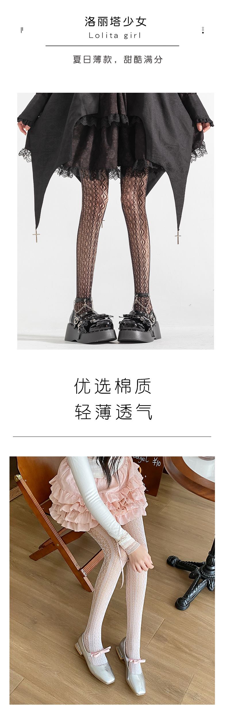 La primavera y el verano fino Lolita encaje leggings JK largo diamante japonés puro blanco seda dulce pantimedias