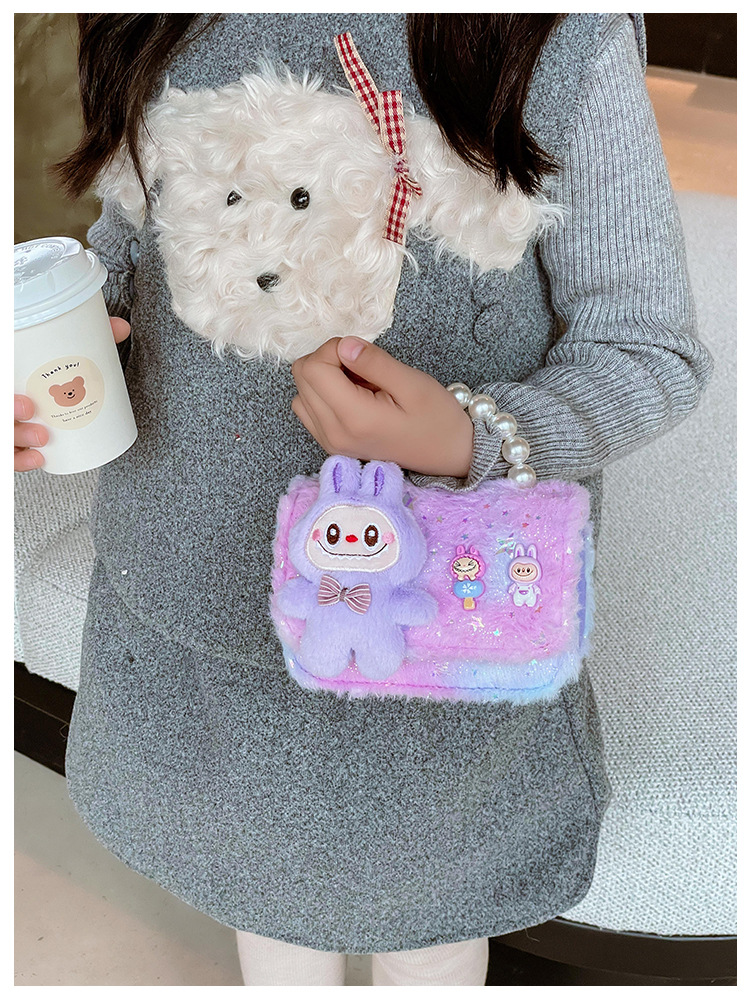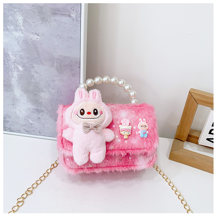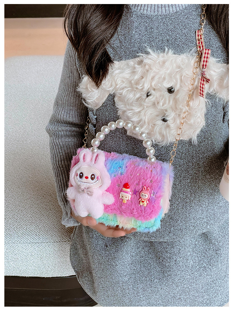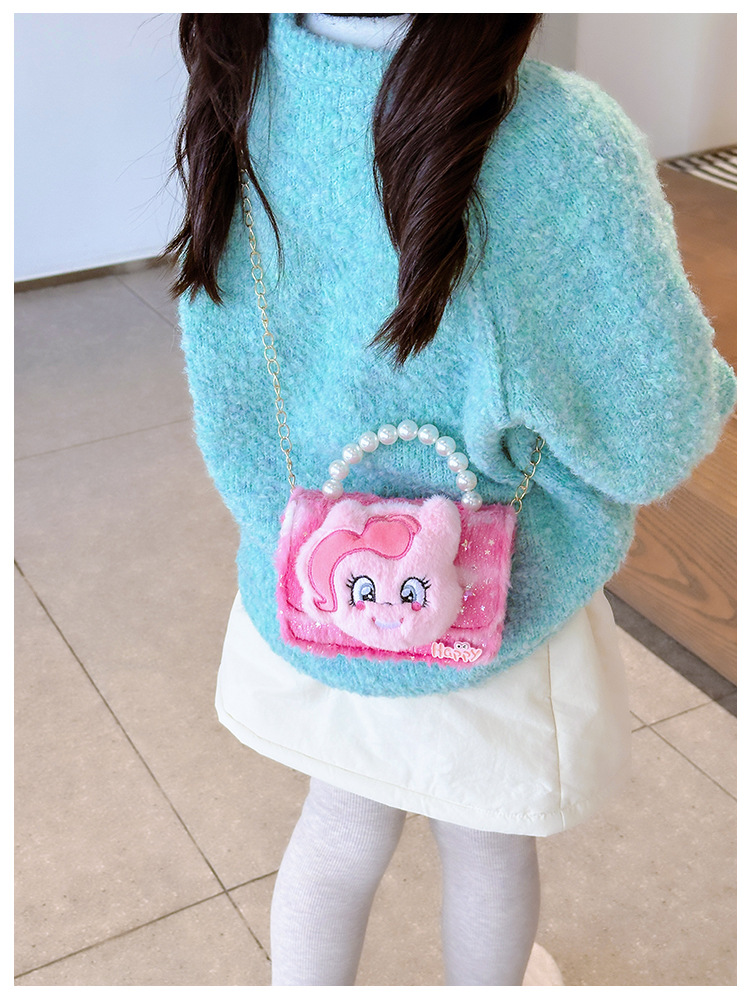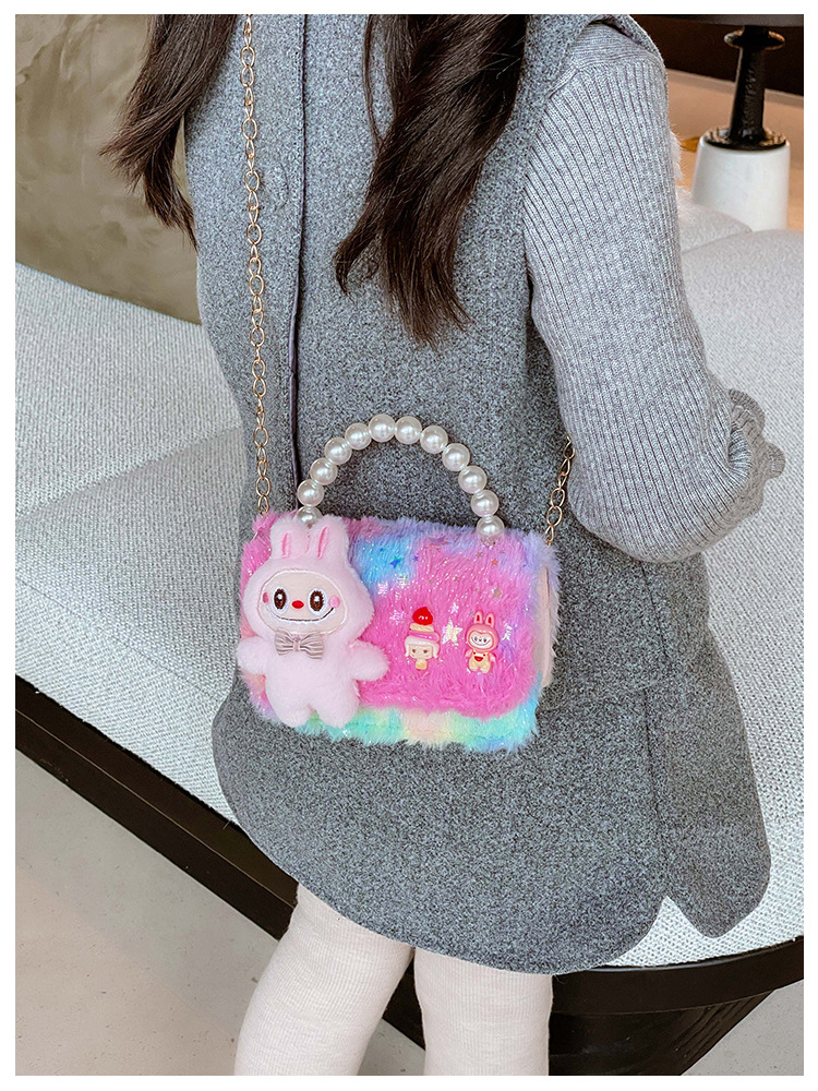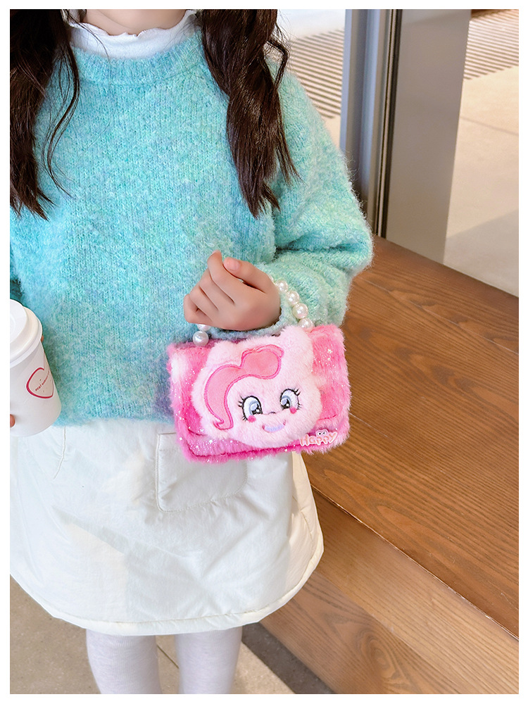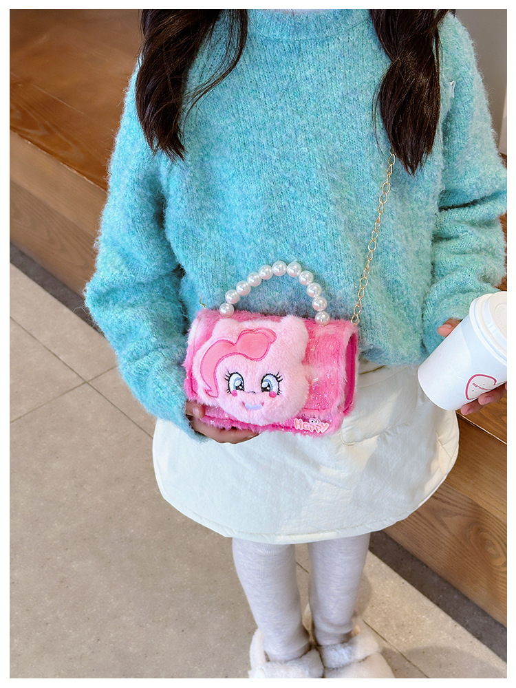 上新儿童包包秋冬韩版女童可爱斜挎包小女孩潮流毛绒包珍珠手提包