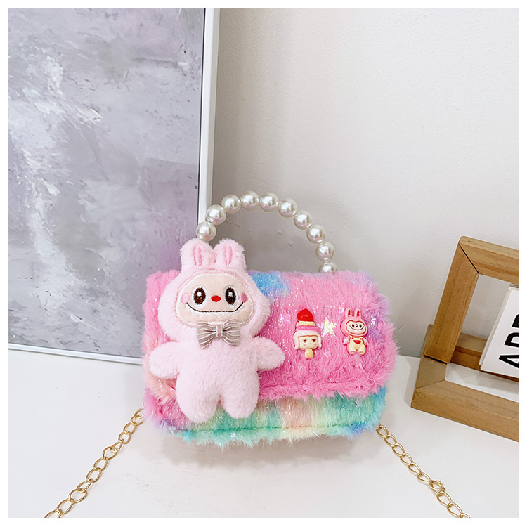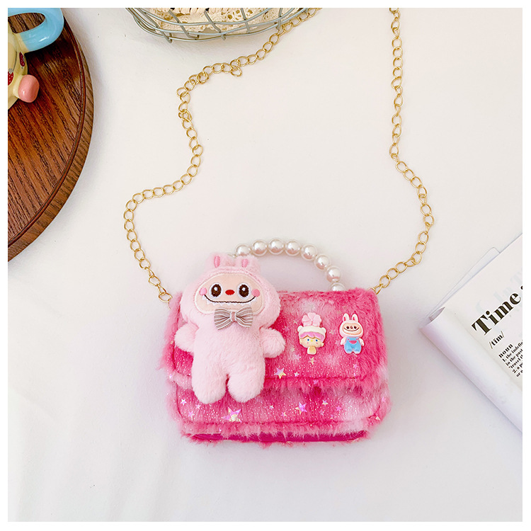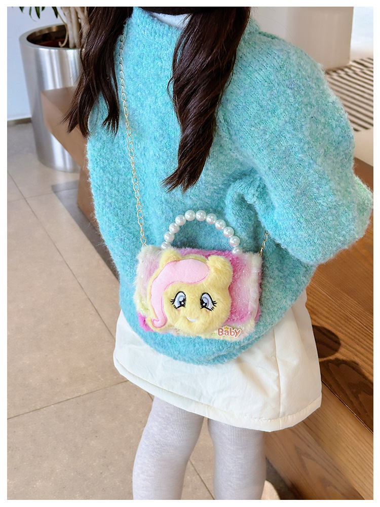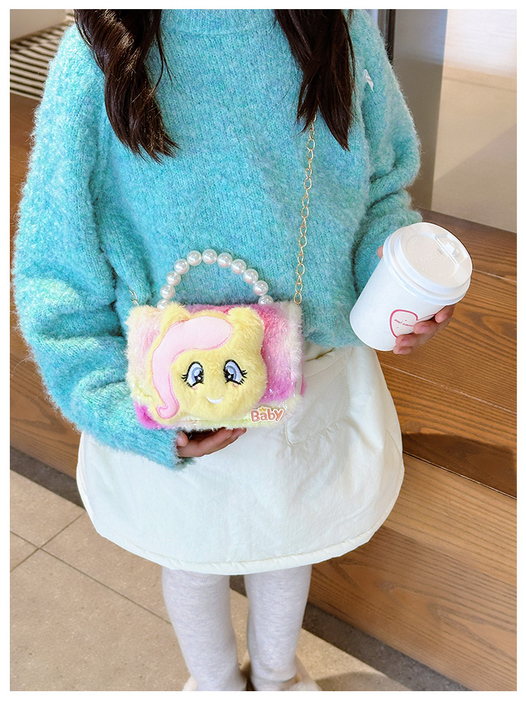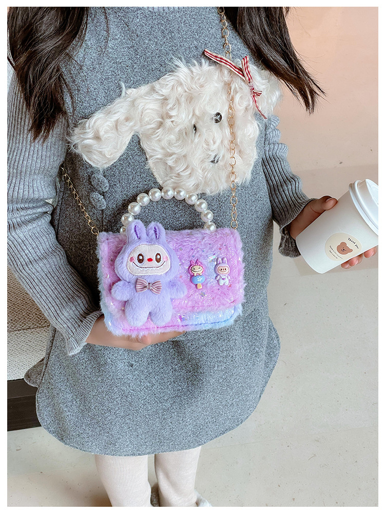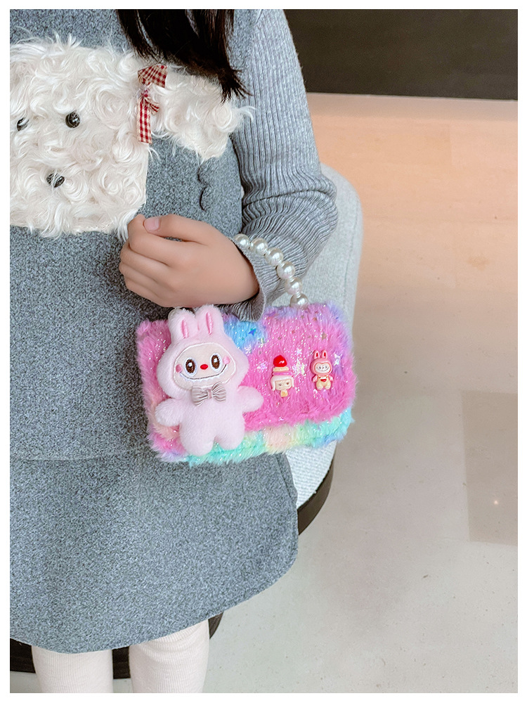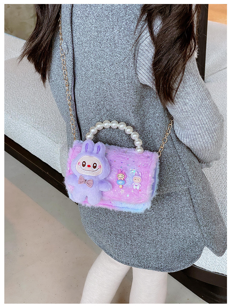 上新儿童包包秋冬韩版女童可爱斜挎包小女孩潮流毛绒包珍珠手提包
