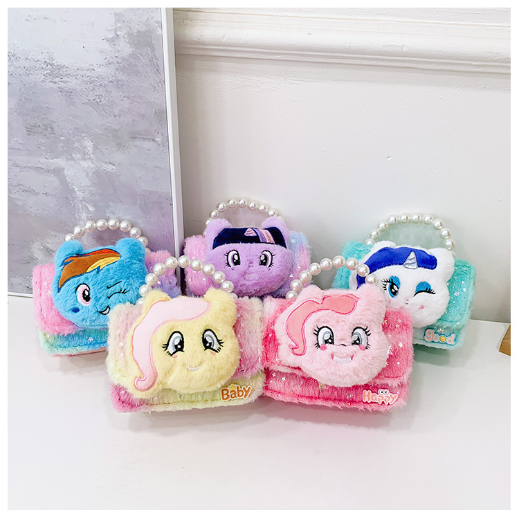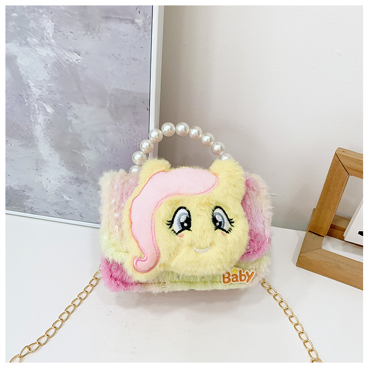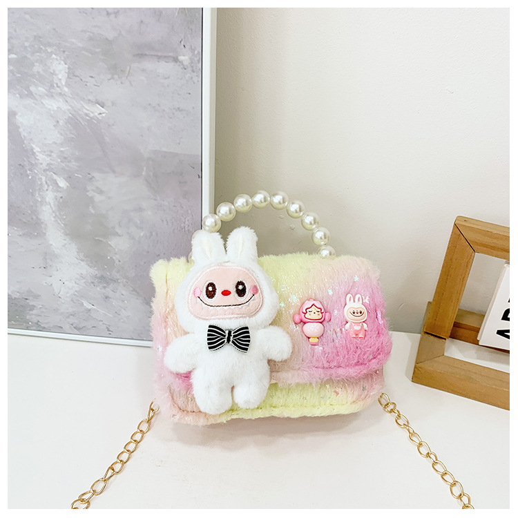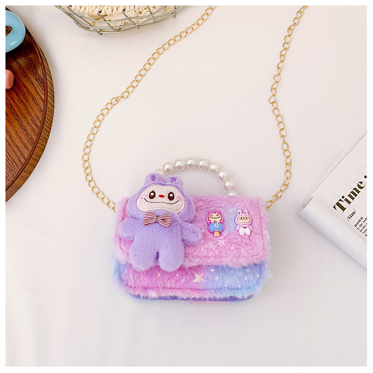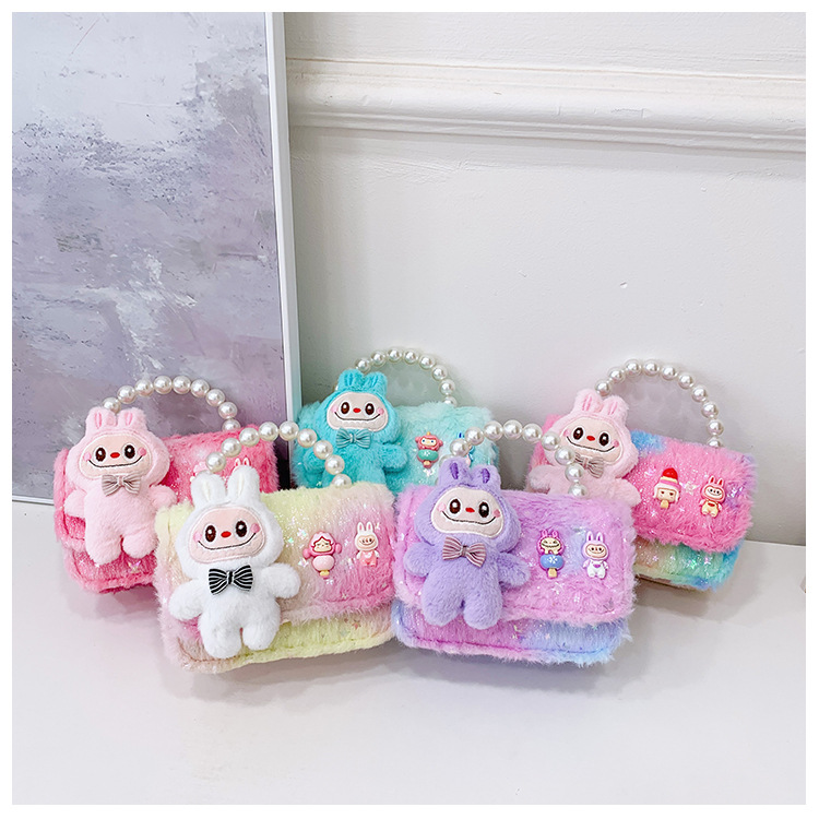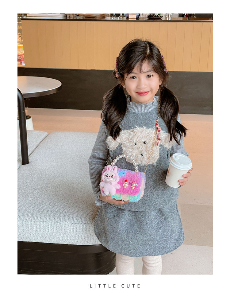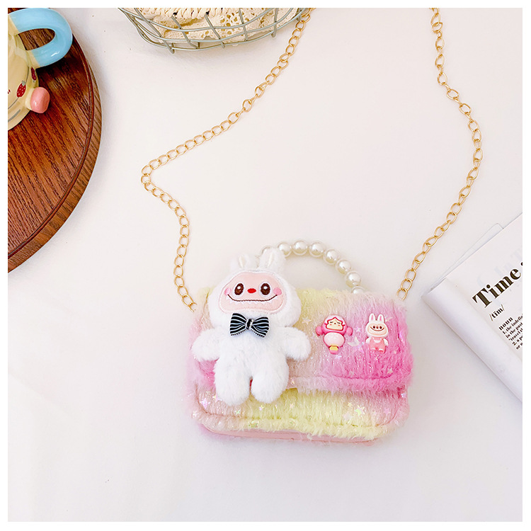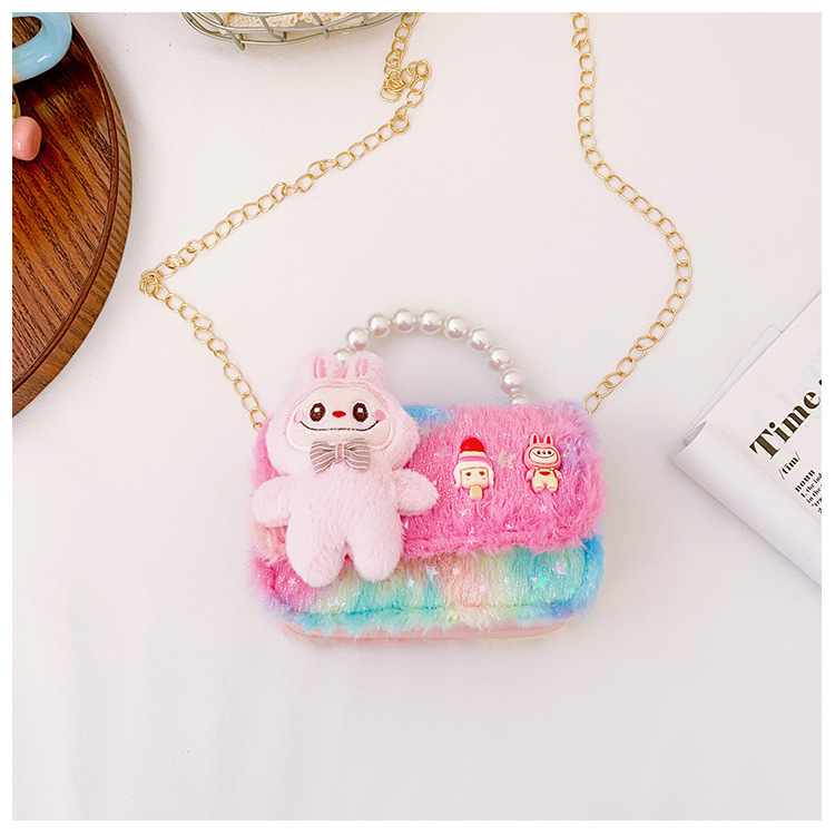 上新儿童包包秋冬韩版女童可爱斜挎包小女孩潮流毛绒包珍珠手提包