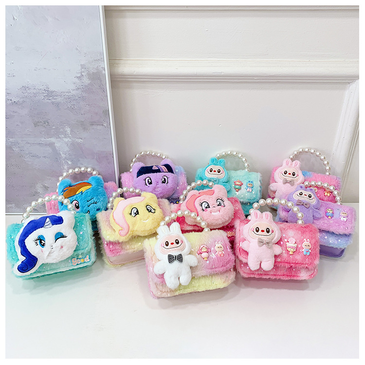 Bolso de peluche, bolso de hombro, bolso de cinturón, bolso de cambio, bolso de accesorios, bolso de princesa, bolso para niños.