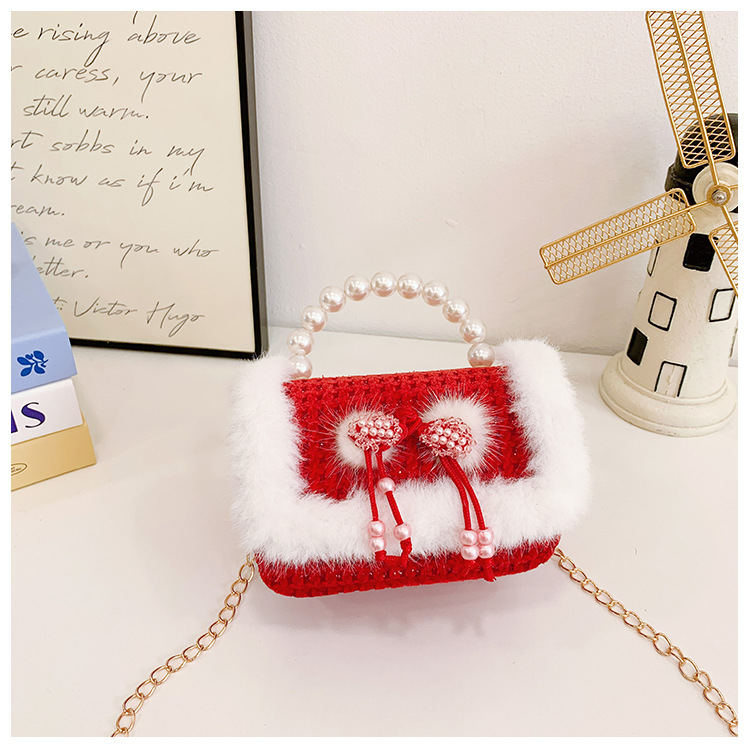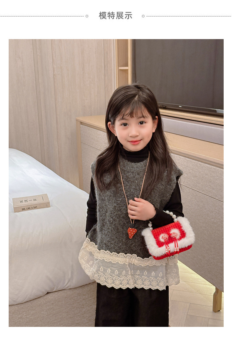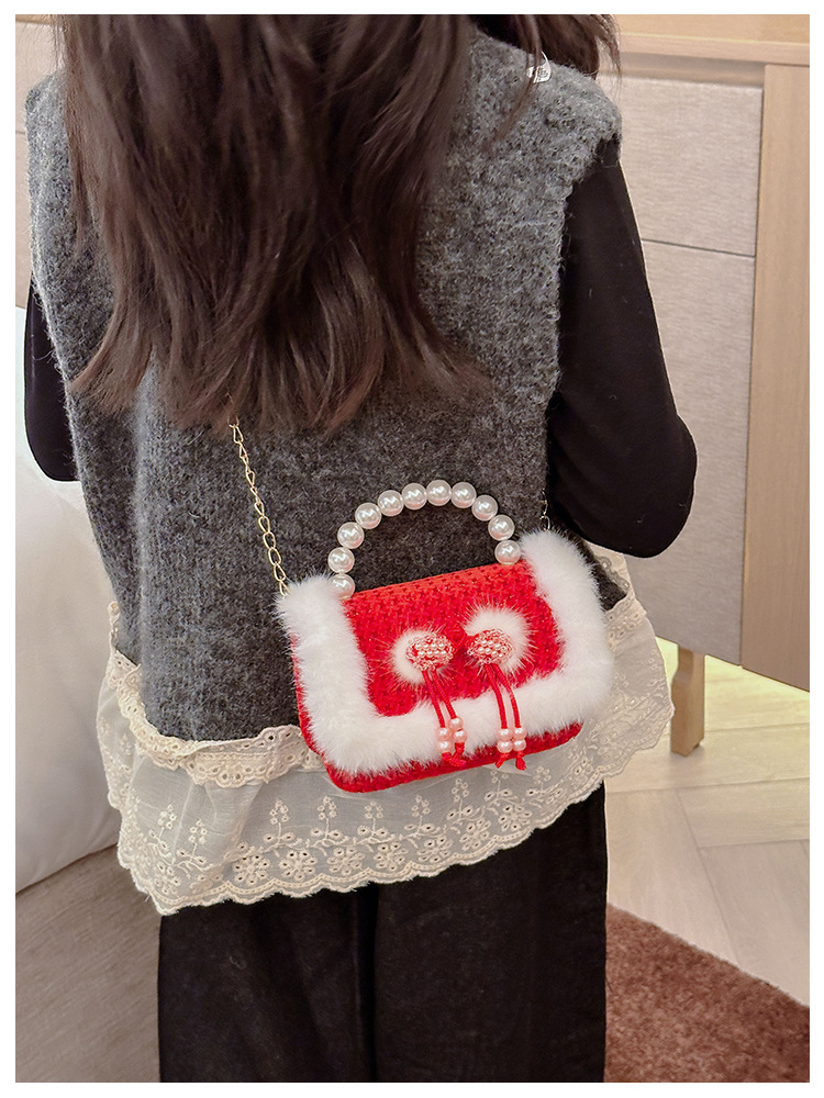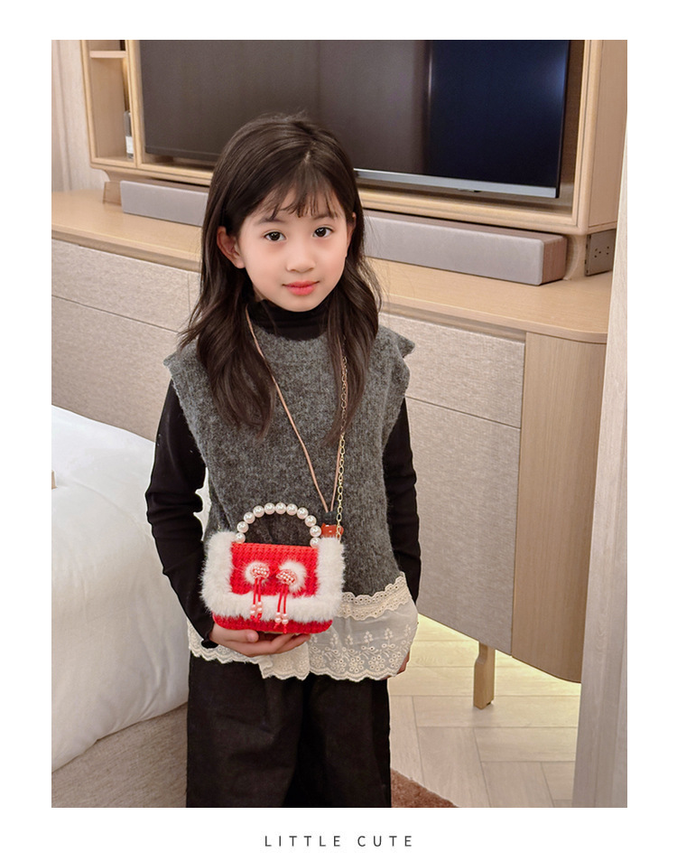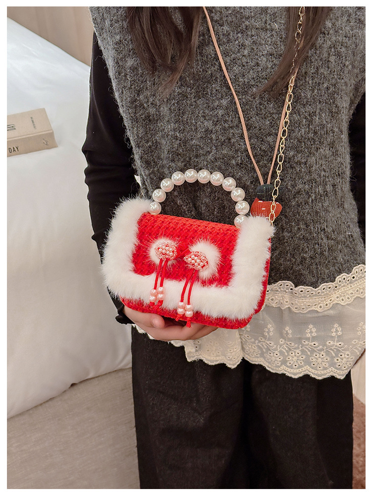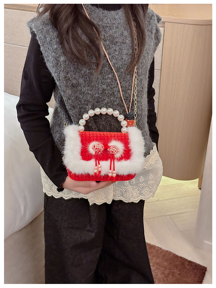 Bolso rojo de año nuevo para niña 2023 bolso para niña bolso de mano de princesa bolso de mensajero para niños bolso de felpa de dibujos animados