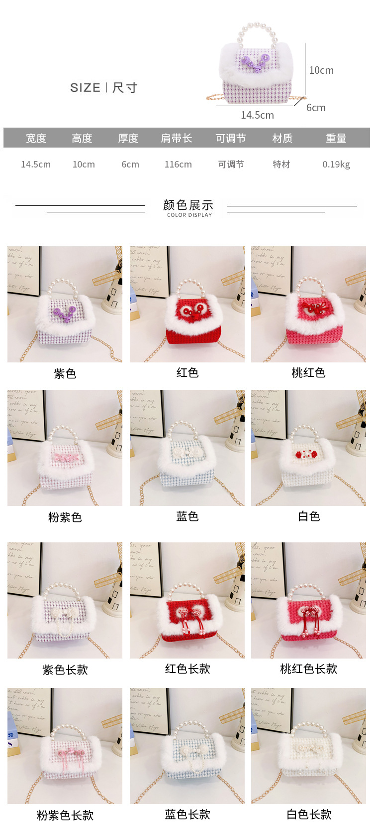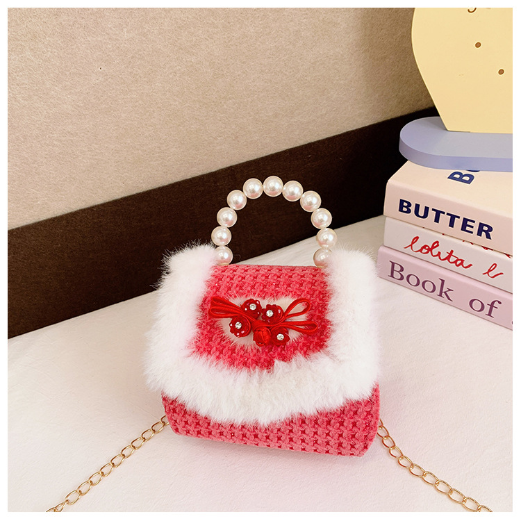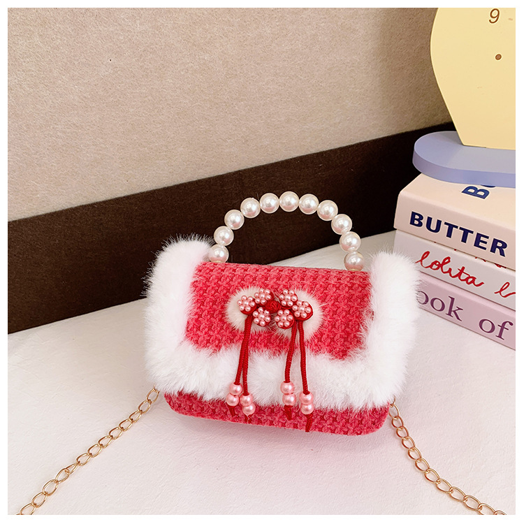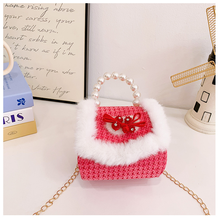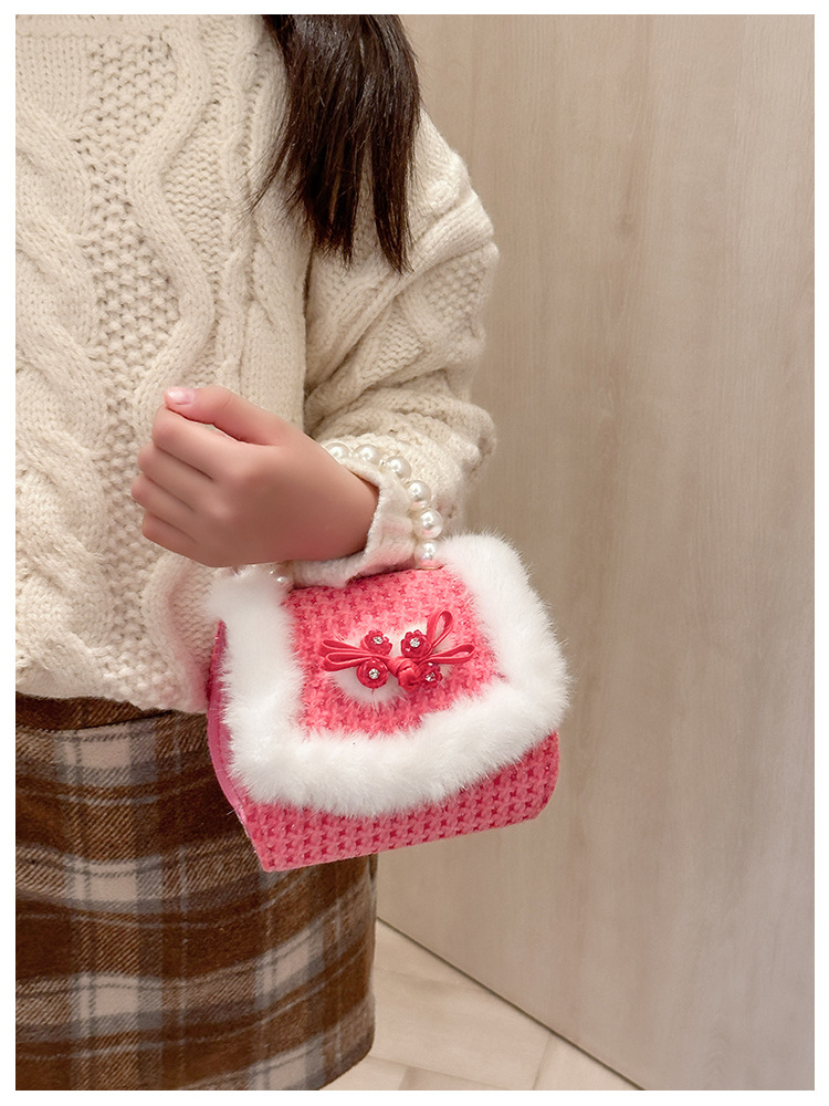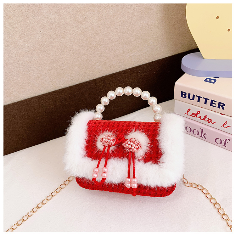 Bolso rojo de año nuevo para niña 2023 bolso para niña bolso de mano de princesa bolso de mensajero para niños bolso de felpa de dibujos animados