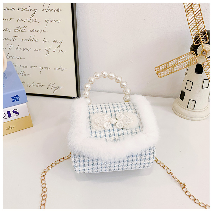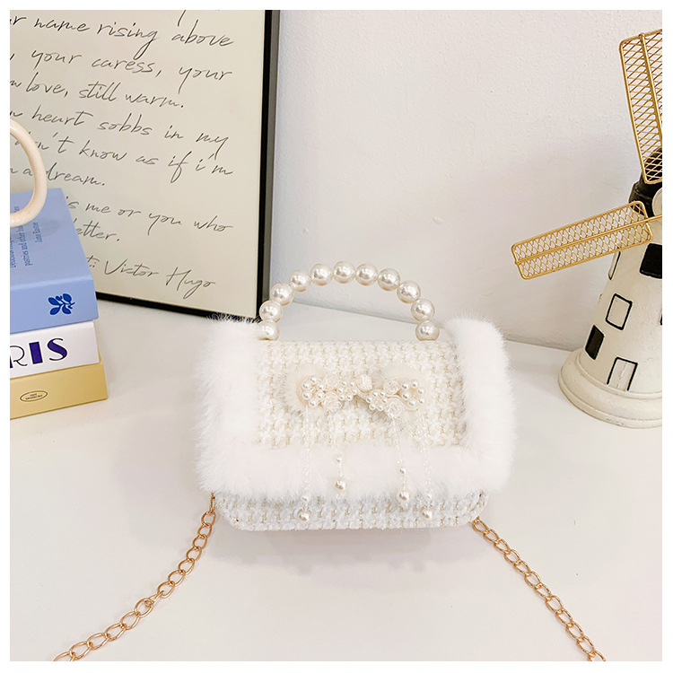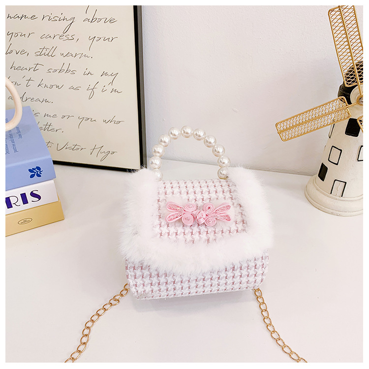 Bolsa de arco princesa bolso de perlas bolso de mano cadena bolso de cinturón pequeño viento bolso de niñas bolso de regalo del día de los niños bolso pequeño