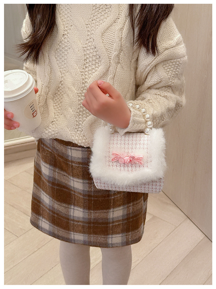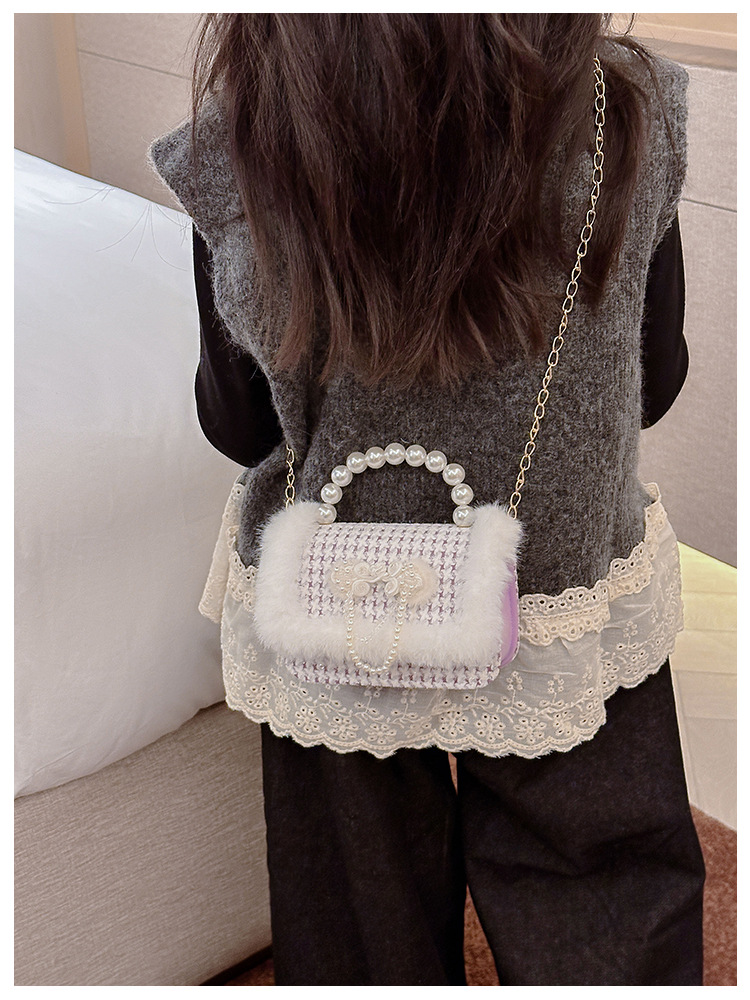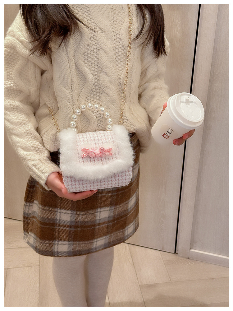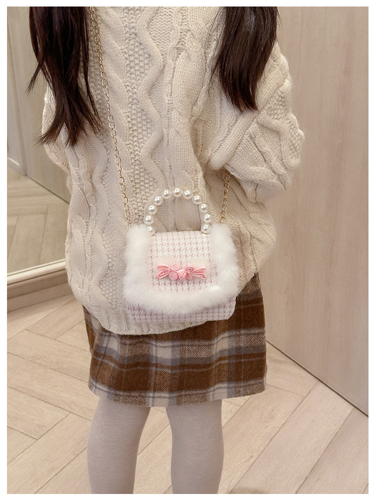 Bolso de peluche, bolso de arco, bolso de princesa, bolso de hombro, bolso de Año Nuevo para chicas, bolso pequeño