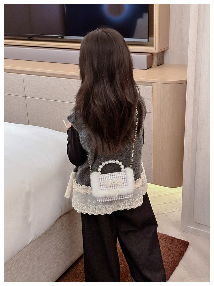Bolsos para niñas, modernos bolsos cruzados estilo Chanel para niñas pequeñas, elegantes bolsos con lazo de perlas para niñas pequeñas, impermeables.