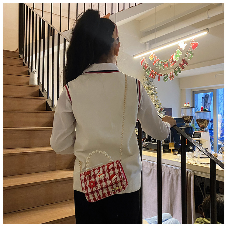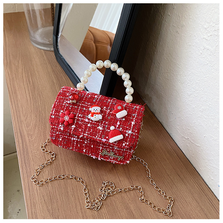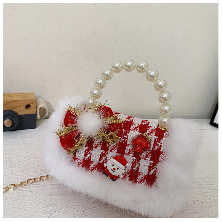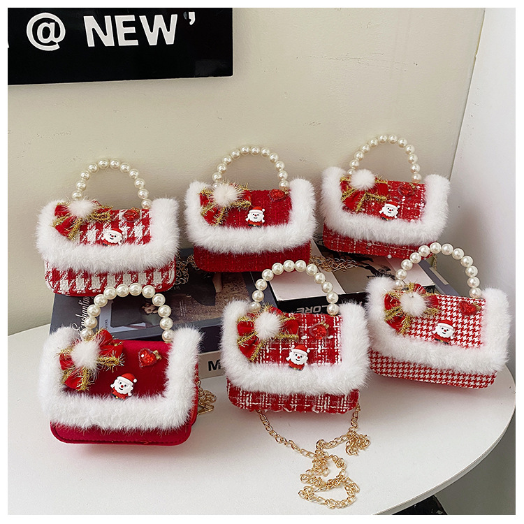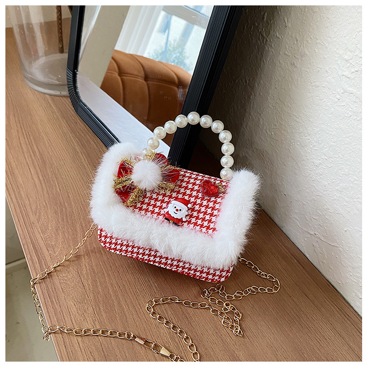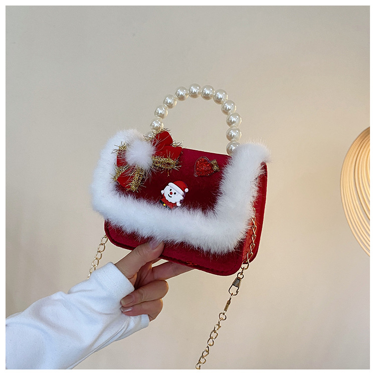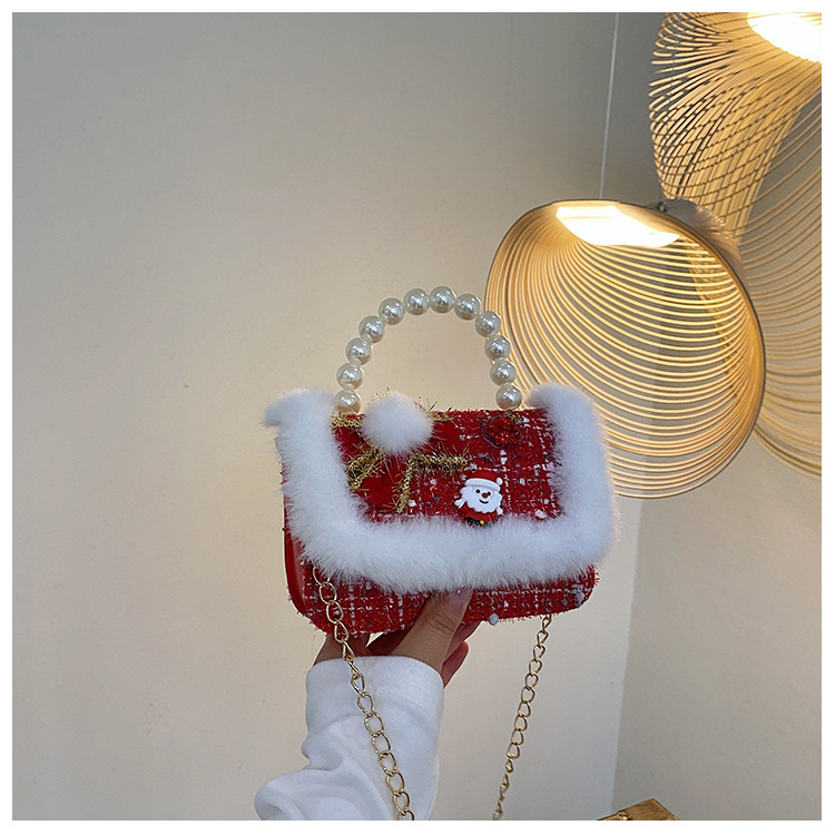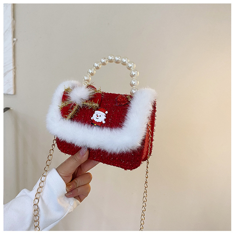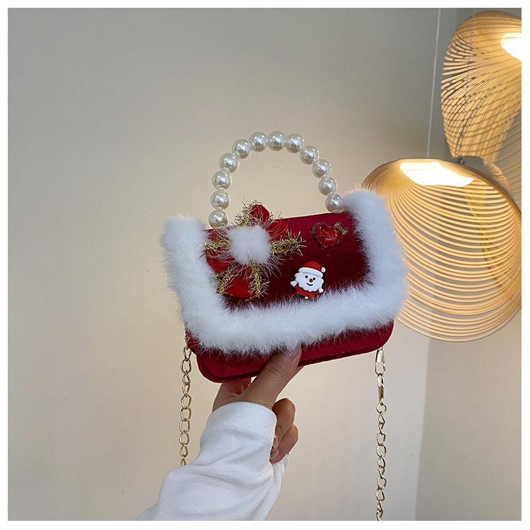Cartera de Año Nuevo rojo arco de papá Noel bolso de perla pequeña cadena de viento fragante bolso de hombro