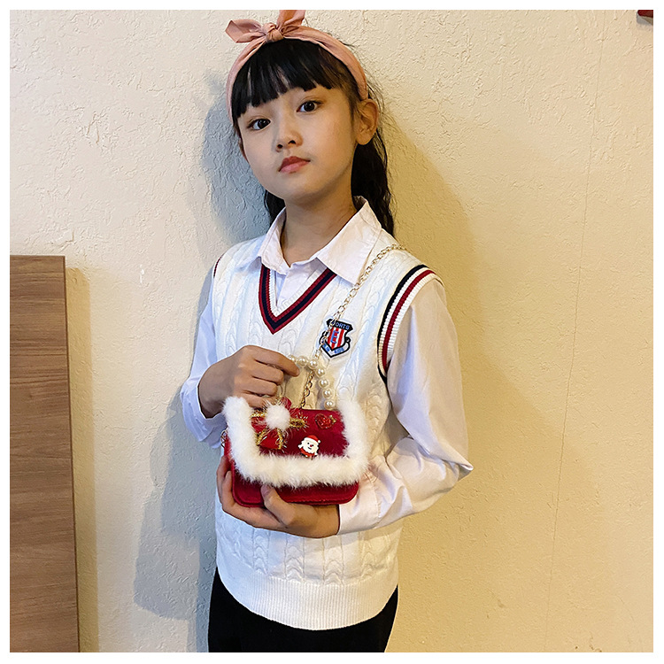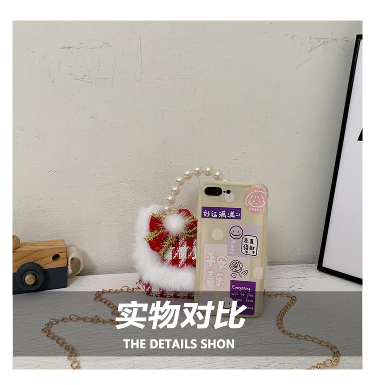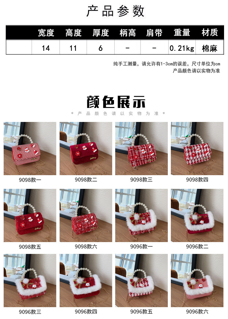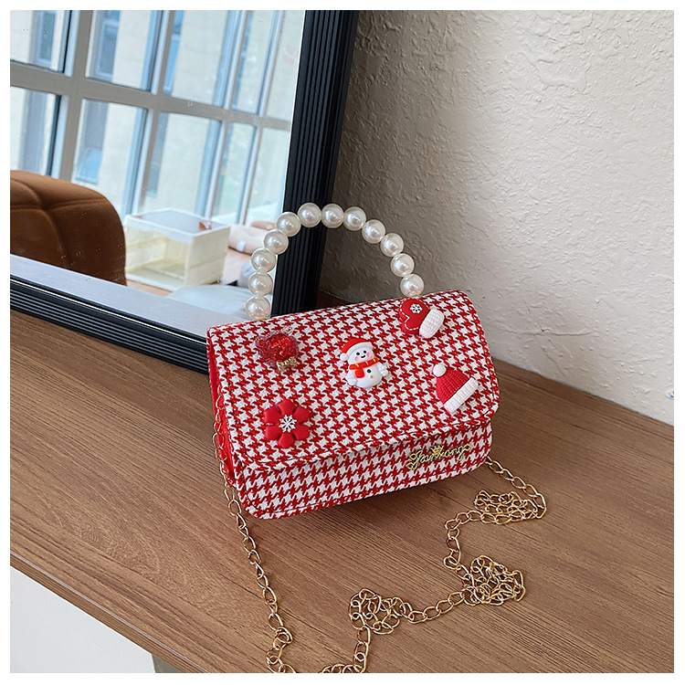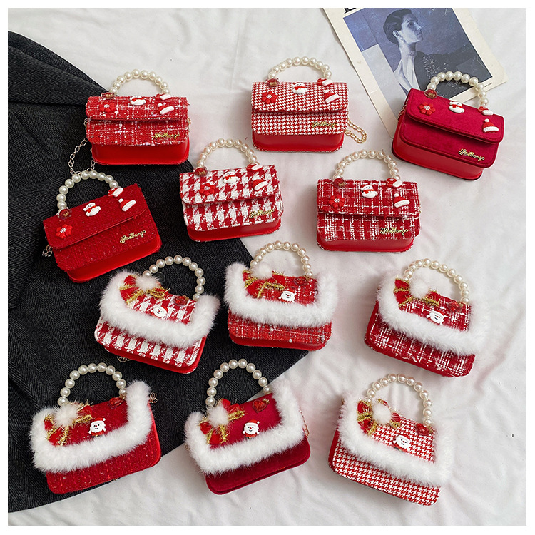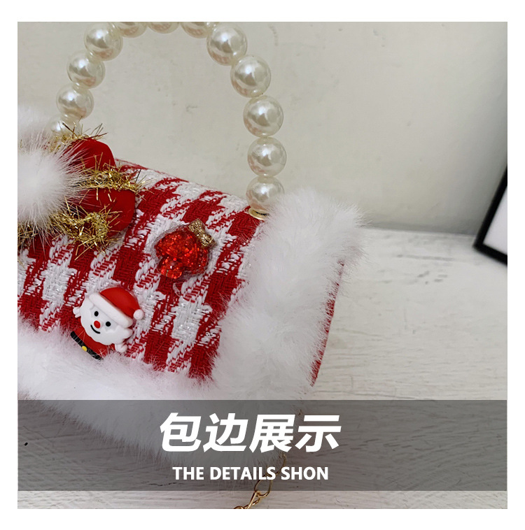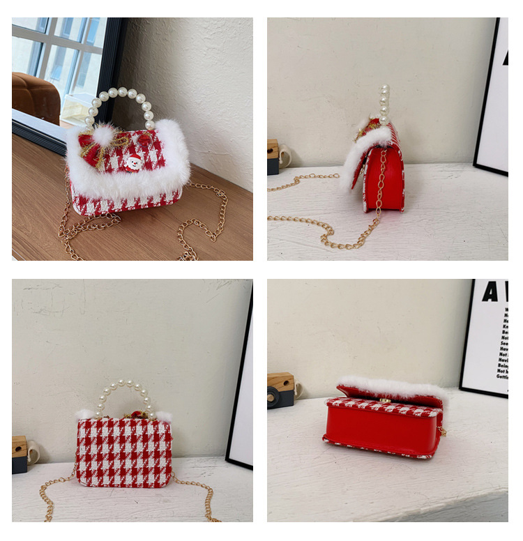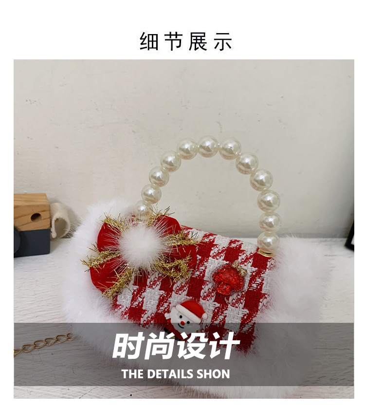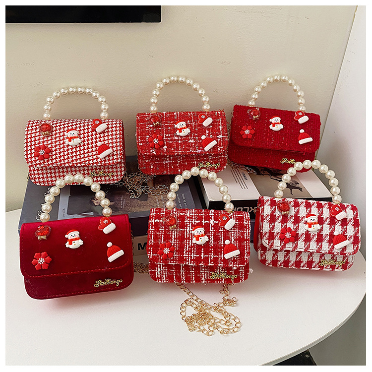 Cartera de Año Nuevo rojo arco de papá Noel bolso de perla pequeña cadena de viento fragante bolso de hombro