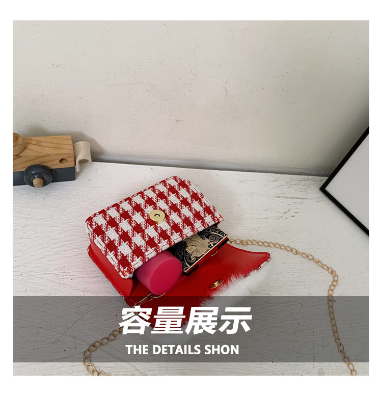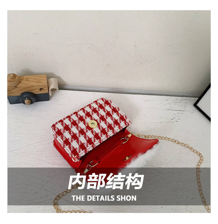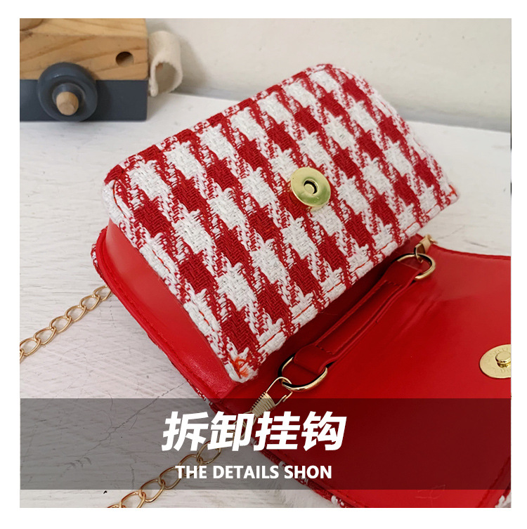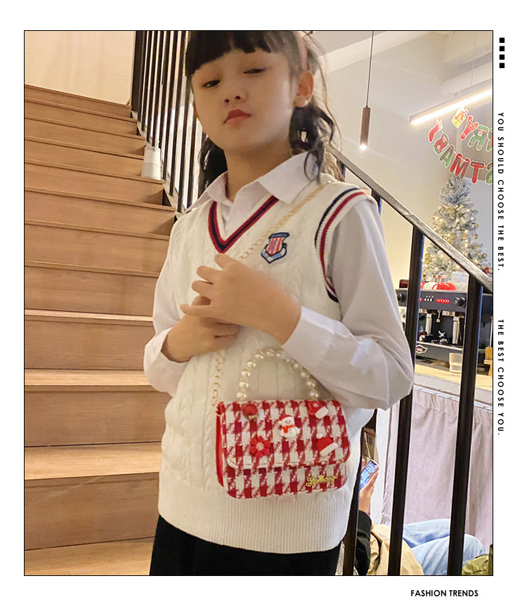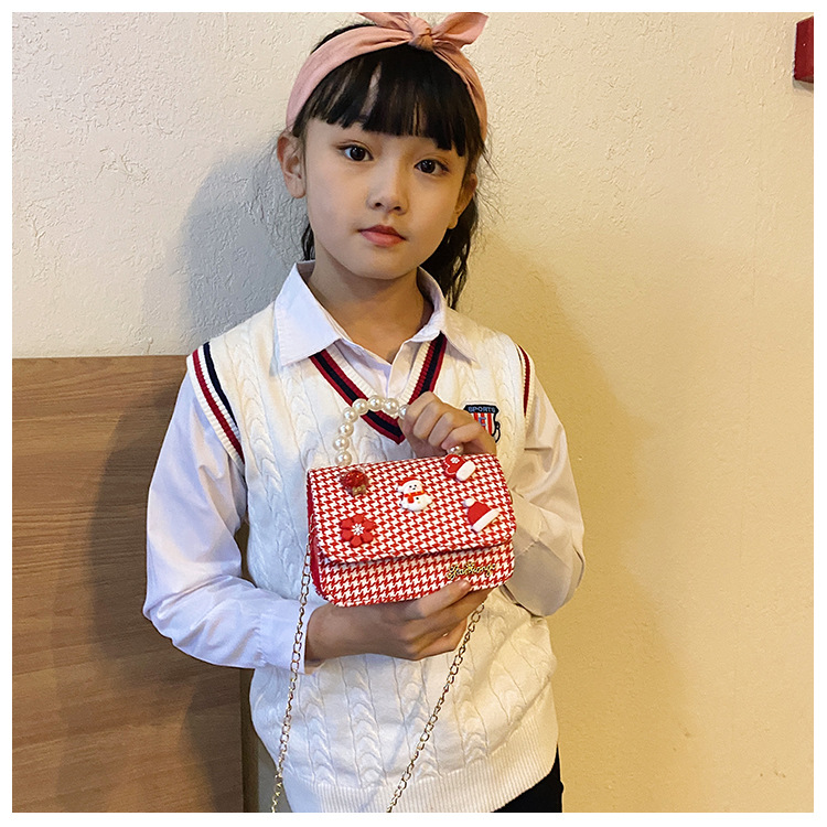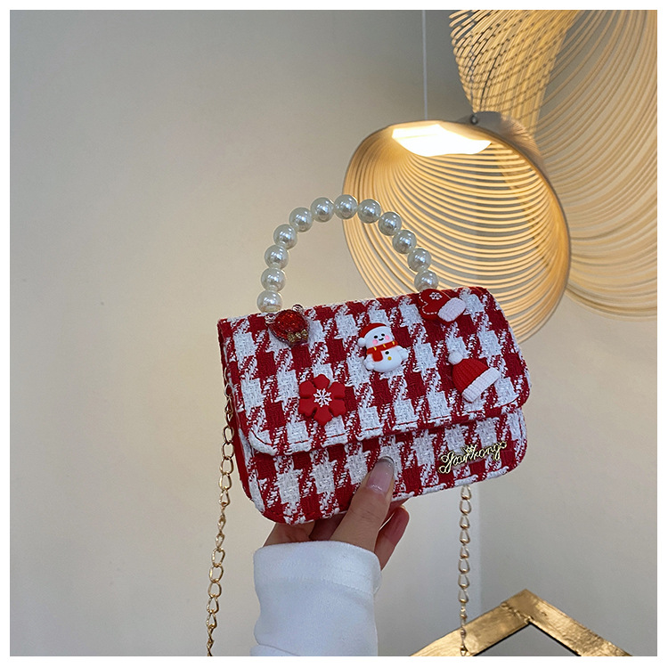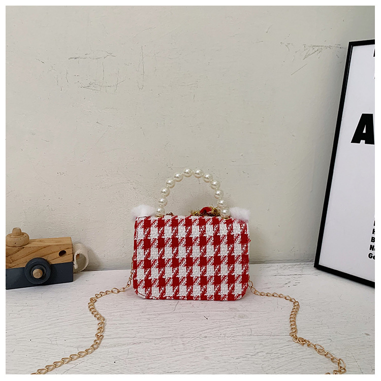 迷你时尚女童珍珠零钱包2024新格纹时尚韩版小女孩手提包童装搭配